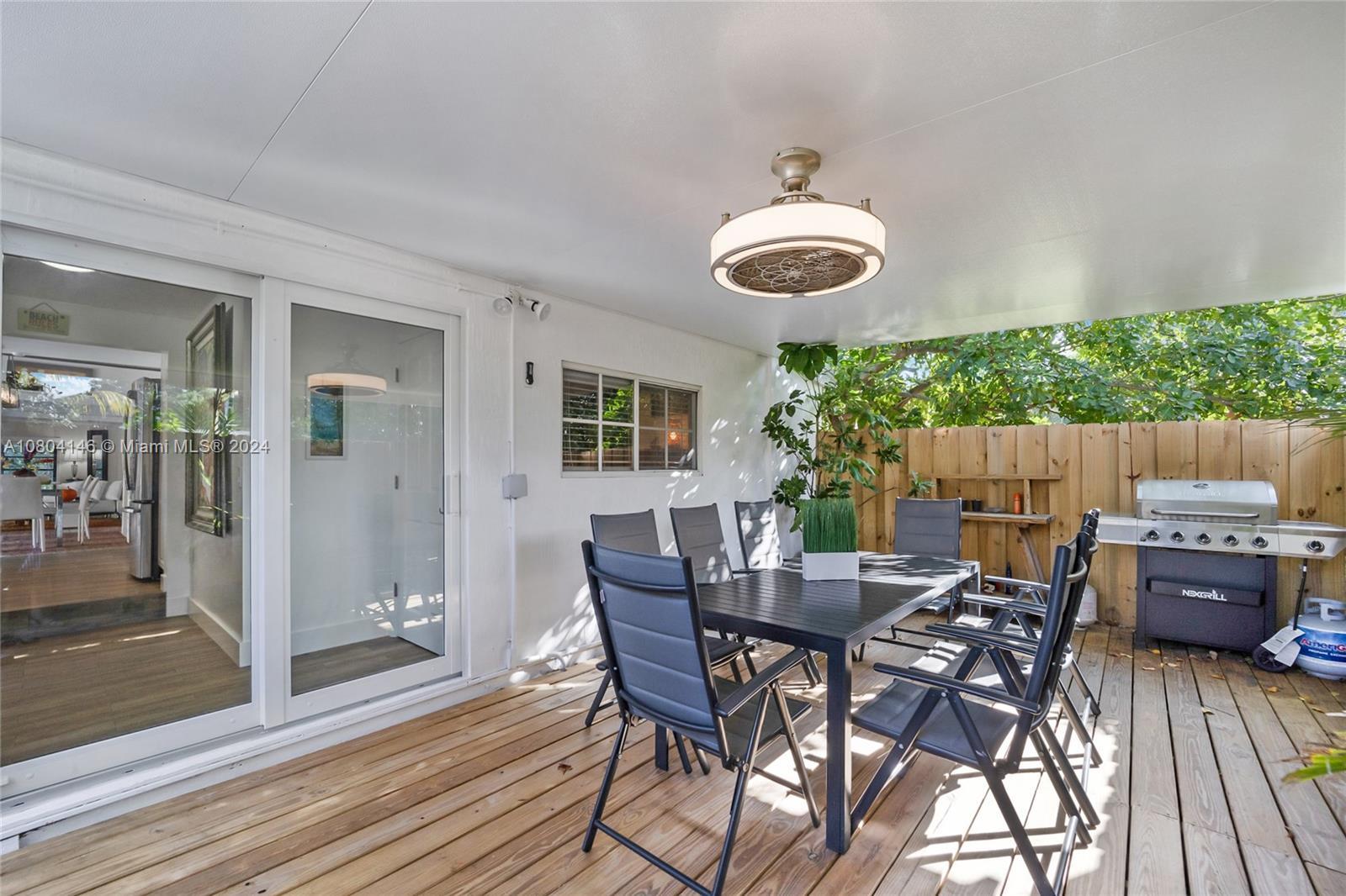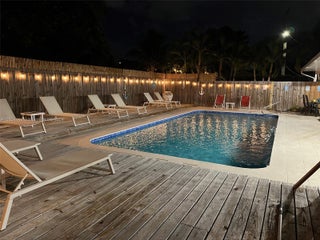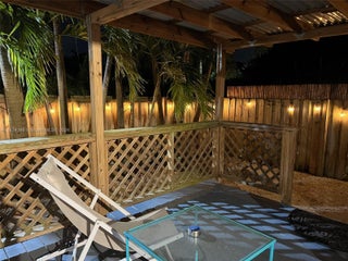 Available long or short term fully furnished: ask for available dates! Great home located inside a fabulous half acre compound completely fenced-in & private property surrounded by mature trees & lush landscaping in Hallandale Beach, fully furnished & equipped close to the beach; within walking distance to the Village at Gulfstream Park, a few minutes’ drive to Aventura Mall, Ft Lauderdale Hollywood Beach including Golden Beach & Sunny Isles Beach. Master bedroom has a direct access to a gorgeous bathroom also shared with others. A guest bedroom has its own private bathroom. All rooms in the entire house open to private covered decks. The heated pool area is just fabulous & secluded. The open floor plan lets you admire the entire property, very private & secure in this quiet neighborhood.