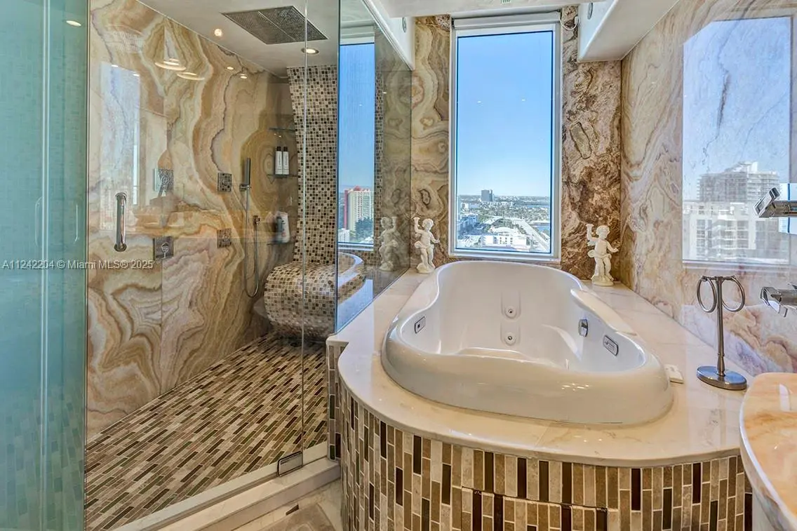 Luxurious condo with amazing unlimited views of the ocean and Intracoastal in one of the best complexes in Sunny Isles. Maximum occupancy 4 people. The unit has everything for your comfort - all Italian custom cabinetry, Venetian plaster and finest Italian appliances, espresso maker, wine cooler, washer/dryer inside the unit are MIELE. Swarovski chandelier & LED lighting, Onyx counters in bathrooms, all kitchen counters & all flooring. Linear AC, custom faucets & accessories. Parking available. The building features 5-star resort amenities. Valet parking. Oceanfront location. The minimum rental period is 15 days. $3000 damage deposit,$300 cleaning fee and good up to 4 people License#:STR-00057 The current price for summer time only