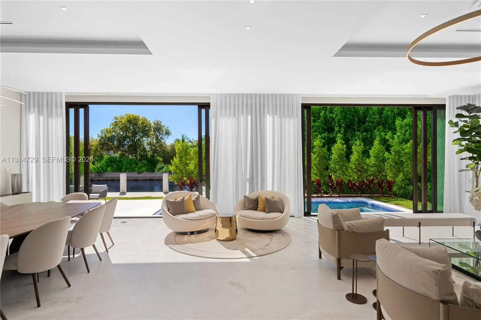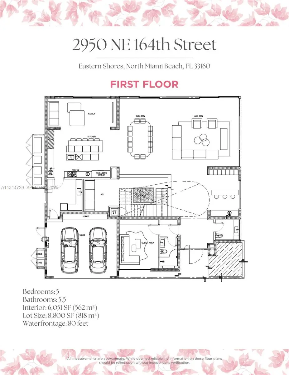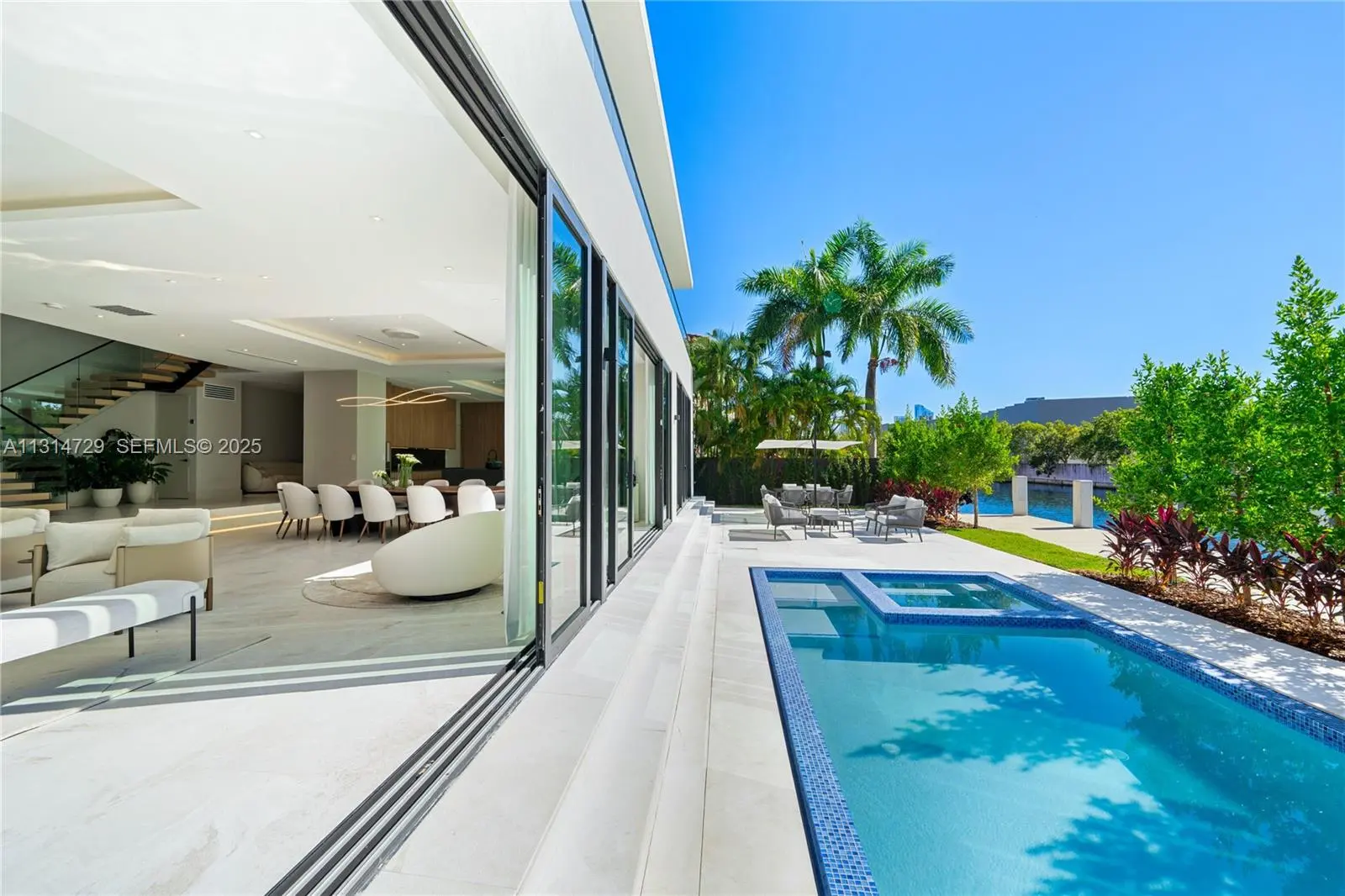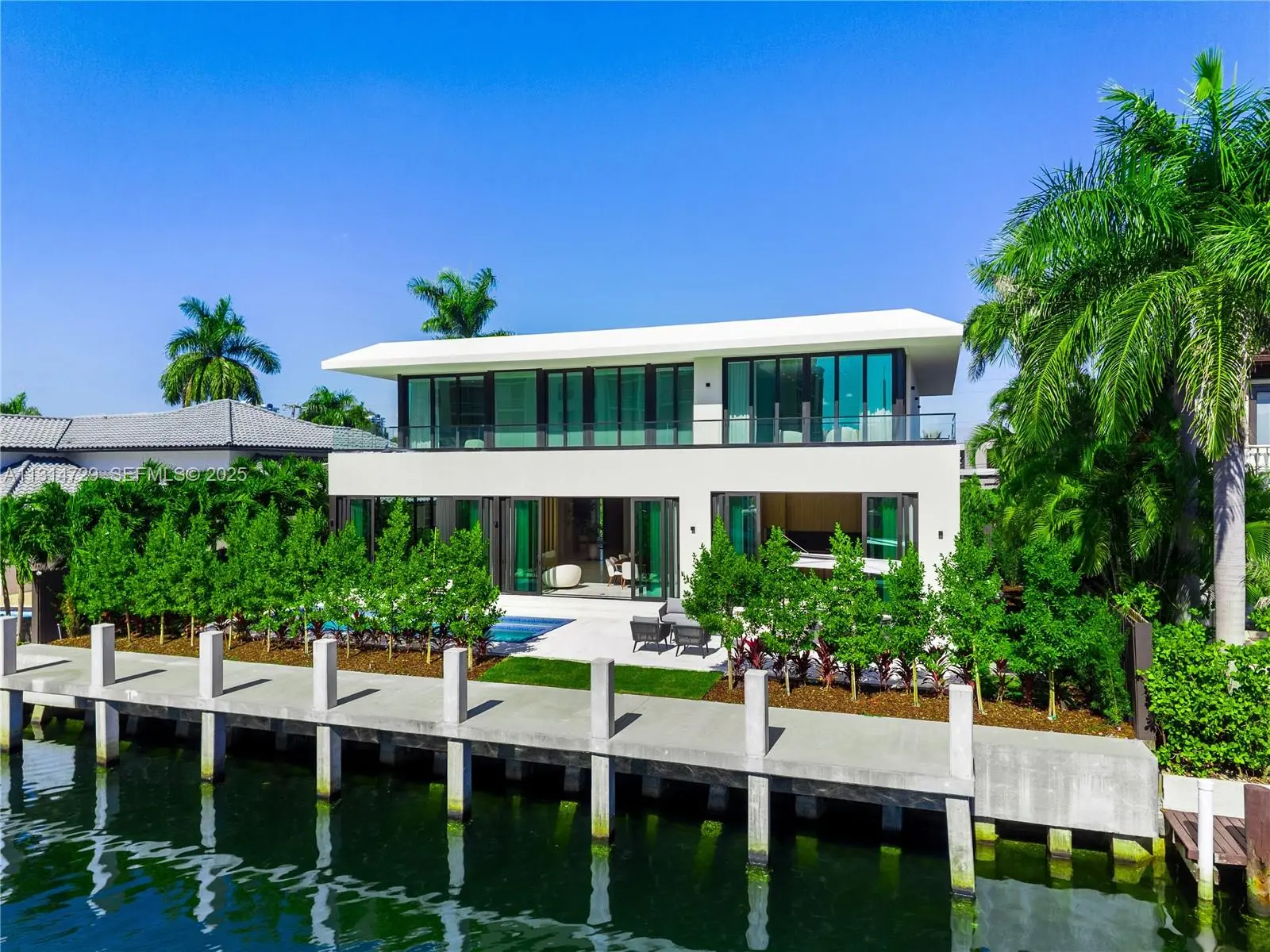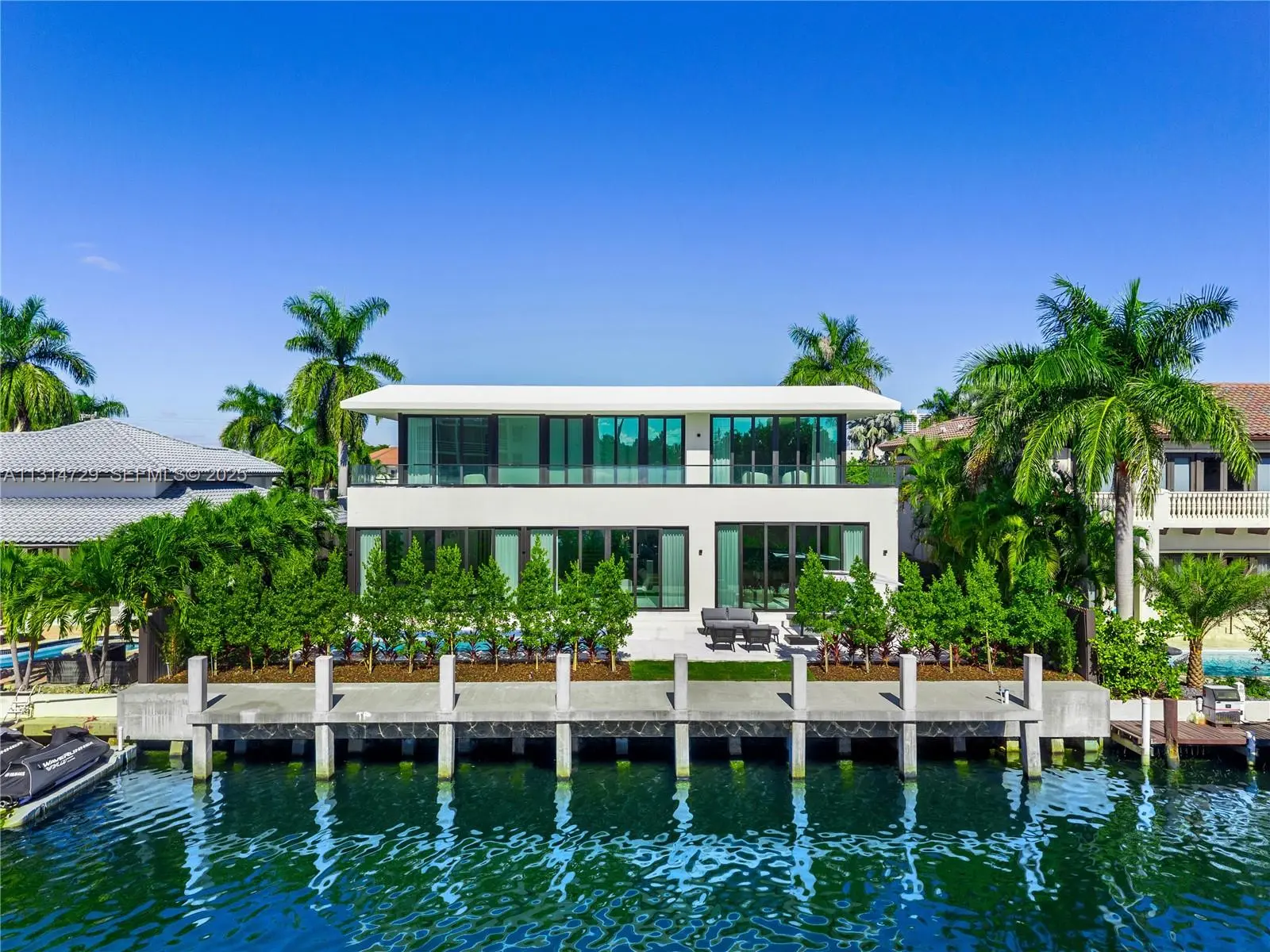 NEW BUILD ORGANIC MODERN WATERFRONT ESTATE IN THE HEART OF EASTERN SHORES! Modern Tropical Oasis in Light Natural Wood Encompassing 5 Bedrooms + 5 Baths + Powder Room in 5,796 Interior SF on 8,800 SF LOT with 80 FT of Waterfrontage. Enter into Open Floorplan with Calacatta Marble on Ground Floor. Enjoy Expansive Entertaining Spaces + Wine Cellar & Direct Water Views. Organic Wall Textures Throughout. Staircase Leads to Spacious Primary Suite Overlooking the Water. Custom Italian Kitchen Accented with Organic Light Wood with Oversized Island Countertop. Primary Bath with Hansgrohe & Duravit Fixtures + Rainshower. Deck Perfect for Entertaining with Heated Pool & Summer Kitchen. Minutes Away from Sunny Isles Beach, Aventura Mall, Dining & Oleta River State Park. Delivers Q2 of 2025.