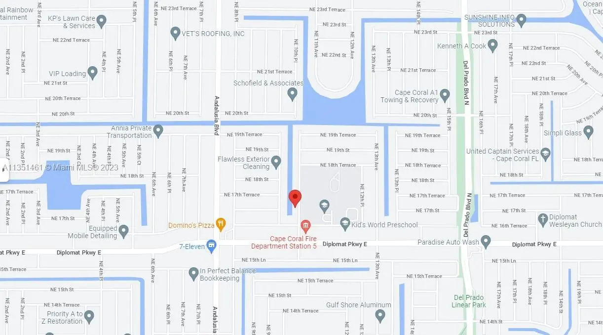 Spectacular waterfront lot with canal view. Build your amazing home with room for a pool. Across the street from Diplomat School. City of Cape Coral fast growing community a couple of blocks from Diplomat Pkwy E. Close to shopping mall, restaurants and a short trip to Ft Myers or the beach.