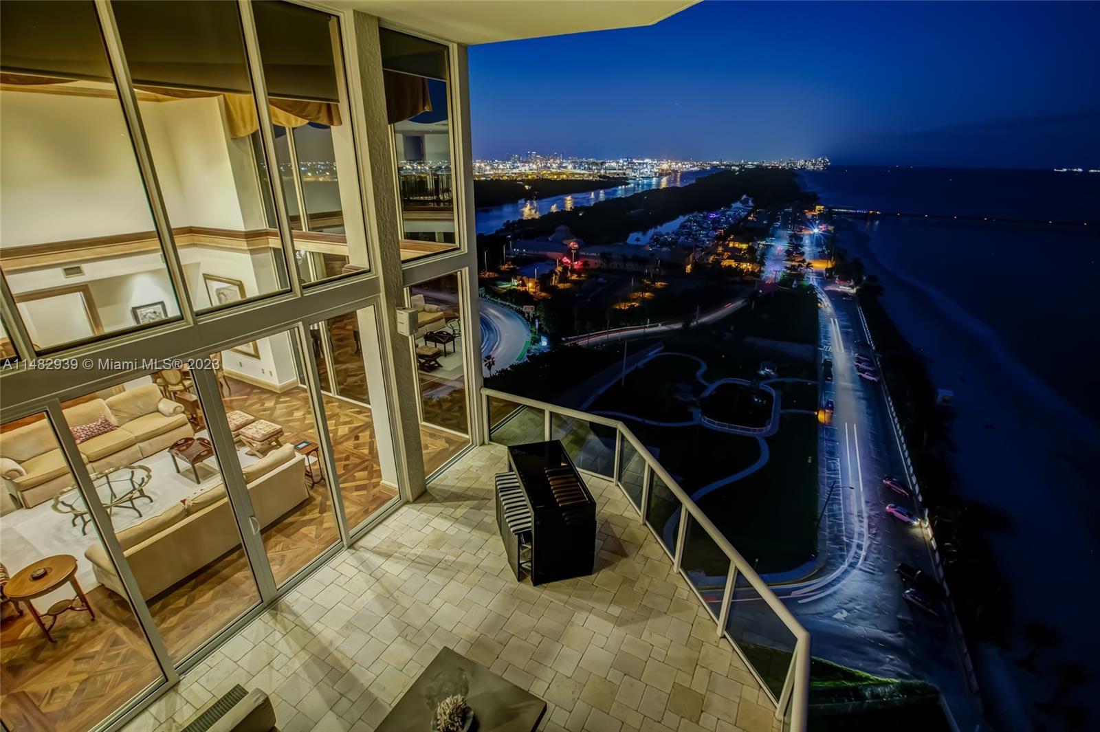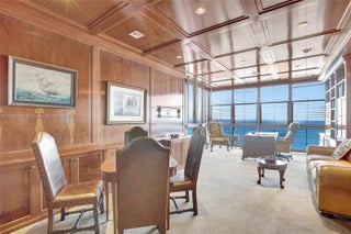 Truly one-of-a-kind, luxurious two-story beachfront penthouse condo. This exceptional residence showcases traditional high-end finishes, featuring 4 en suite bedrooms, including expansive master suite with lavish bath & private sauna. Enjoy breathtaking, unobstructed ocean views from 5 private balconies. Multiple extra rooms, including spacious study/office, private gym, library, media room & full wet bar. Private elevator access delivers you directly into the residence, complemented by an interior elevator connecting both levels. Amenities include 2 swimming pools, jacuzzi, fitness center, café, gated beach access & tennis courts. Dania Beach Marina is moments away, offering boat slip rentals with access to Port Everglades. Minutes to Fort Lauderdale International Airport.