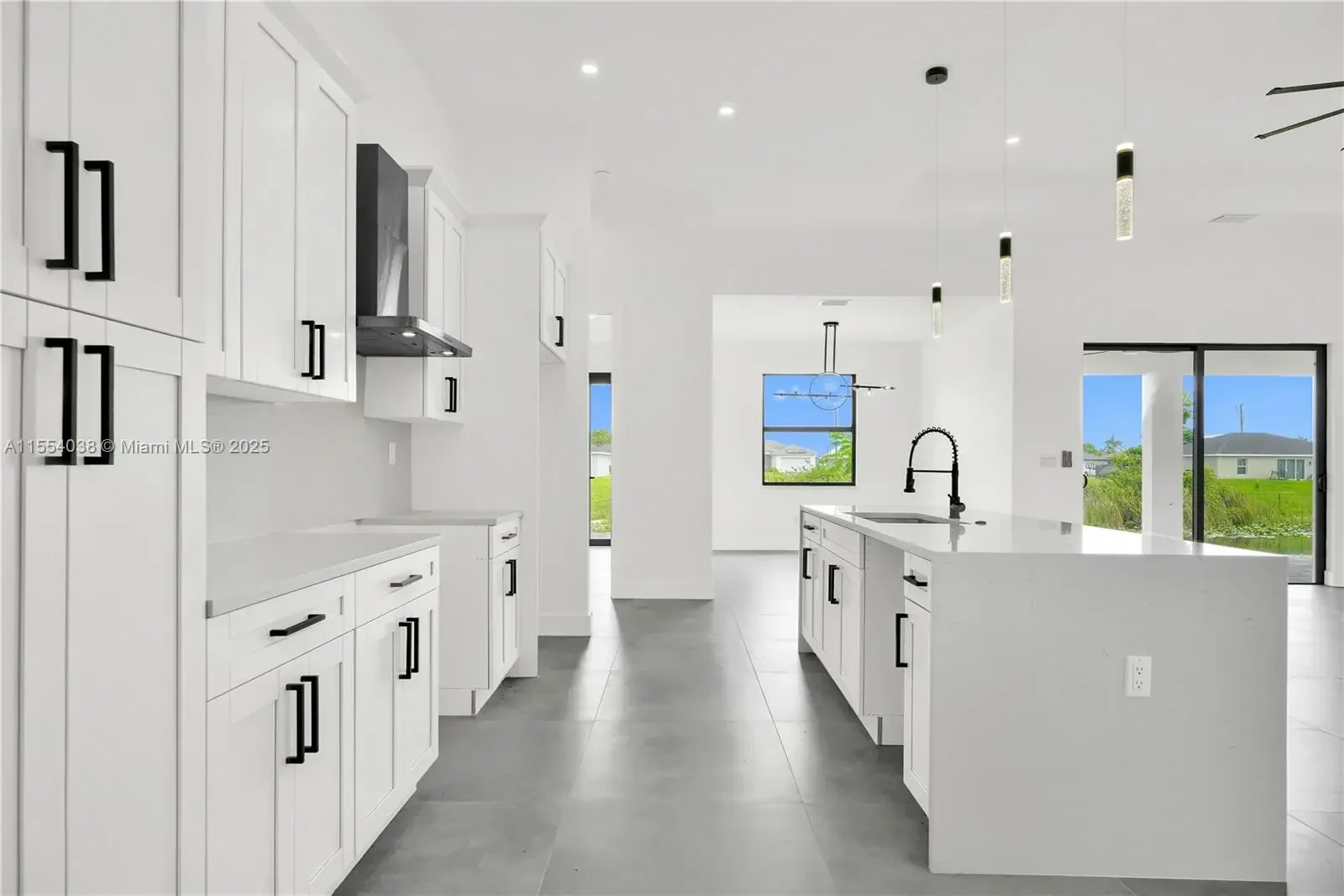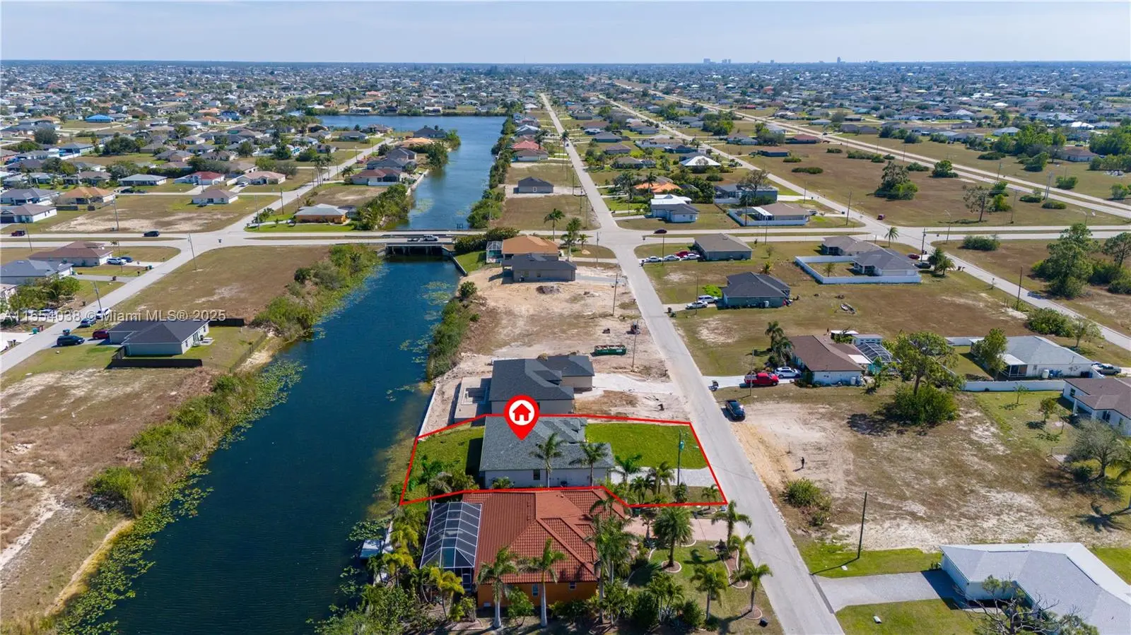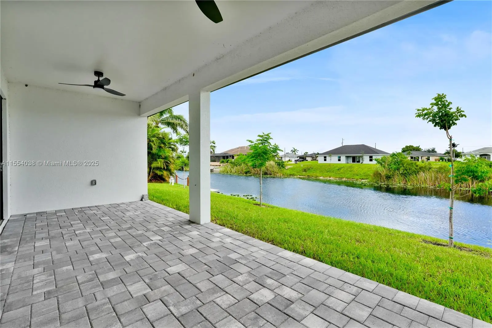 Seller is offering 6% towards Buyer's Closing costs and Prepaids! CO READY/NO FLOOD ZONE. Introducing the Ella model, a brand-new construction in Cape Coral, Florida, perfectly situated on a tranquil location backing a lake. This modern beauty offers 3 bedrooms, 2 baths, plus a flex room. The master bedroom boasts his & hers walk-in closets. The master bath exudes luxury with a shower & tub. The open format design features high ceilings & large format tile throughout, creating a spacious & elegant atmosphere. An additional cabana bathroom adds convenience for guests & outdoor entertaining. Step onto the lanai, complete with a wet bar, ideal for hosting gatherings.