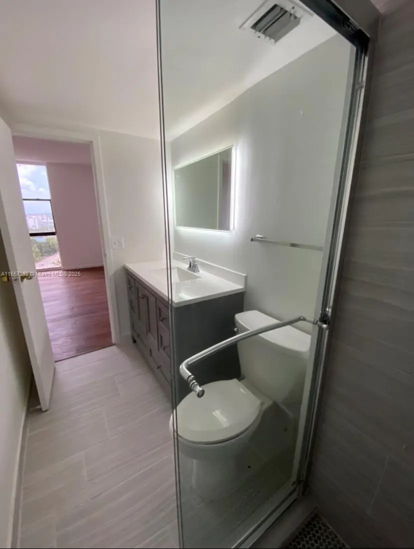 Great investment and will appreciate in the near future with the building improvement. Beautifully renovated floor plan 2/2 apartment with great views. There is one primary suite, another large 2nd bedroom. Renovated floors throughout, flat ceilings, modern open kitchen with new cabinets, counter tops and stainless steel appliances, new bathrooms floors and balcony with city views. Apt can be rented right away. 24 hours security, laundry facilities, pool, storage and covered parking. Excellent location close to Aventura, I-95, short distance from Parks, Malls, and Restaurants and only a short drive to the Beach. Right on BISCAYNE BLVD Across Street from Starbucks, Banks, Restaurants and minutes from Costco, Publix and the beaches. Make it your home or a great opportunity for Investors.