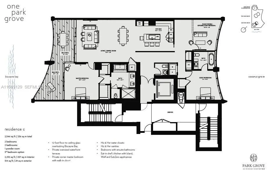 REPRICED! BEST PRICED UNIT IN ONE PARK TOWER. "GARDEN STYLE" apartment, with the feeling of a House but being able to benefit from all amenities from a luxury condo. A MUST SHOW unit. Luxury living in this ART LOVER paradise w 2 bed + DEN, (EASY converted to a 3rd BED), 2.5-bath situated on the 4th floor of One Park Grove. Spacious 2,232 sq. ft unit, beautifully designed and upgraded with a 14-foot ceilings heights. Other units units in the building offer lower heights. Premium Appliances, Wolf & Sub-Zero. ALL WALLS HAVE BEEN REINFORCED FOR ART DISPLAY. Generous primary suite, w/ two walk-in closets, separate soaking tub & dual rain shower. 50k sqft of luxurious amenities, full-service spa, premier fitness, & an expansive pools.