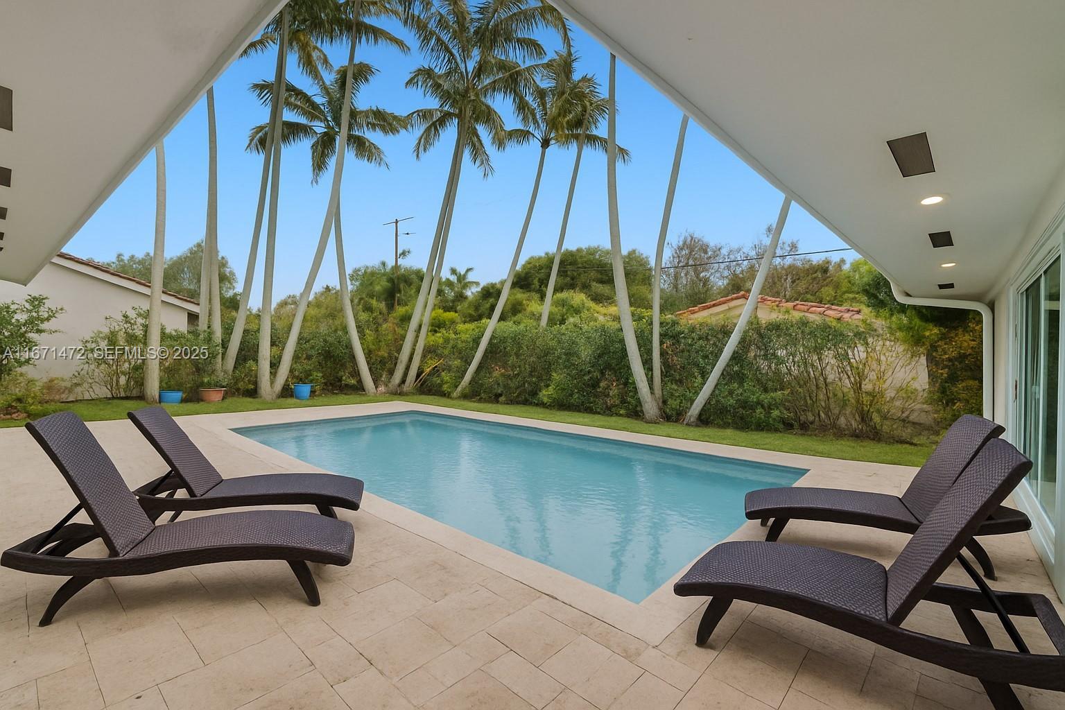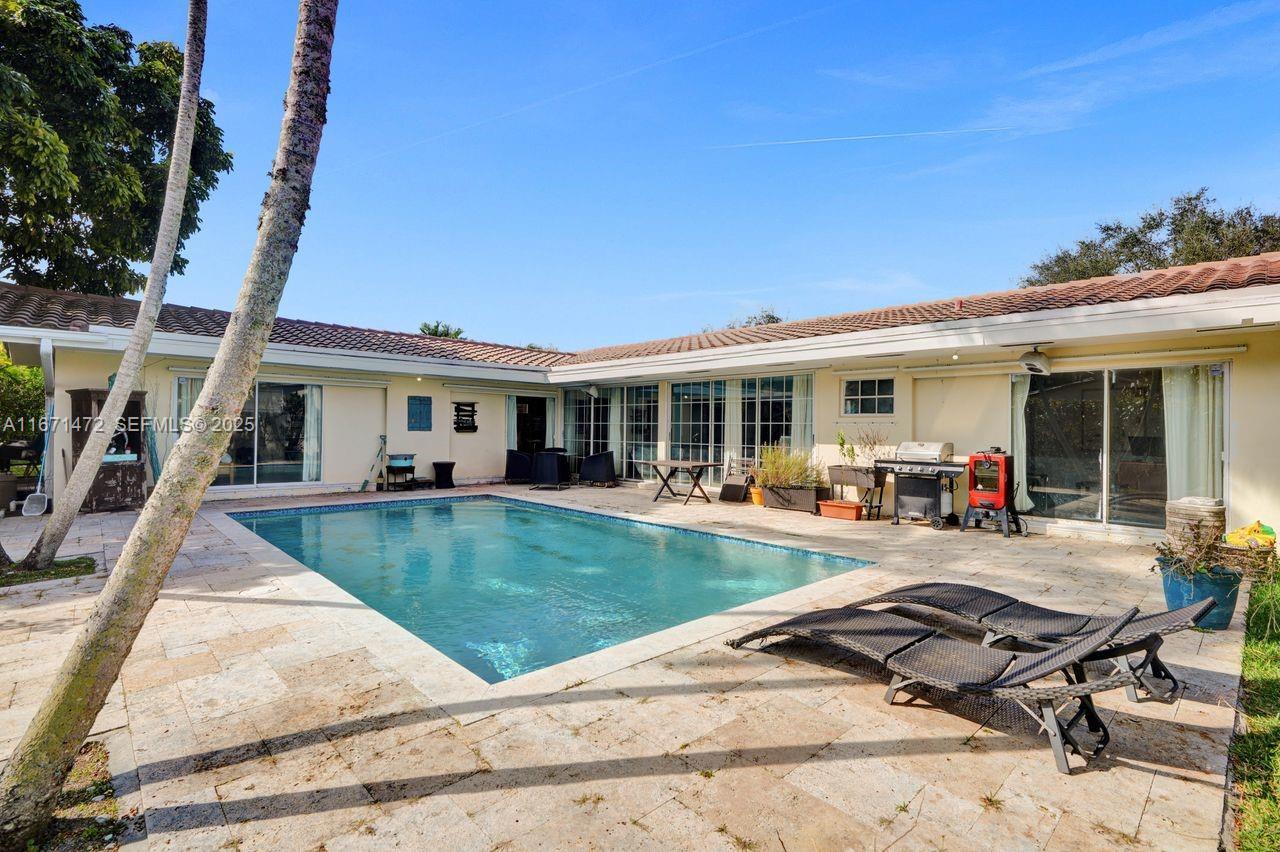This beautifully maintained home offers a spacious great room with elegant travertine flooring throughout the main living areas and warm wood floors in the bedrooms, complemented by a chef’s kitchen featuring rich wood cabinetry, granite countertops, and stainless steel appliances. Both the primary and second bedrooms open directly to a private pool, creating a seamless indoor-outdoor living experience, while a classic barrel tile roof adds timeless charm and a split floor plan ensures privacy for all. Ideally located in a top-rated school district and just minutes from the University of Miami, Merrick Park, Coconut Grove, and Merrie Christmas Park, this home combines comfort, convenience, and peace of mind—especially with its location outside of a flood zone.