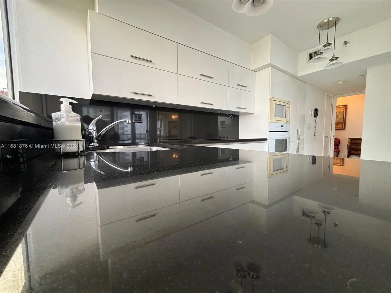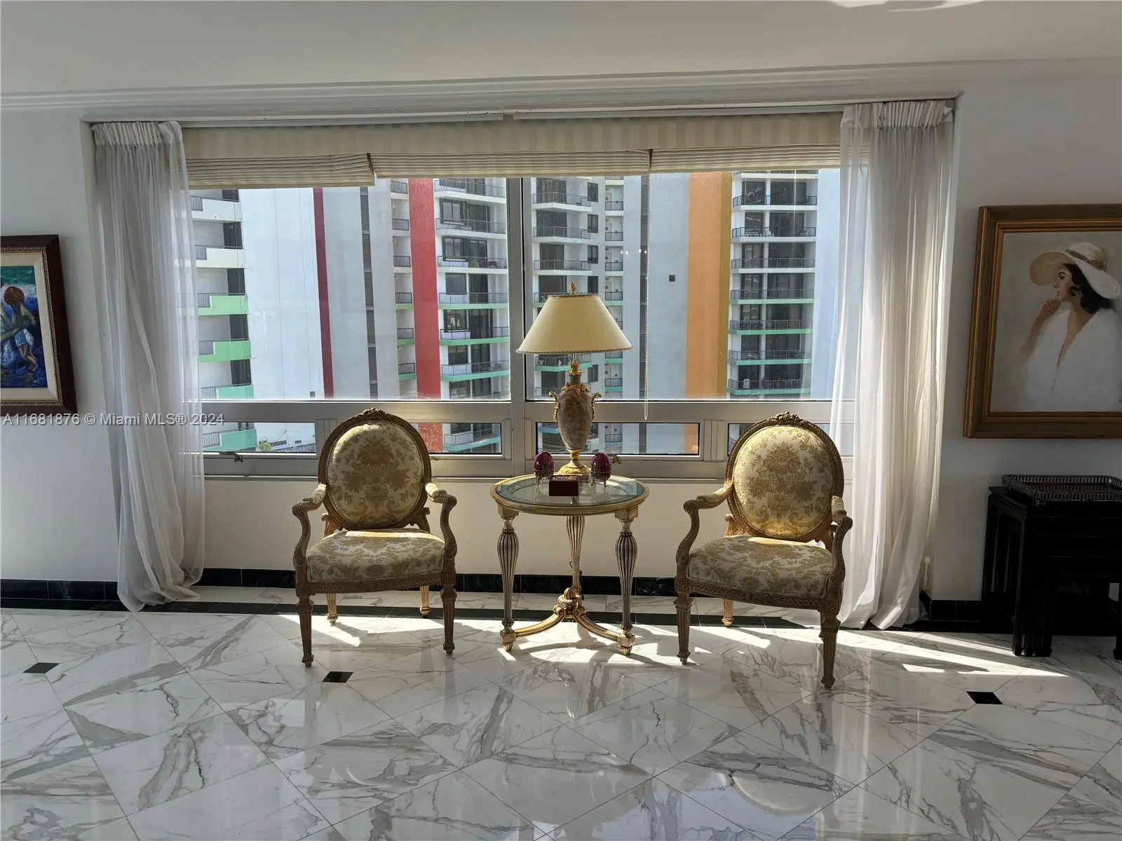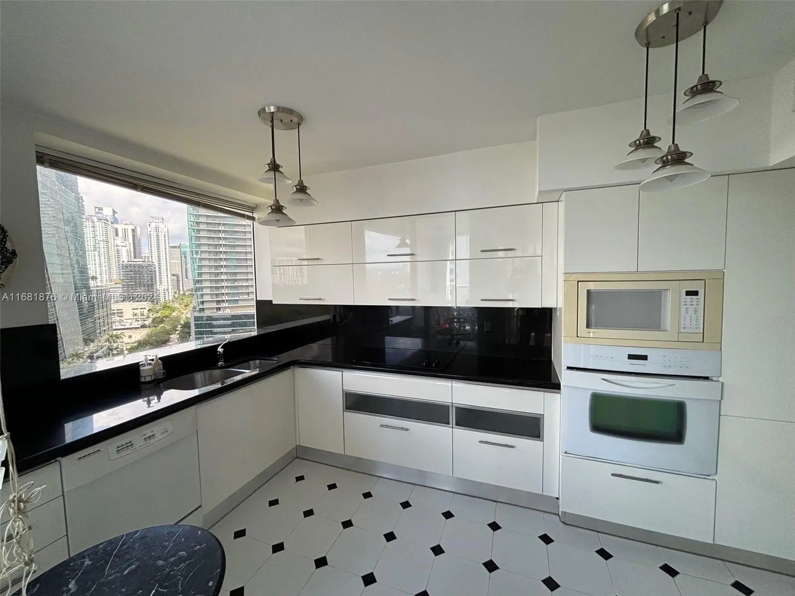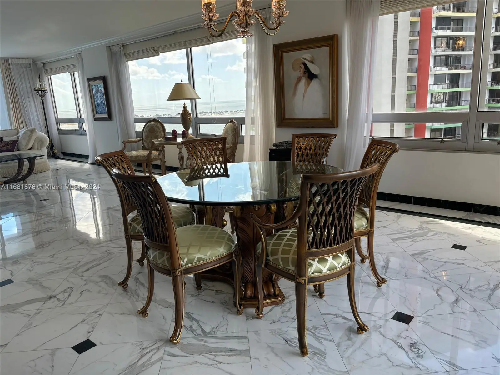 Elegance, quality, comfort and 240-degree views, describe this property. Watch the sun rise over Biscayne Bay from your master bedroom, balcony or living room, then watch as the sun sets over the city from your kitchen, balcony or dining room. View Brickell Avenue and all its splendor. Imported marble floors throughout. Modern kitchen with imported MiaCucina cabinetry, pantry and quartz counter tops. Bathrooms totally updated with imported porcelain floors and walls. Gold plated fixtures. Master Bath with jetted shower/tub. Master bedroom with two closets. Enter through the private elevator stop into the elegant foyer into the natural light brightness of the living area showcasing the splendor of the beautiful marble floors and window curtains. Unit comes with 2 contiguous parking spaces.