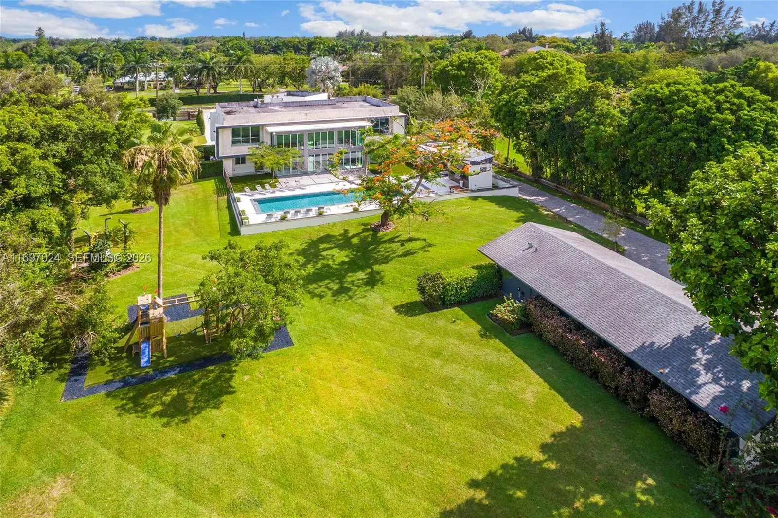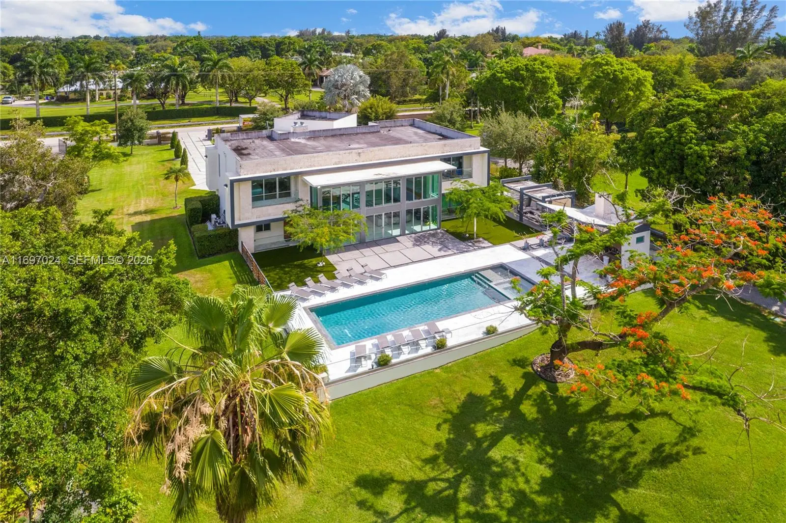 This extraordinary, highly secure compound offers unparalleled luxury with every imaginable amenity. Featuring a huge lot with a stunning pool area complete with a covered gazebo, chef’s grill, and cabana bath, it’s perfect for both entertaining and relaxation. The property also includes a separate guest house and horse stables, ideal for discerning equestrian lovers, with a large equestrian center just one block away. Set on several acres of pristine land, this estate boasts 9 spacious bedrooms and 10.5 bathrooms, providing ample space for large families and visiting guests, all designed to accommodate a lifestyle of unparalleled comfort and sophistication