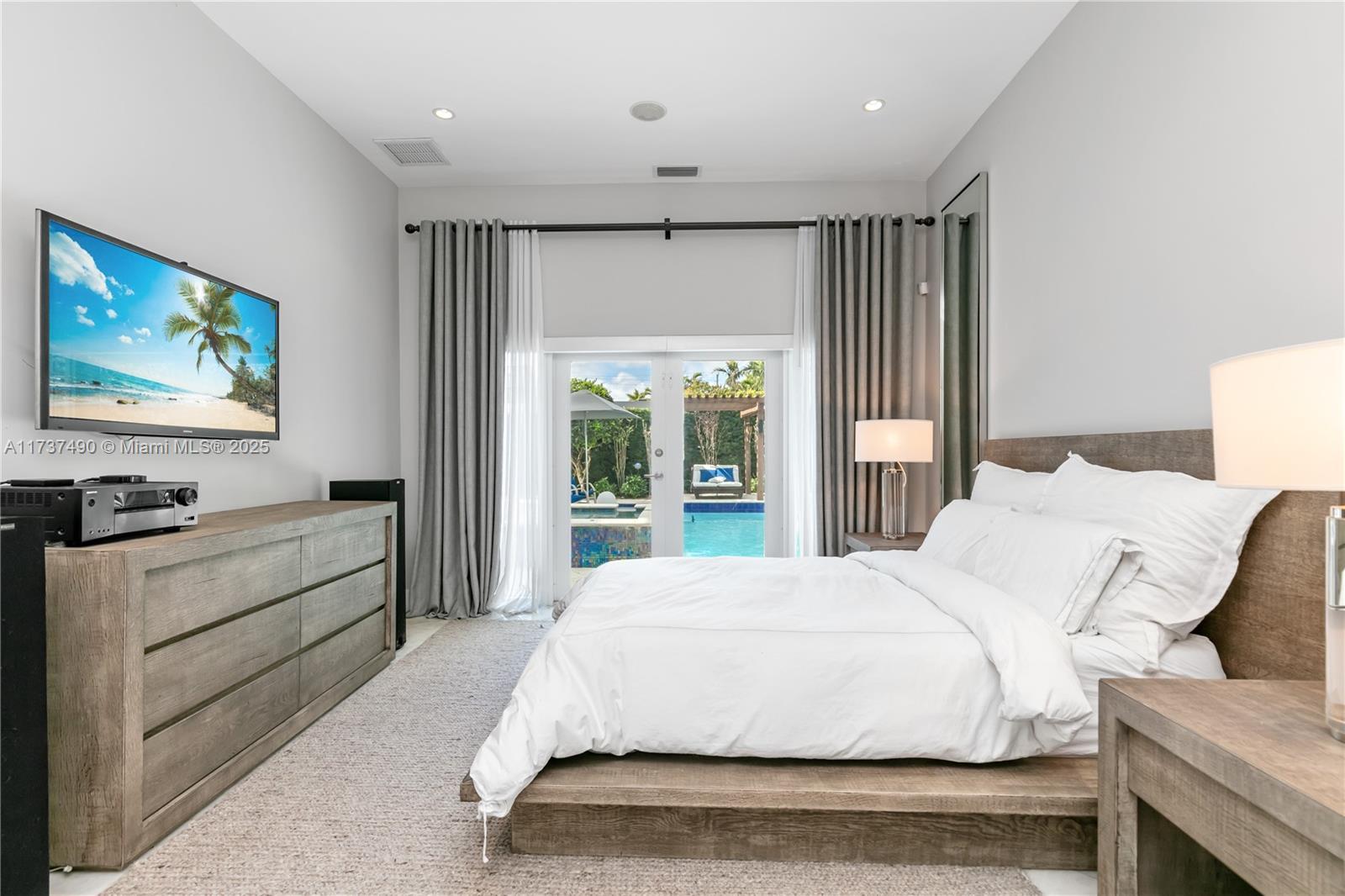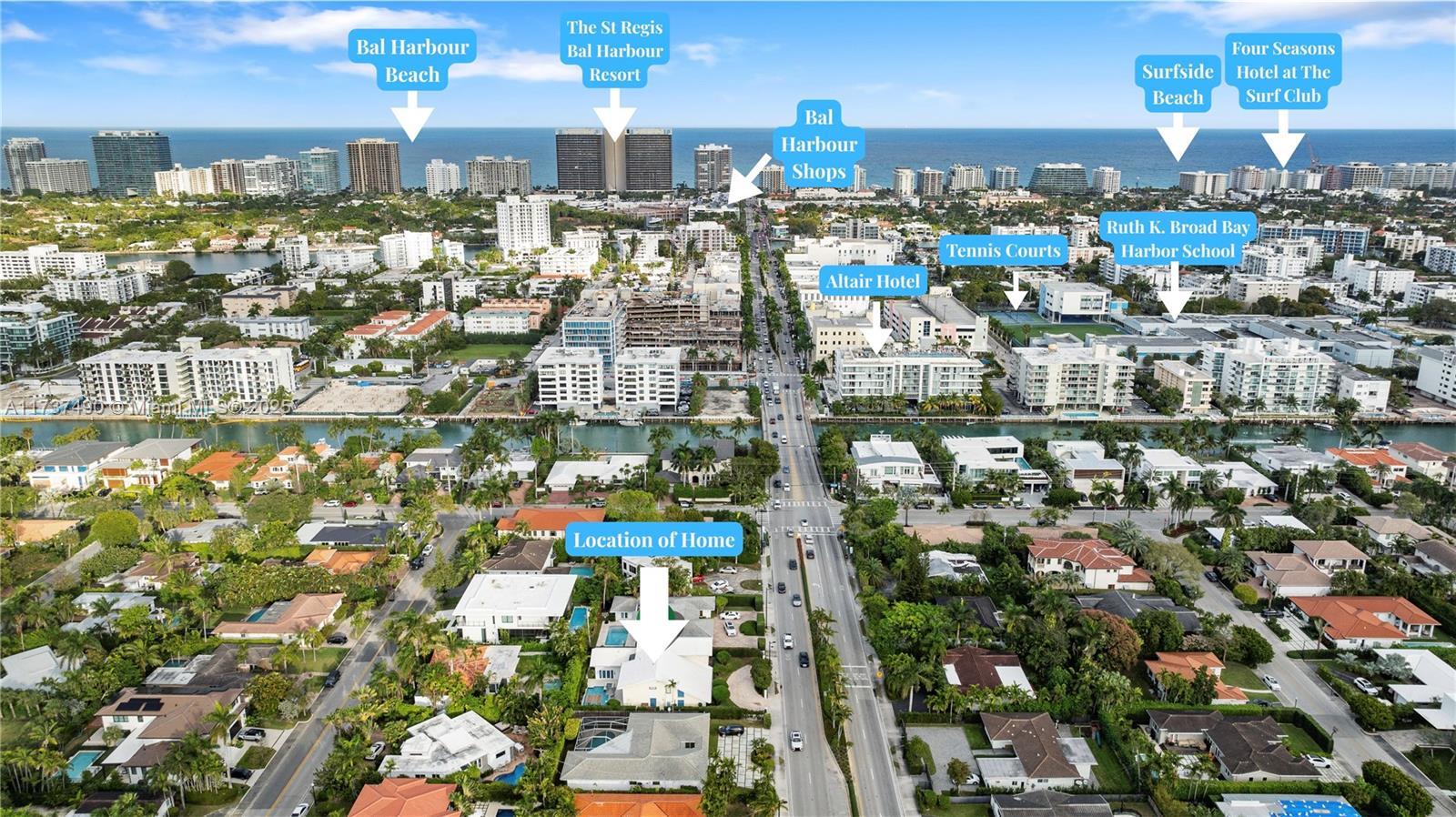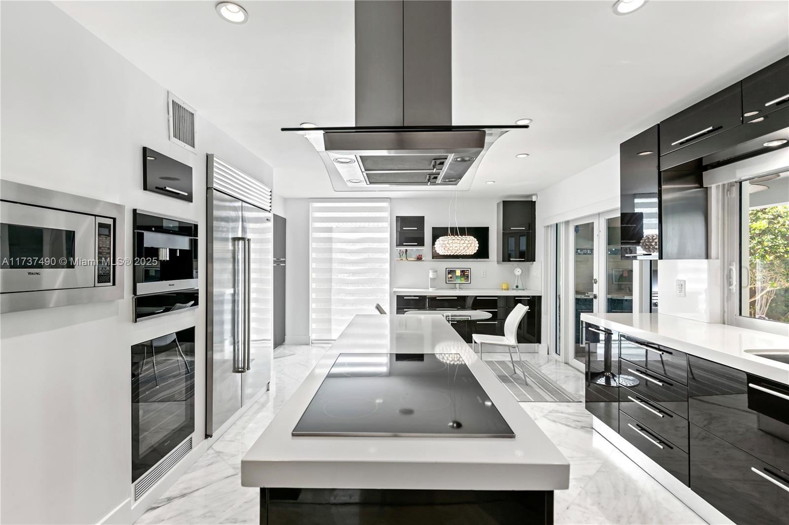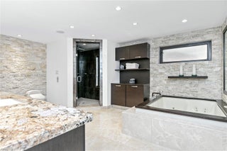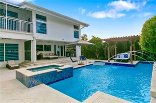 Located in Bay Harbor Islands, one of the most coveted neighborhoods in Miami, is this 5090sqft mid-century modern home rebuilt in 2009! This exquisite property has 4 large ensuite bedrooms, an expansive office and a spacious den. Other features include high ceilings, impact windows, natural woods, stone accents, smart home technology, surround sound, electric blinds, and redone electric & plumbing. The chef's kitchen has top-of-the-line Miele and Subzero appliances. The primary suite includes 3 closets, a spa-like bath with a multi jetted shower and a balcony. Paradise is in the backyard with a custom pool, jacuzzi, sun shelf, summer kitchen, pergola, pool bath, lush landscaping & a butterfly garden. Amazing location: walk to the beach, cafes, shopping, A+ schools, tennis & parks. NO HOA