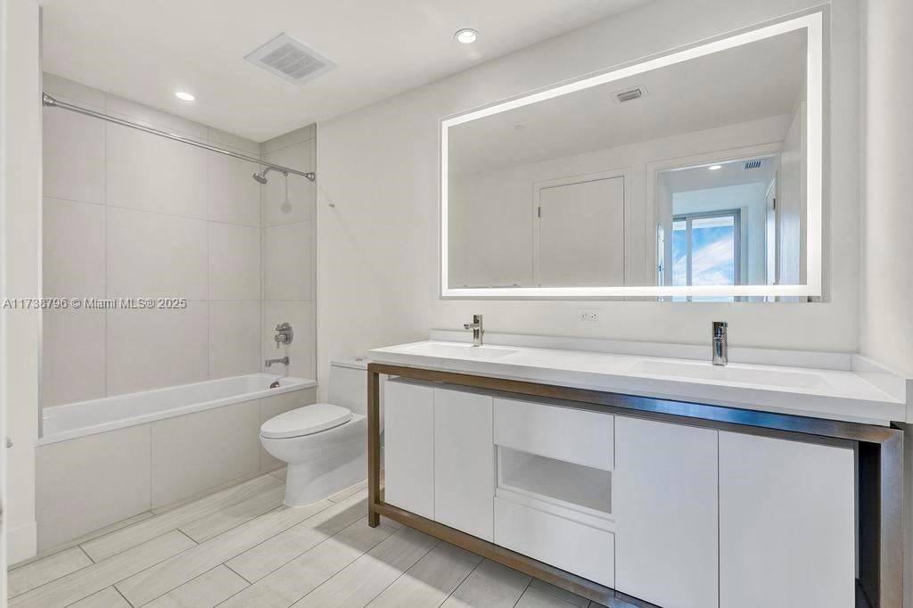 This stunning luxury 2-bedroom, 2-bathroom unit in Metropica, is situated on a high floor and boasts top-of-the-line stainless steel appliances, elegant Italian cabinetry, and pristine white waterfall quartz countertops. Floor-to-ceiling impact windows offer panoramic views, flooding the space with natural light, while porcelain floors run throughout. The building offers a full range of resort-style amenities, including a state-of-the-art fitness center with Technogym equipment, a spa, sauna, and steam room. Additional features include a business center, kids' playroom, theater, party room, and an indoor club room with a bar, lounge, and kitchen. Outside, enjoy an infinity-edge pool, jacuzzi, BBQ area, full-size tennis courts, and a pet spa. With 24-hour security and valet service included