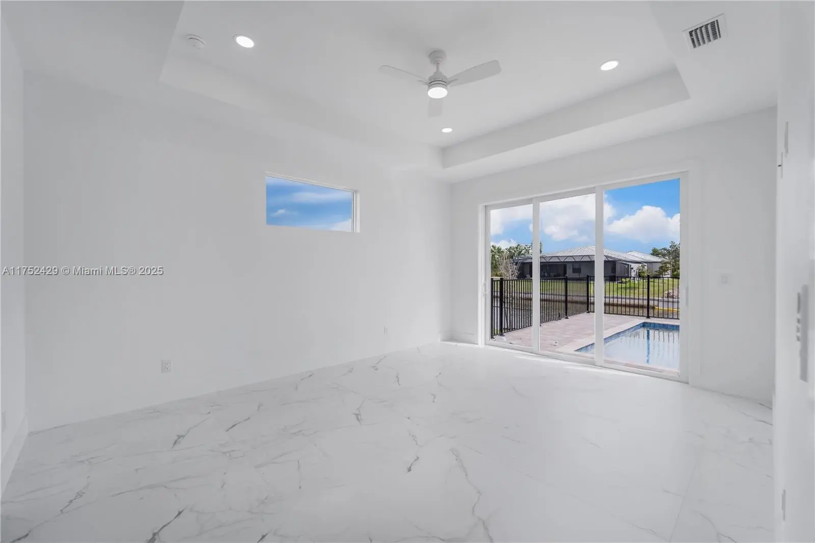 Brand new gulf access home, no bridges, 3 cars garage house offer 4 bedrooms, 3 bathrooms, office, cathedral and coffered ceiling, impact resistant doors and windows, large pool and outdoor kitchen.