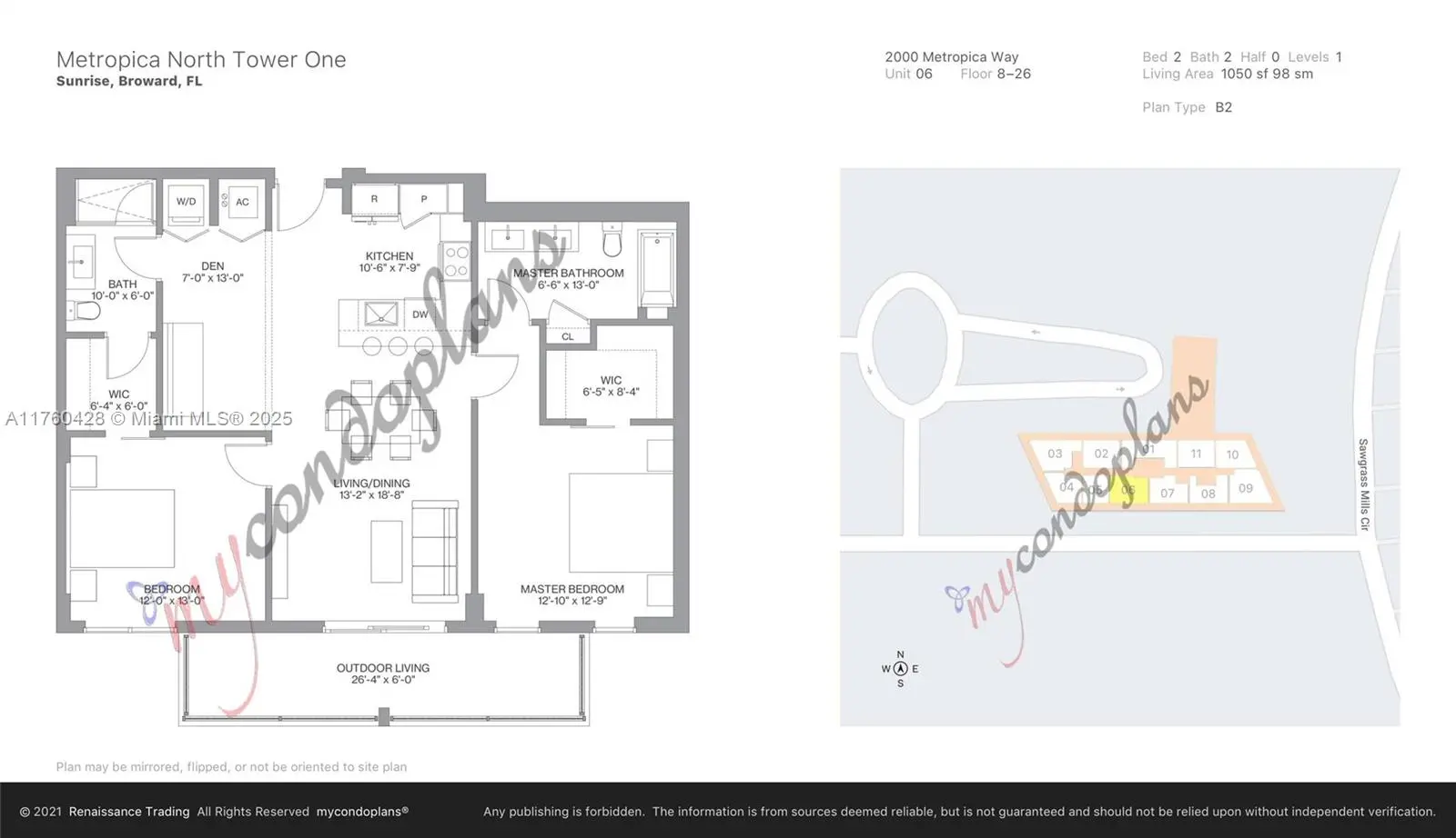 Luxury, beautiful and spacious 2 Bed + 2 Bath +Den condo, minutes from Sawgrass mills mall. Enjoy breathtaking views, European style kitchen, Class A amenities include: State of the Art Gym Spa, Sauna, Steam room, Infinity edge pool, Club room, party room, kids room, BBQ area, Business center, Concierge, Valet and more... Motivated seller!!!