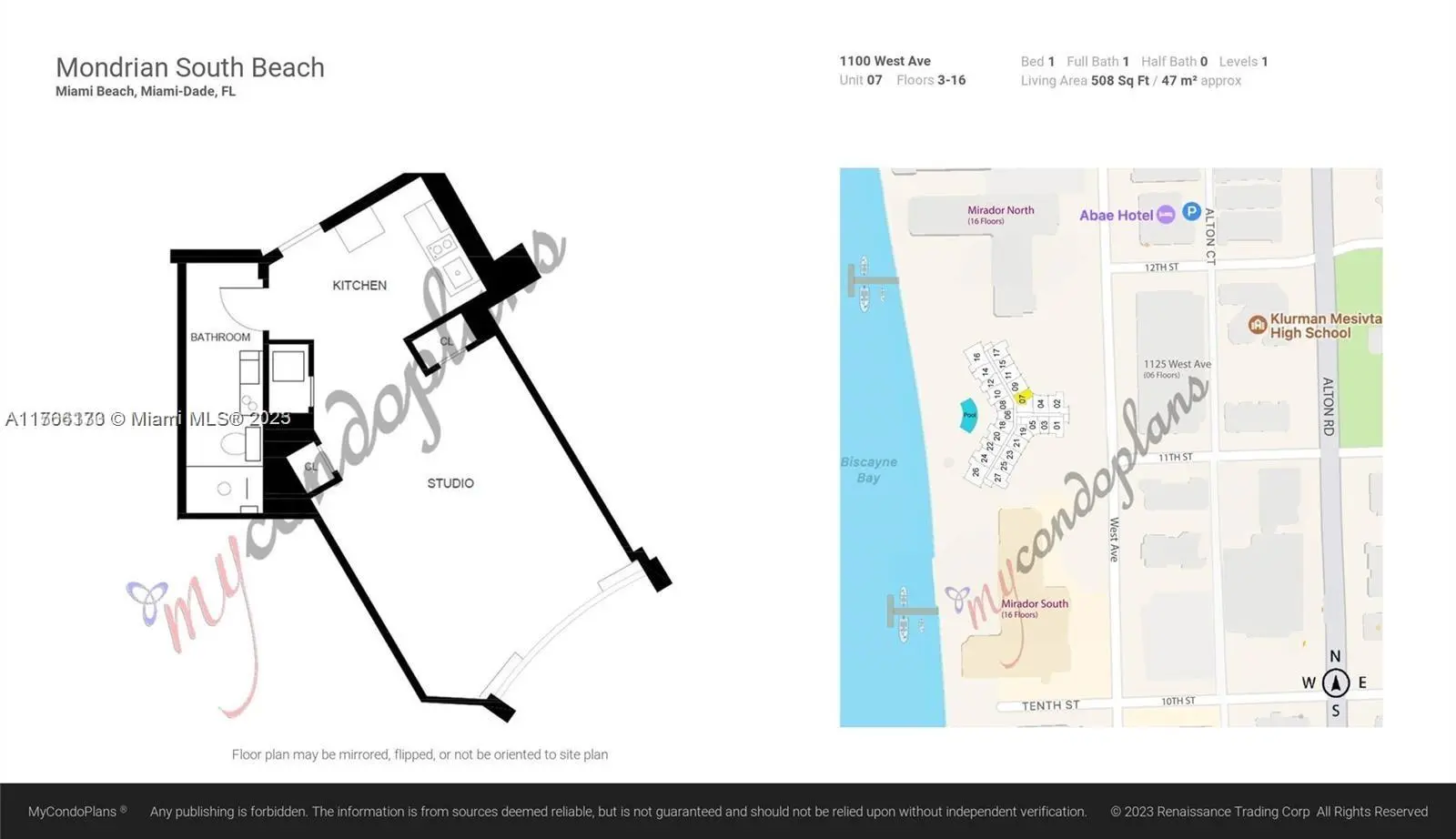 Stunning studio with mesmerizing city and ocean views! Located in one of the finest developments in Miami Beach, the Mondrian offers full condominium ownership with the option of condo hotel arrangement. This unit is not currently part of the hotel program. The association has the right of first refusal.