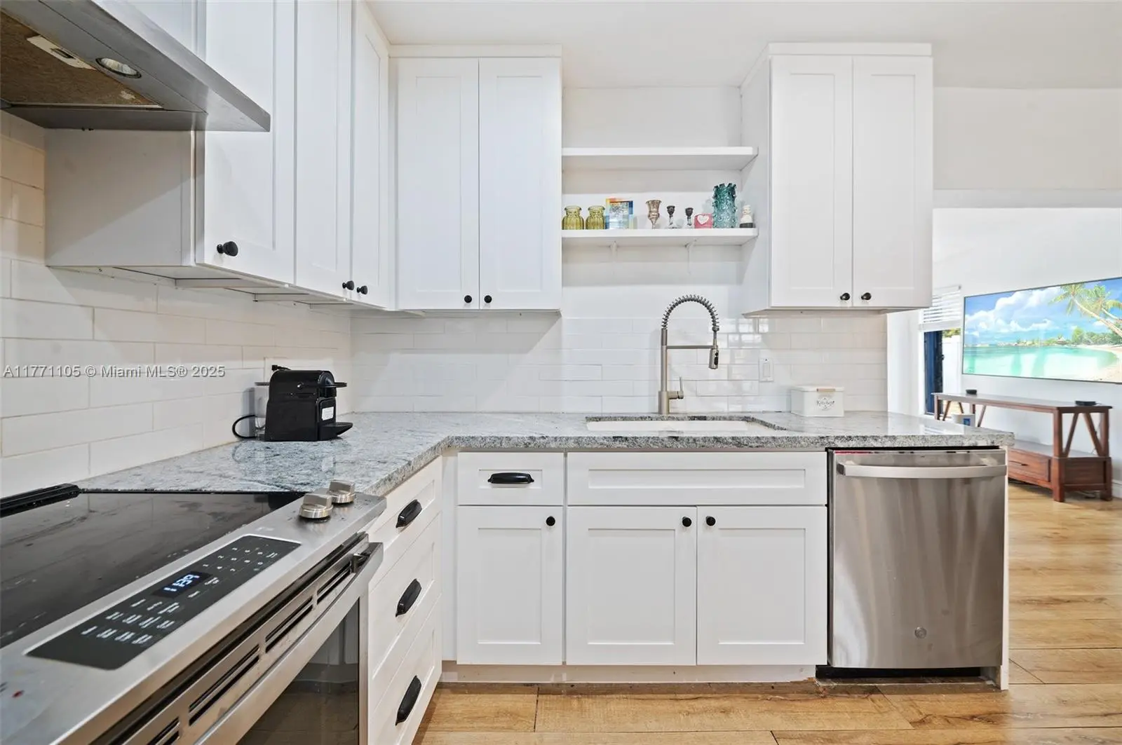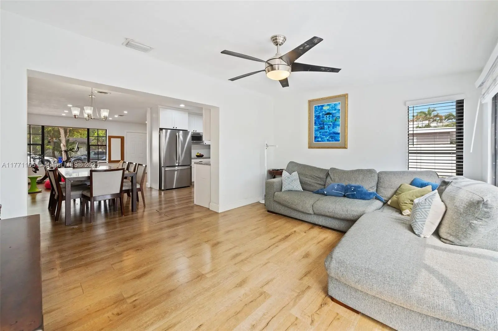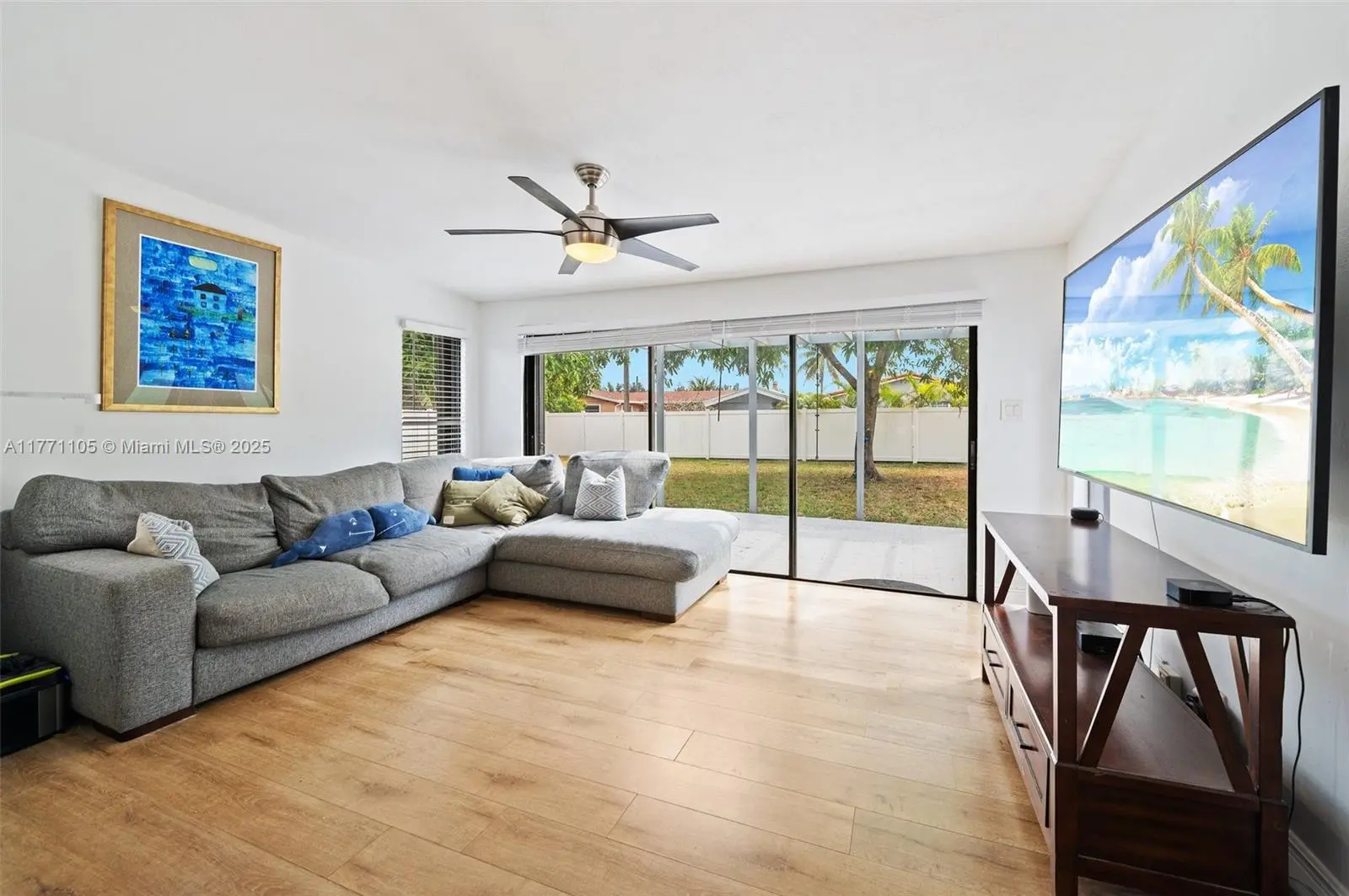Step into a world of elegance with this four-bedroom, two-bathroom masterpiece of contemporary design. Every detail has been thoughtfully curated, with stunning upgrades throughout—from a chef-inspired kitchen with high-end appliances to expansive living areas crafted for comfort and style. This home offers not only beauty but peace of mind: hurricane shutters, underground electric lines, and an electric car charger blend security with modern convenience. Outdoors, a private sanctuary awaits. The fully fenced backyard is adorned with mature mango trees and a spacious patio—the perfect setting for a pool or unforgettable gatherings under the stars. Nestled in a tranquil neighborhood, this is more than a home—it’s a rare jewel of modern luxury