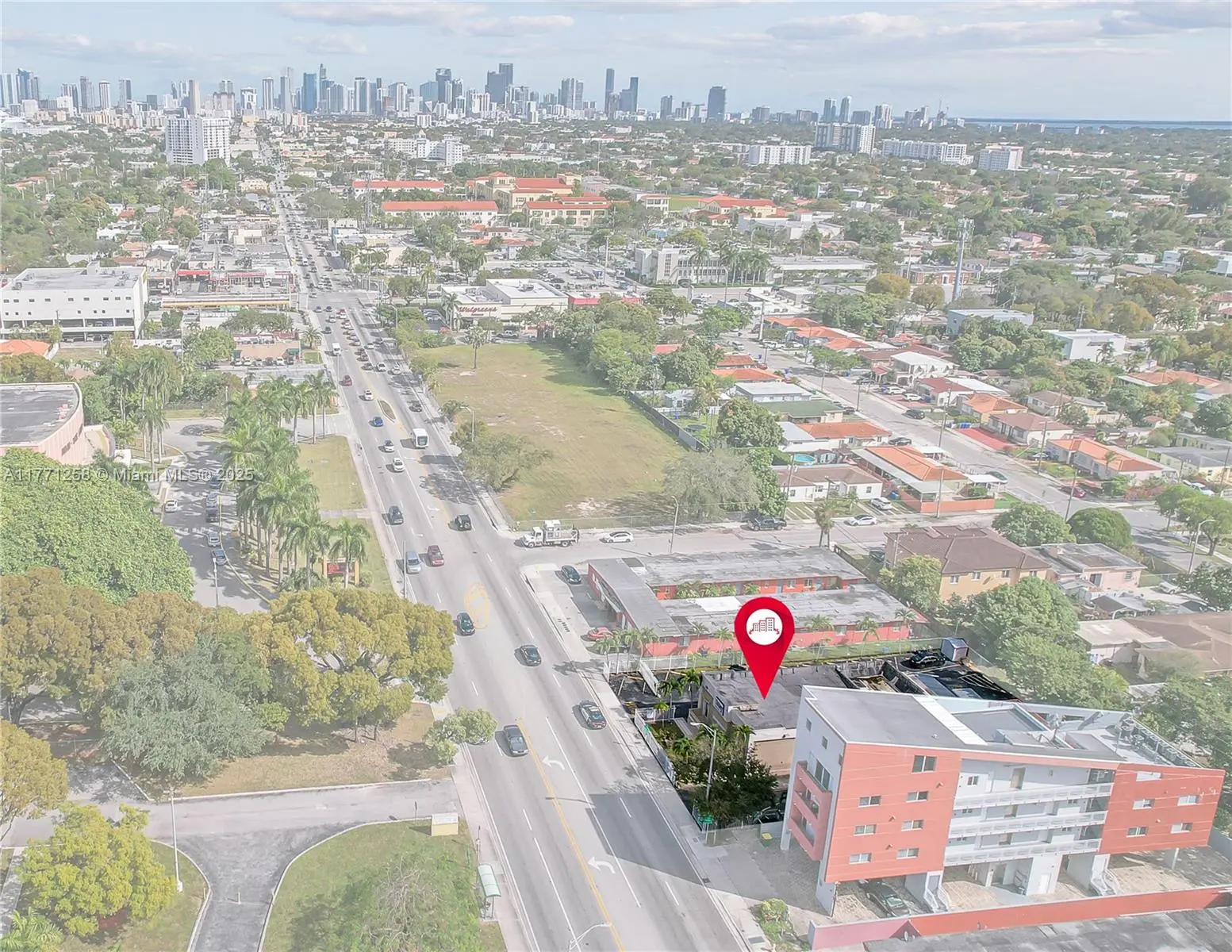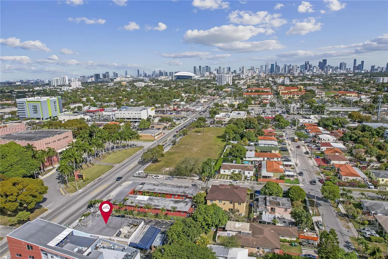 Freestanding retail/office property with 22 parking spaces on busy West Flagler Street. Perfect for medical or day care center. 2,846 sf building on a 15,000 sf lot, two blocks from 27th ave. This building is also a good candidate to convert to a drive thru because of the building layout in the center of the lot. Currently has a circular drive through around the building and a permitted storage shed in the back with racks. There is an area to put a green area for a day care in the rear of the property, but would lose some parking. Property is rented to a school uniform sales tenant month to month.