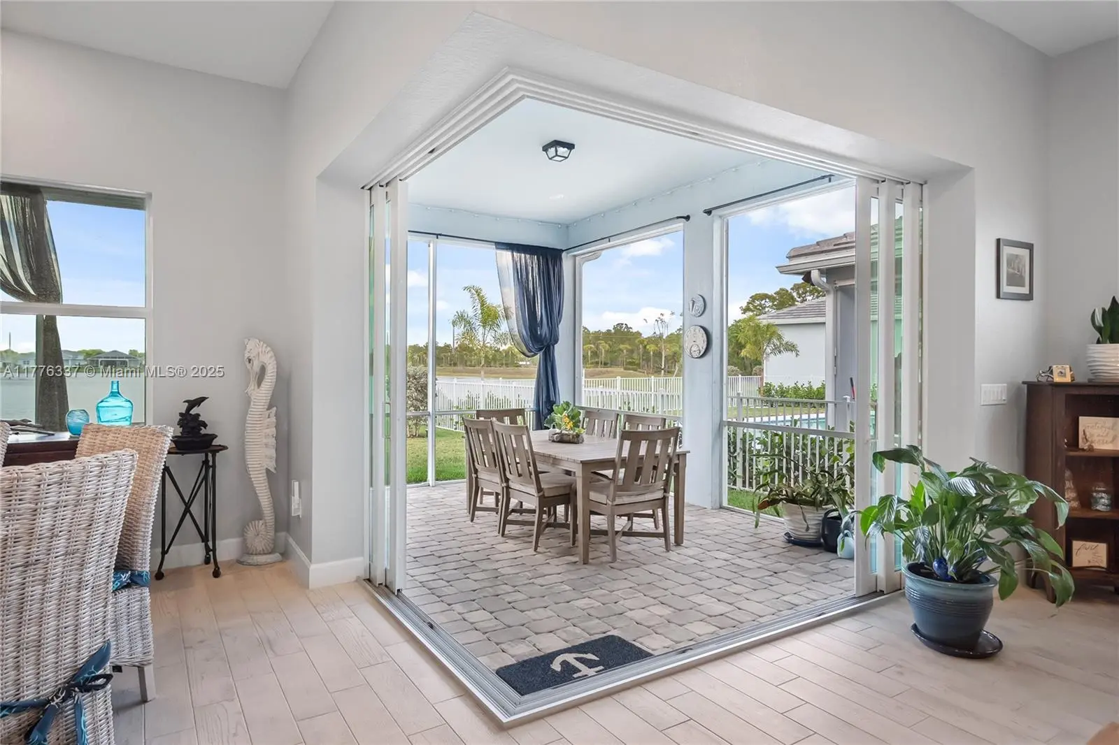 Amazing move in ready open concept home in desirable Highpointe community! Enjoy a screened in patio overlooking your peaceful back yard & generous, serene lake view and unwind with gorgeous sunsets! Find your coastal retreat w/high end finishes full of upgrades! Primary features oversize shower & walk in closet; all closets have built ins; kitchen boasts a large island, wall oven & pantry; home showcases beautiful wood look tile floors throughout; zero corner pocket slider; oversize laundry room w/ beautiful cabinets; impact windows; concrete tile roof; Lennox PureAir A/C w/UVA Light & more! Many items are still under warranty. A must see! Gated community with lots of sidewalks provides landscaping, irrigation, internet & amazing amenities with clubhouse, resort-style pool w/beach entry, pickle ball, basketball, state of the art fitness center, fire pit, grills, playground, dog park, barefoot bar & more. Text Listing Agent or book online.