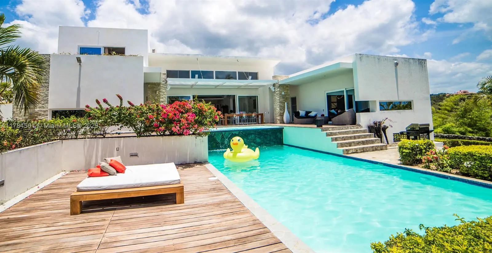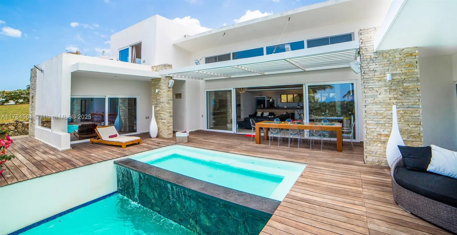Villa Vista del Caribe (Move-In Ready) Villa Vista del Caribe is a fully furnished, tastefully decorated property equipped with all the essentials to create a comfortable and sophisticated living experience. Each room features air conditioning and expansive windows that offer exclusive, panoramic views. From the terraces, living room, and both master suites, you’ll enjoy breathtaking vistas of the stunning landscapes that surround the complex. The two-level pool is a standout feature, elegantly framed by spacious terraces and lush, tropical gardens. The upper level of the pool, located in the villa’s main area, includes a built-in whirlpool—perfect for relaxation and unwinding in style.