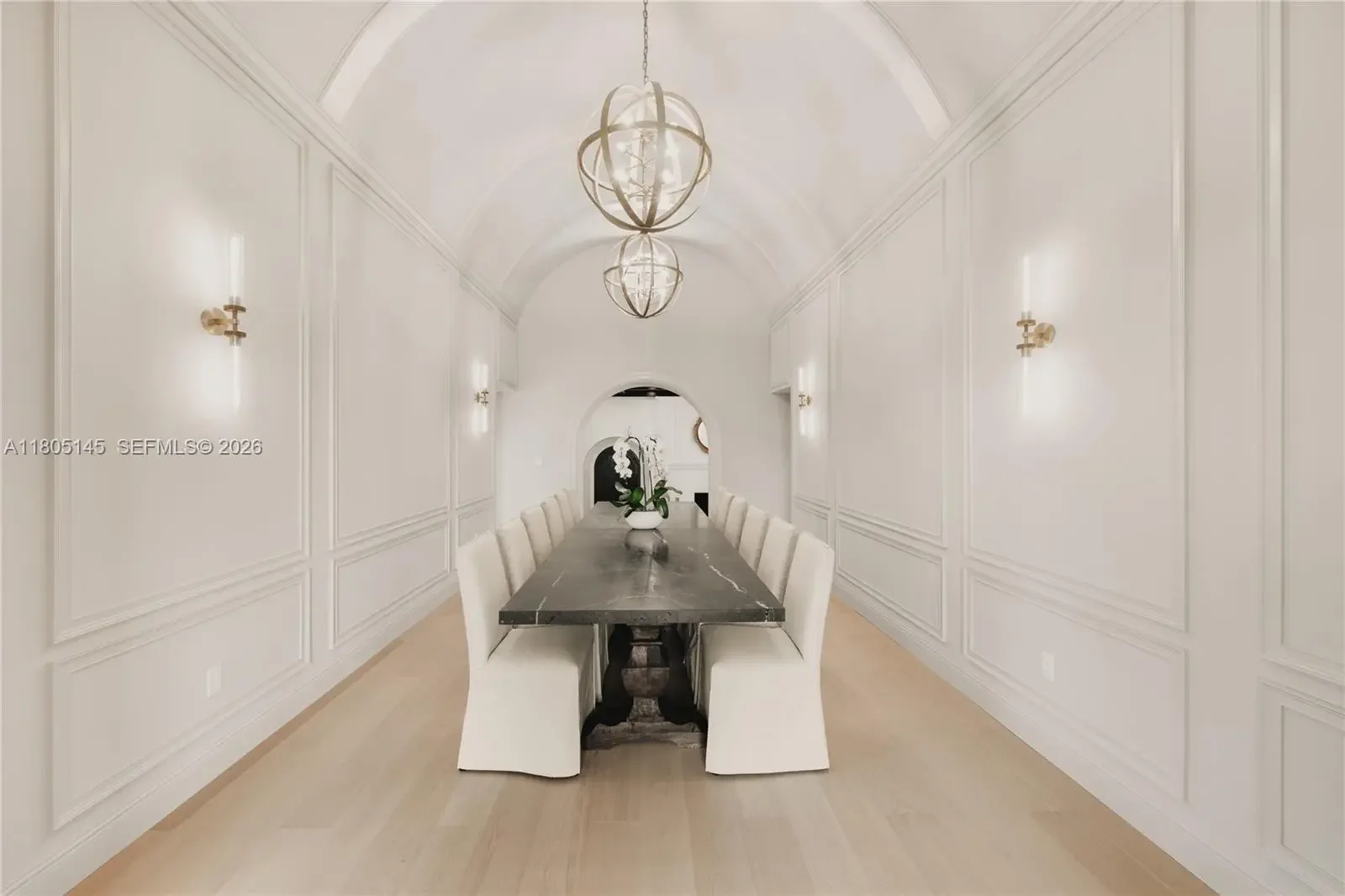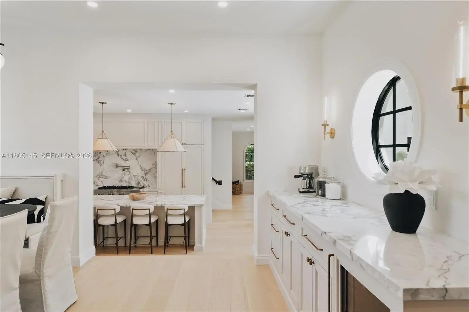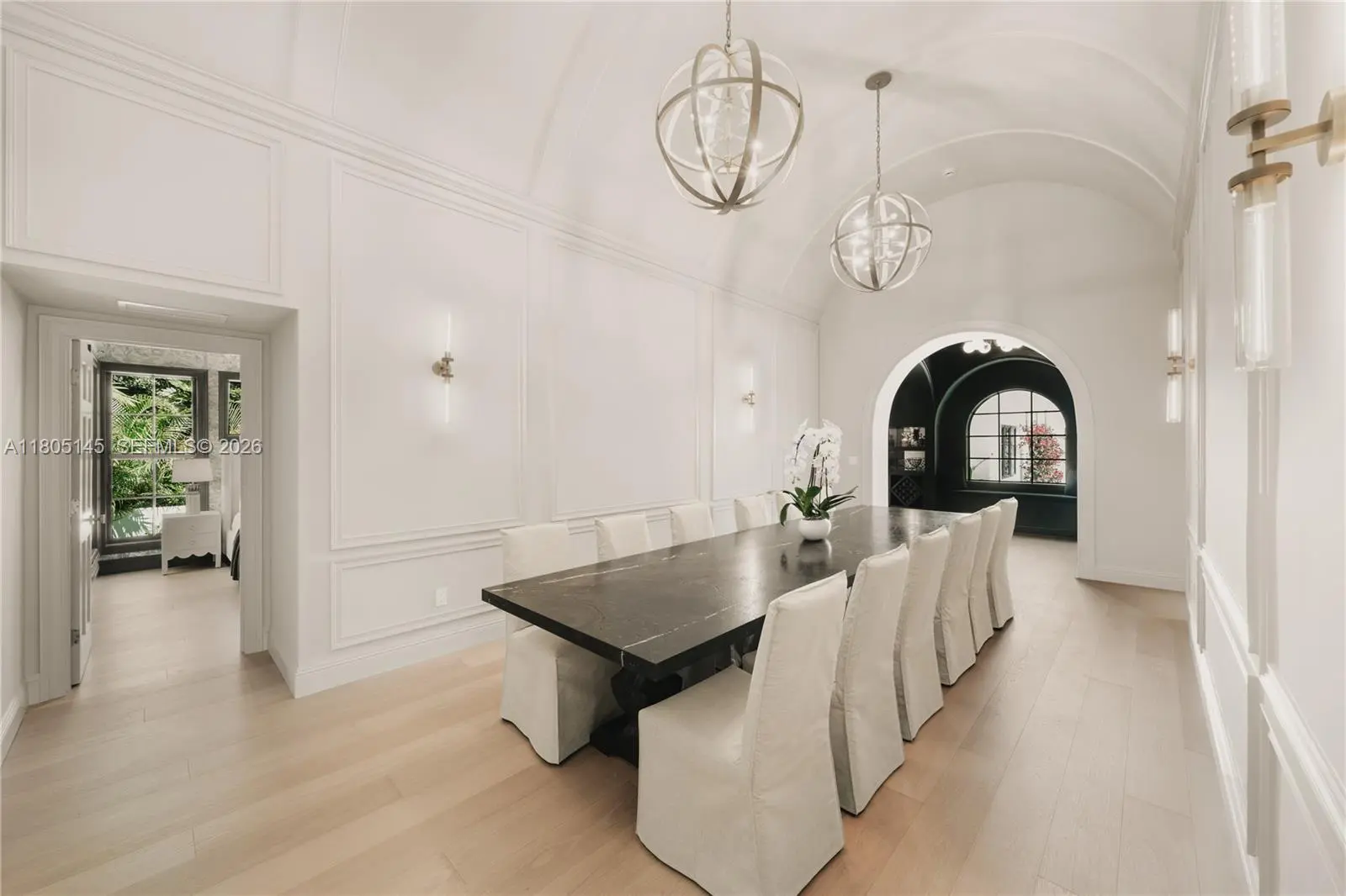 Welcome to El Tesoro, a New Construction 4528 sq ft, 6bd/5.5ba Mission-Style Estate set on a 10500 sq ft lot in guard-gated Historic Morningside’s most coveted stretch (55-60th) celebrated for bay views, wide tree-lined streets, peace & privacy. Large new construction homes are incredibly rare here due to historic constraints, especially turnkey, furnished and outside the flood zone. Inside, 15 ft ceilings are accented by arches that echo the Mission exterior, along with custom woodwork, coffered ceilings, wainscoting & beams. Every room showcases custom cabinetry paired with marblework intricately carved onsite. A limewashed primary offers 2 terraces, nursery, walk-in closet & indoor/outdoor wet room. El Tesoro is an oasis minutes from Design District, Downtown, Brickell, Beach & Airport.