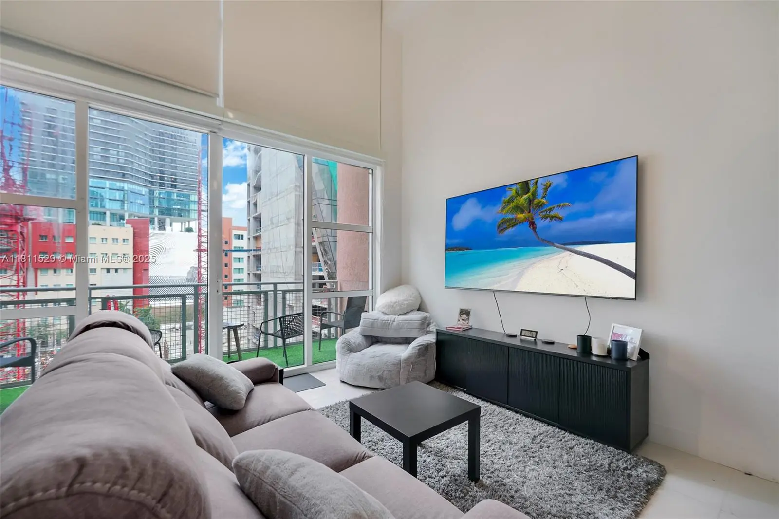 Very nice two-story loft; 1 Bedroom, 1 Full Bath upstairs 1/2 Bath downstairs with 18' floor to ceiling windows; Lounge in the tropical pool while your friends enjoy a massage at the spa or a drink at the wet bar. Building is located directly in front of BAYSIDE; Amenities include: 2 Pools, pool table, media room, conference room, Wi-Fi lounge, running track.