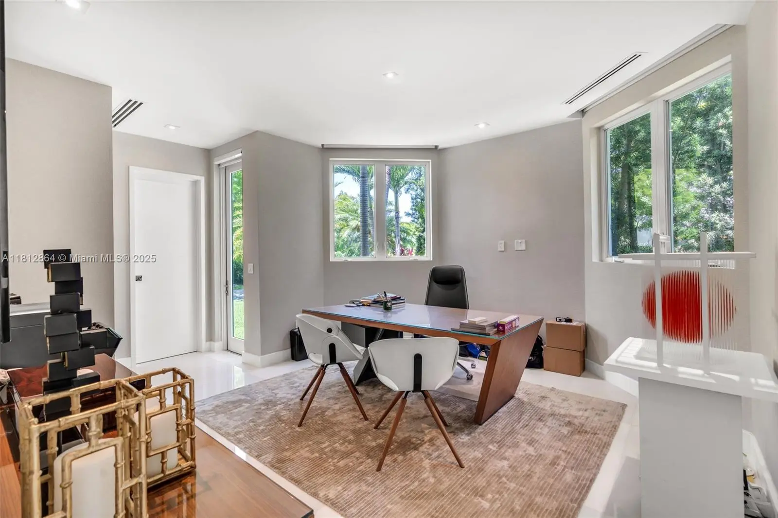 Spectacular and impeccably appointed modern residence situated on a 13,651 SF lot on prestigious Island Drive—one of Key Biscayne’s most elevated streets. Boasting a total of 8,011 SF, this 6-bedroom, 6 full bath + 2 half bath home is open, bright, and flooded with natural light throughout. Enjoy breathtaking water views and private access to the water in a setting that blends refined luxury with ultimate privacy. This residence showcases exquisitely curated, high-end designer finishes, a dramatic wine cellar, two expansive family rooms, and a closed 2-car garage. The outdoor living area is equally impressive, featuring a sleek summer kitchen and lush, professionally designed landscaping—ideal for elegant island living and entertaining. Per approved plans 6,405 SF under AC -8,682 SF Total