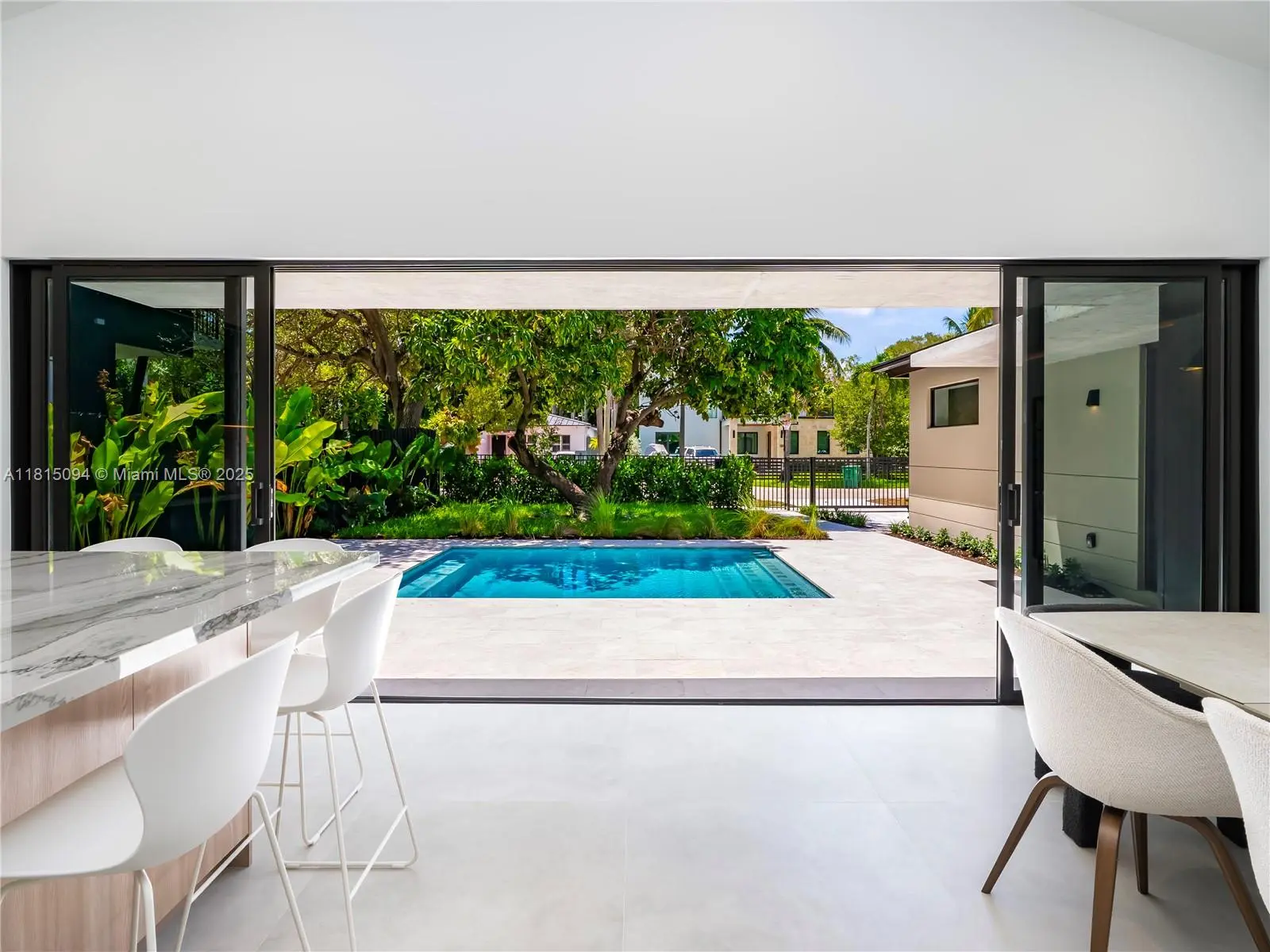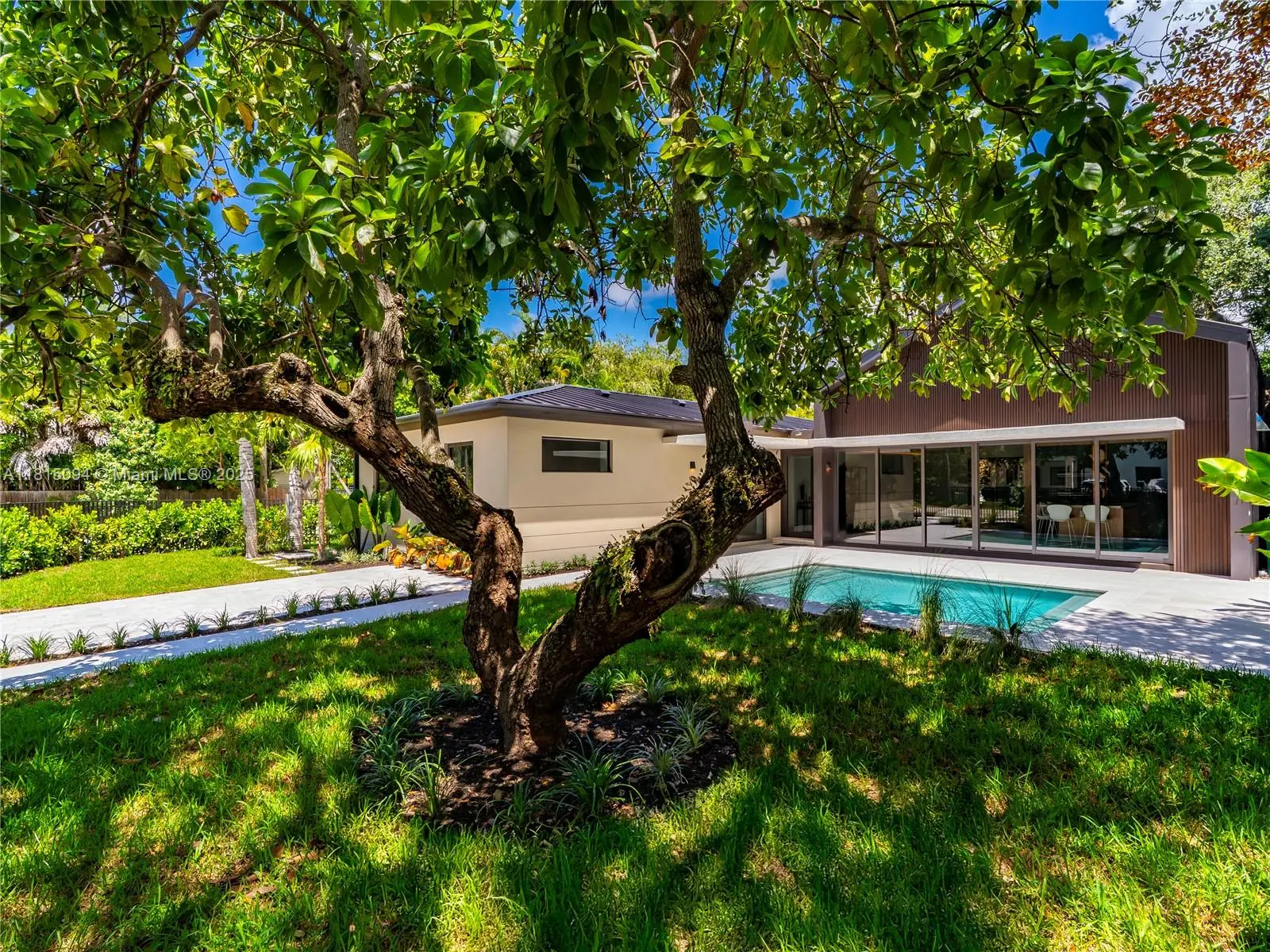 Welcome to 2777 Calusa St. where style, function, and location meet in perfect harmony. Set on a rare 7500 SF triple frontage lot in the heart of Coconut Grove, this 4-bed, 3.5-bath stunner has been completely reimagined from the ground up. Step into an open-concept living space flooded with natural light and anchored by a showpiece European-style kitchen with custom cabinetry and sleek integrated appliances all framed by massive sliding glass doors for that indoor-outdoor Grove vibe. Enjoy high-end touches, porcelain tile floors, full home office, spacious family room & laundry room. Outside, unwind by the stylish pool, host effortlessly with multiple carports & enjoy total privacy. This is not a rebuilt, this is a full reinvention, and it’s one of Coconut Grove’s coolest new offerings!