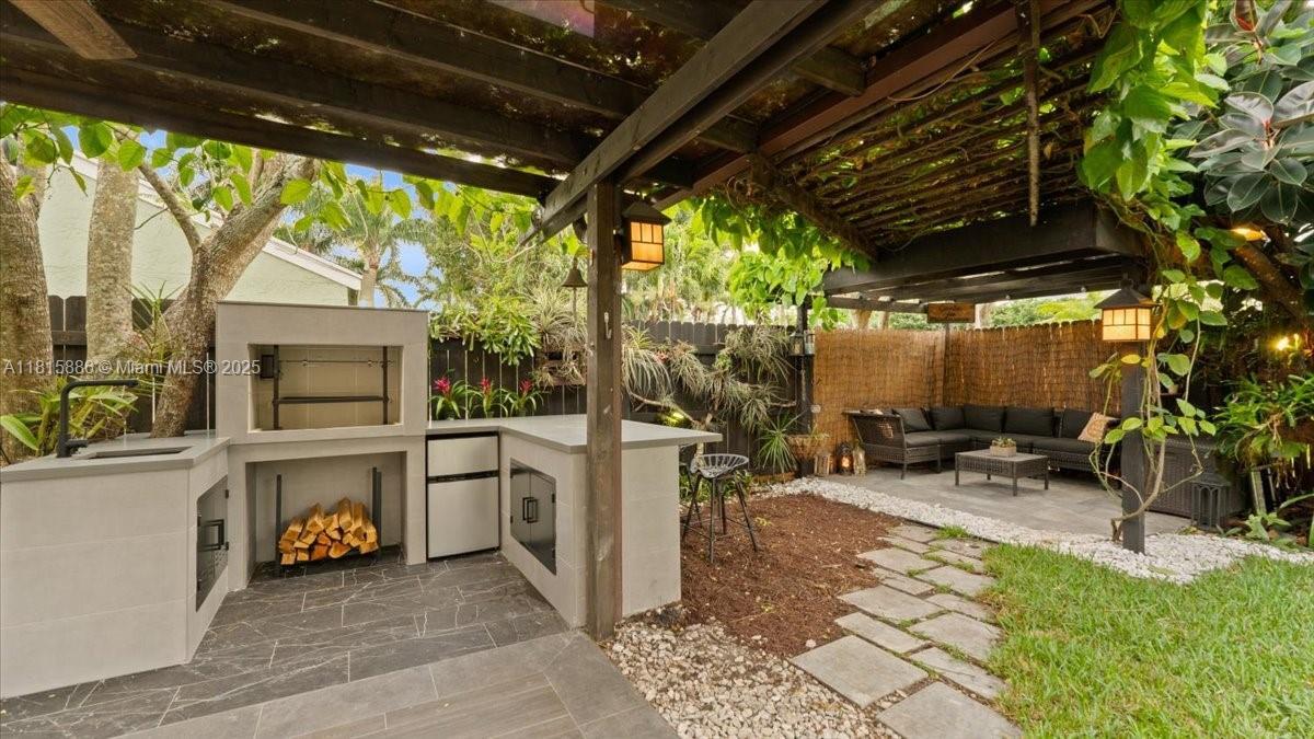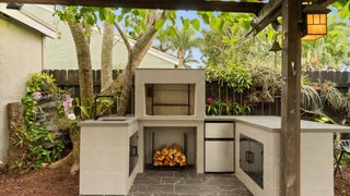 This recently updated single-family home offers 3 bedroom, 2.5 bathrooms, and a spacious office that can be converted into a fourth bedroom. The home features new impact hurricane windows and doors, and a 2-car garage with extra driveway parking. A huge balcony is also connected to a new outdoor kitchen, with a workstation sink, a coal barbecue with a rotisserie grill system, and a bar. Fire pit area, large west-facing completely fenced-in. This private backyard includes mature trees and fruit trees around the entire property. The backyard also includes a charming pergola, waterfall fountain, and one more covered space. Located in Boca Landings, low HOA fee, and residents can enjoy access to community amenities that feature a pool, playground, racquetball, pickleball, and tennis courts .