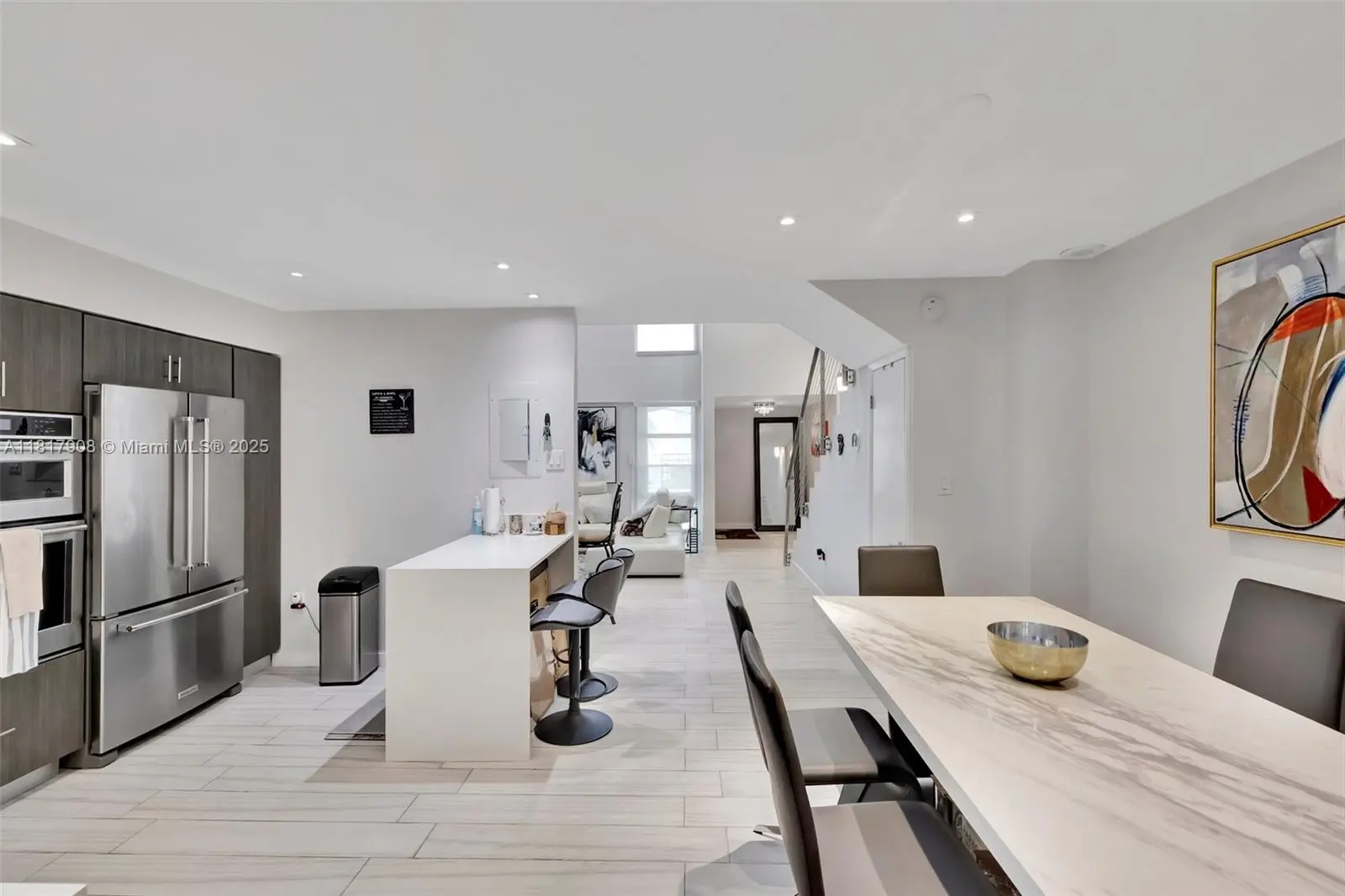 Discover the charm of this remodeled two-story townhouse in a gated community in Aventura. Step into a warm & inviting layout, flooded with natural light thanks to a double-height ceiling & large windows, a modern kitchen boasting sleek cabinetry, quartz countertops & SS appliances, a bedroom downstairs also ideal as a home office, tile floors & led lighting throughout, new A/C & full size washer/dryer. Upstairs leads to a spacious primary suite with a en suite bath & a huge custom-made walking closet. The outdoor enclosed patio is perfect for entertaining & BBQing. Nested in a private courtyard of only 22 townhouses located in a hi-rise complex, provides 2 exceptionally deed-covered parking spaces & access to all amenities: 2 pools, tennis courts, shuffleboard, gym & rentable boat slips