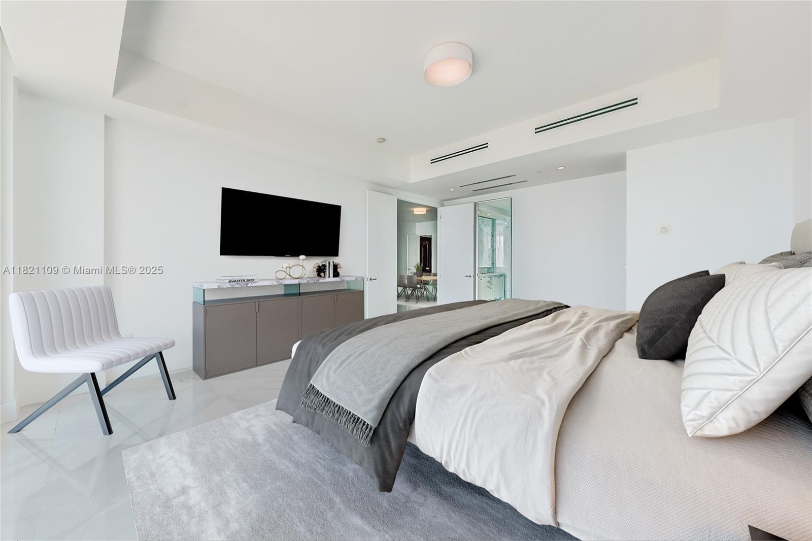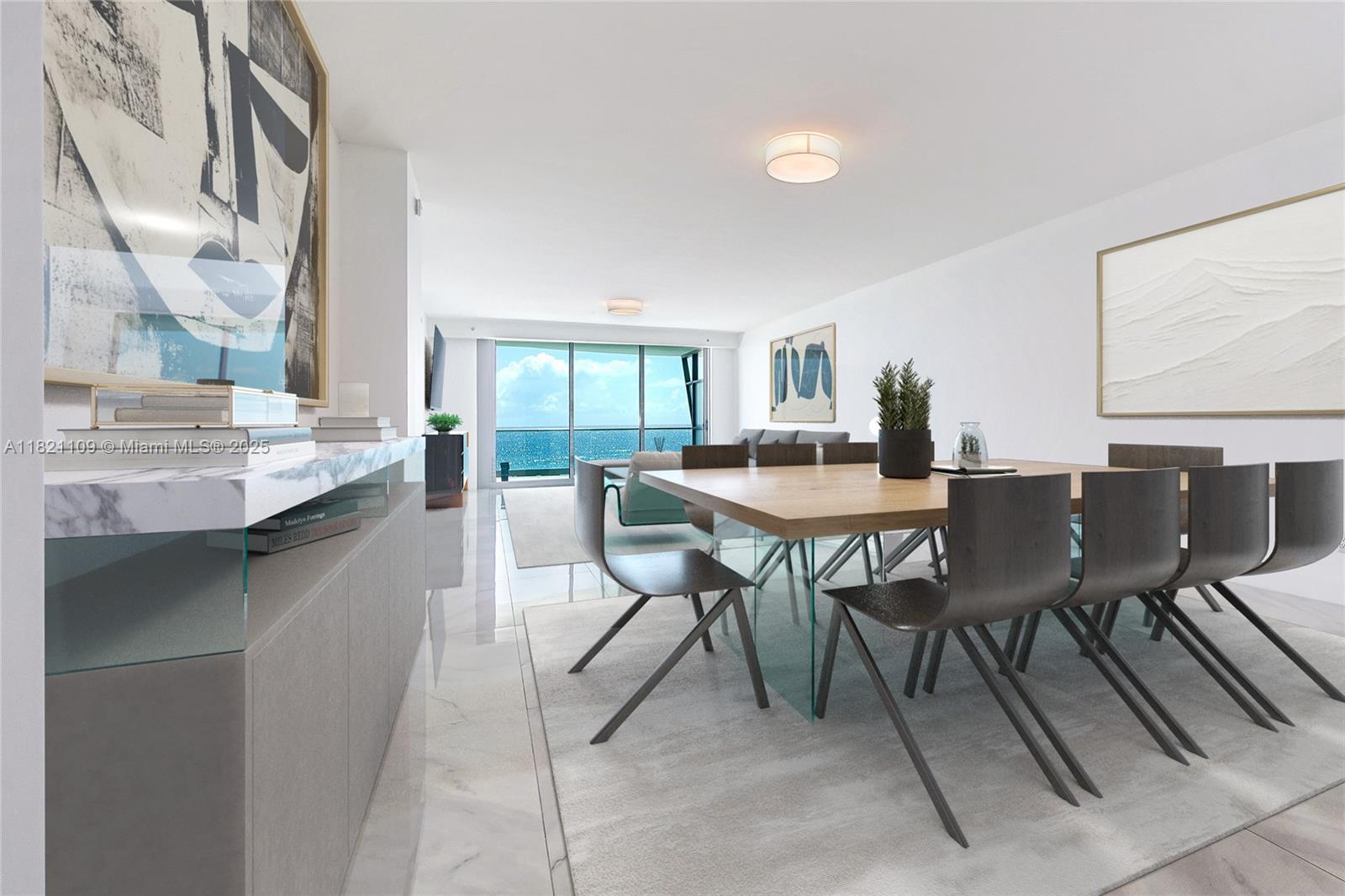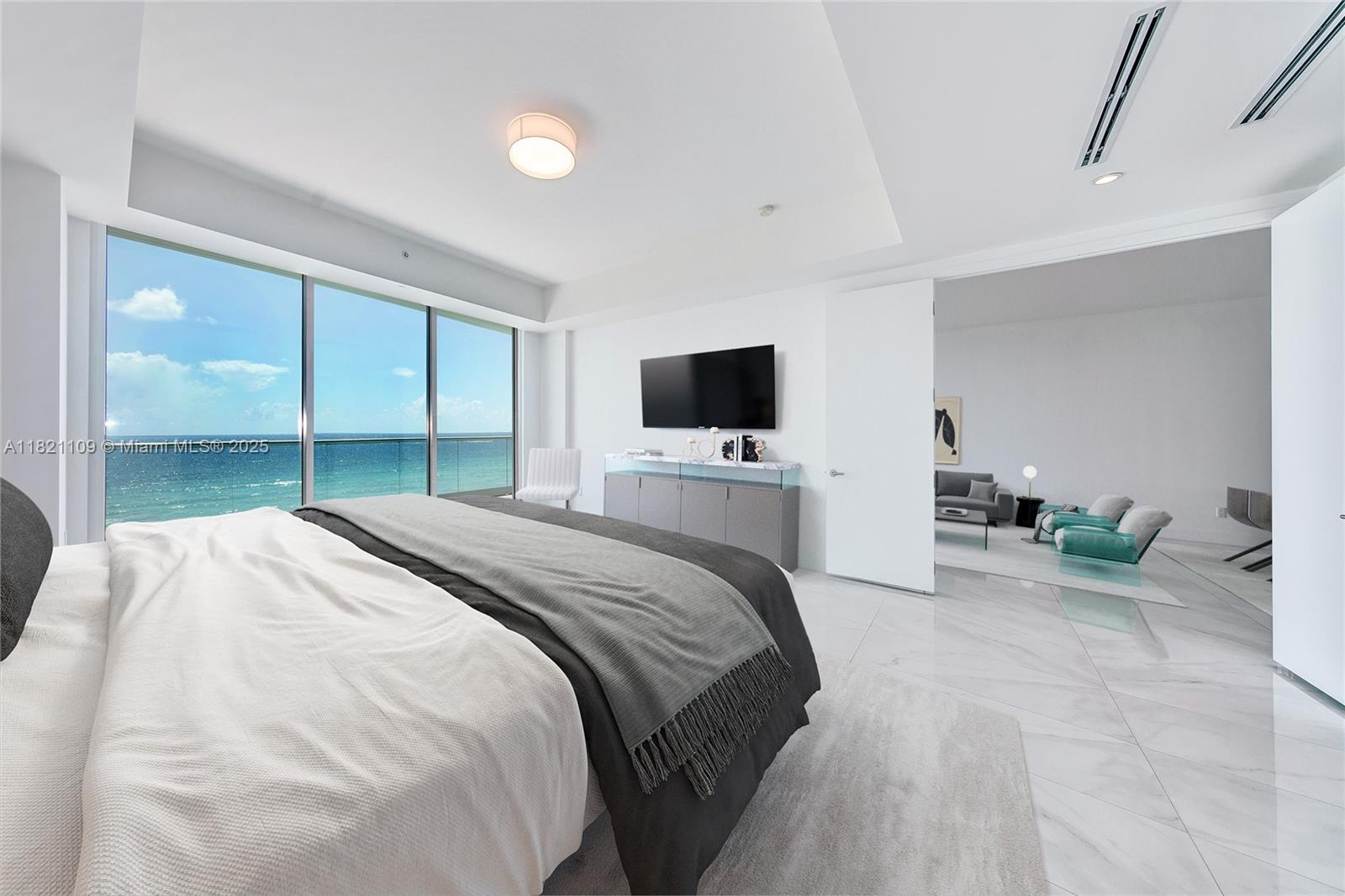 Magnificent beachfront condo at Fendi Chateau with direct ocean & city views from this stunning floor-through unit. This unit has 4 bedrooms and 4.5 bathrooms. Gaggenau appliances with an eat-in kitchen, Fendi cabinetry, and two spacious balconies to relax or entertain. Private elevator and foyer. Indoor amenities include luxury concierge services by Fendi Chateau, a library area, a business center, a private cinema, and a kids' club. Fitness center overlooking the ocean. Spa with an indoor thermal pool. 2 swimming pools and pool access. Private restaurant for residents only. Residents enjoy the proximity to Bal Harbour Shops, 3 blocks away. Ready September 1st, 2025