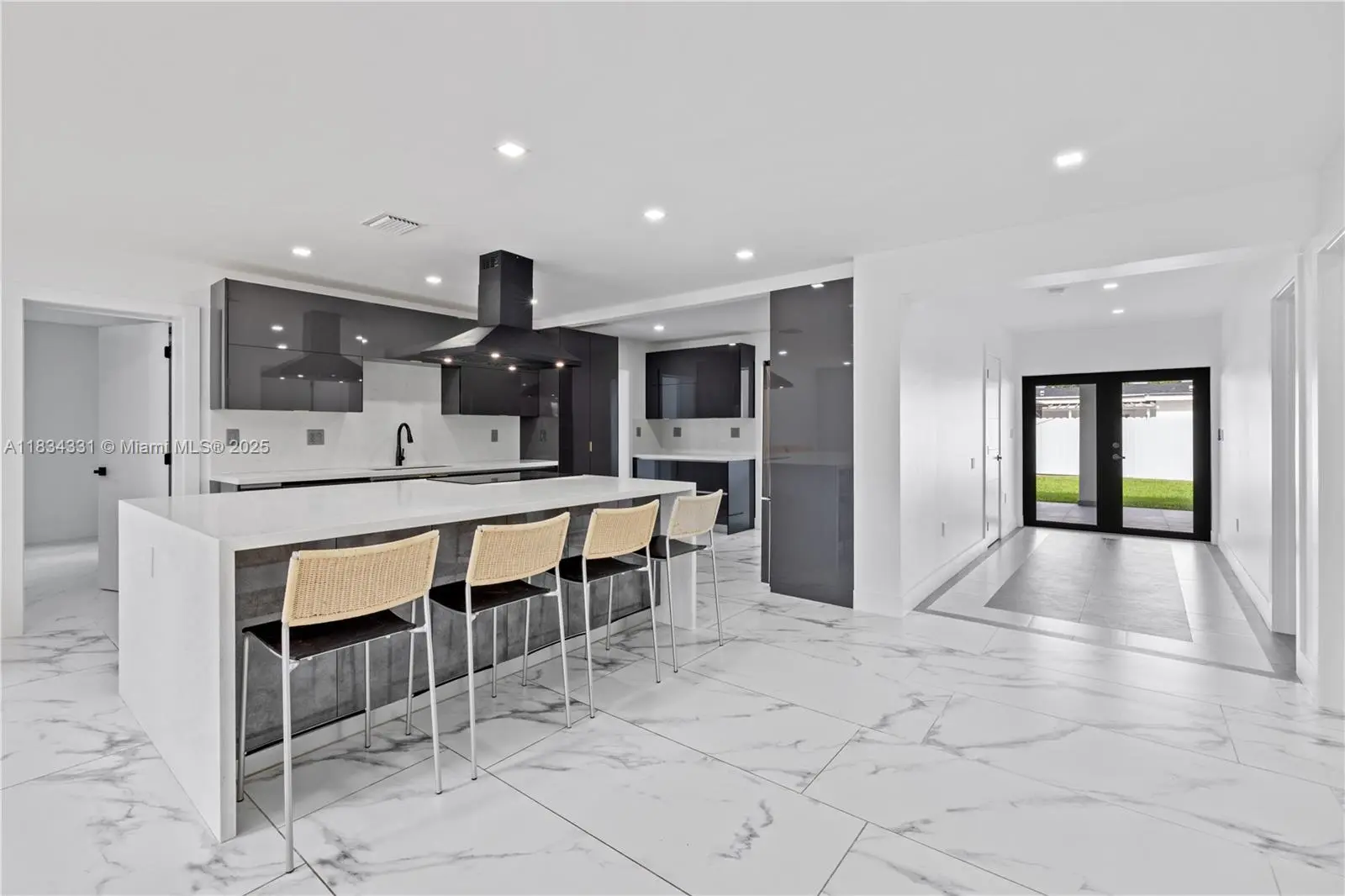 NEW CONSTRUCTION. 4-BR, 3.5-bath LUXURY - COMPLETE GUT RENOVATION WITH FINEST MATERIALS; EVERTHING NEW; NOT LIVED IN SINCE CONSTRUCTION COMPLETE; UNDER ROOF ACTUAL SQ. FT 2,841 s.f.; A/C SQ. FT. 2,320 Sq. Ft. Renowned architect Archcube Design. ALL NEW PLUMBING (no cast iron to replace), ALL NEW ELECTRIC; ALL NEW HVAC, HURRICANE WINDOWS/DOORS; two new high-efficiency AC systems; MASSIVE CHEF KITCHEN W/ HUGE ISLAND; CUSTOM MADE ITALIAN-STYLE CABINETS. MASSIVE MASTER BR SUITE; Ensuite Bathrooms; Elegant porcelain floors inside and natural slate outside, HUGE COVERED & TILED PATIO 344 S.F. (enclosable with permit); NATURAL SLATE WALKWAY; fenced yard. NO HOA. At $300 per s.f. for NEW NEW QUALITY construction, THIS PROPERTY IS A STEAL FOR NEW CONSTRUCTION