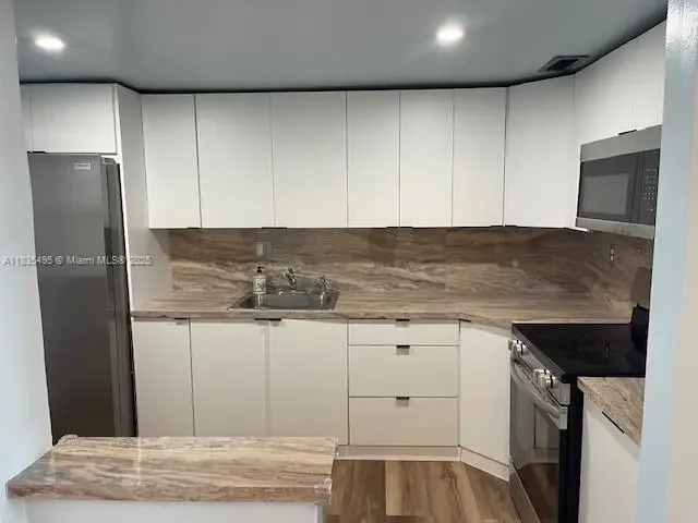 This bright and spacious 2-bedroom, 2-bathroom corner unit is located on the top floor, offering privacy and peaceful living. The thoughtfully designed split-bedroom layout features walk-in closets in both bedrooms, ideal for added storage and comfort. Enjoy brand-new floors and modern appliances throughout. One assigned parking space is included, along with plenty of guest parking. The well-maintained, gated building features a secure entrance and surveillance cameras for added peace of mind. Maintenance fees include reserves. Nestled in a quiet residential neighborhood near Barry University, with convenient access to I-95 and Biscayne Blvd—this home combines comfort, security, and accessibility.