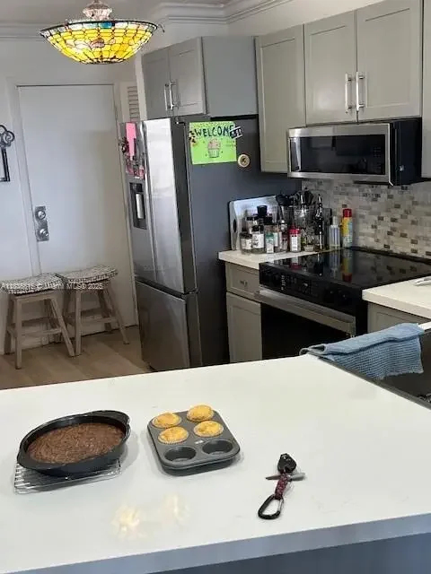 Welcome to this beautifully remodeled 2-bedroom, 1.5-bath condo on the top floor of the sought-after Jade Gardens community. This stunning residence has been completely updated with modern finishes and thoughtful touches throughout. Step into a bright, open-concept living & dining area with stylish new flooring, fresh paint & abundant natural light. The fully renovated kitchen features sleek cabinetry, quartz counters, stainless steel appliances, & a contemporary backsplash. Spacious Master bedroom and the second bedroom can easily serve as a guest room or home office. Both bathrooms have been tastefully updated with modern vanities, new tile, and fixtures, including a half-bath conveniently located for guests. Tranquil views from the top floor. Jade Gardens is a well-maintained community.