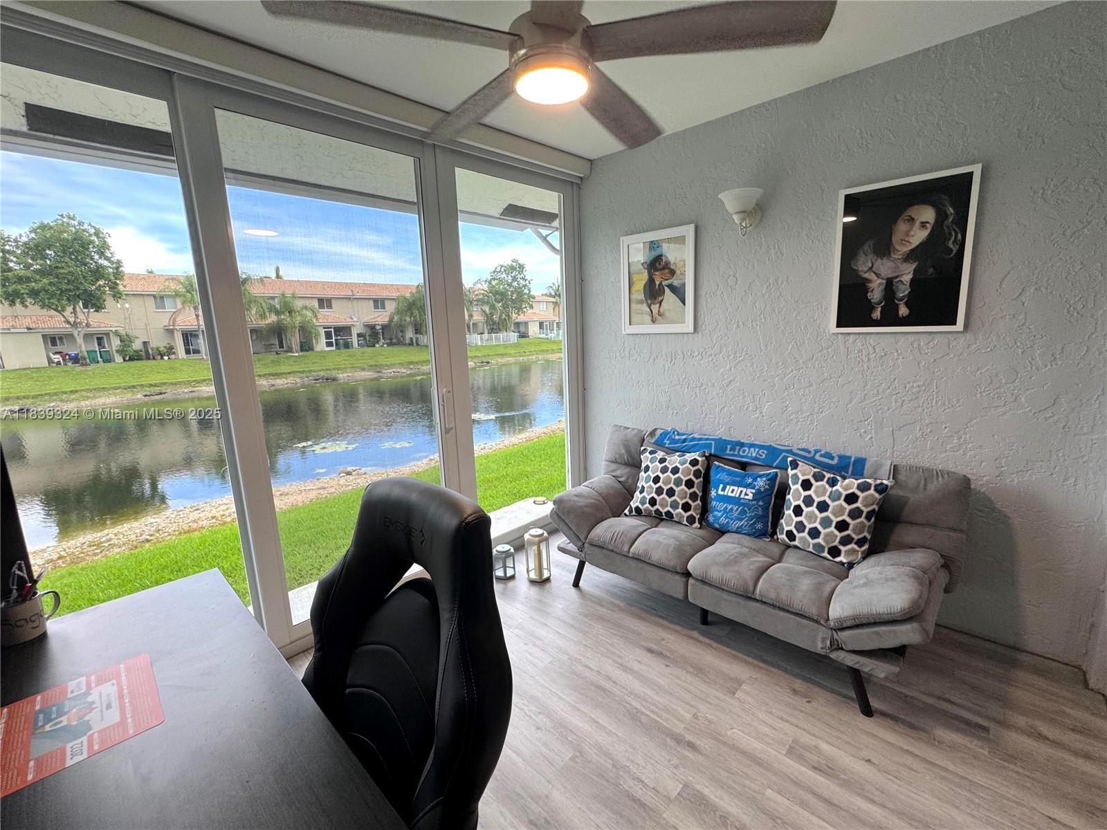 Welcome to this beautiful, fully updated 2-bedroom, 2-bathroom waterfront VILLA with office/additional living area, attached garage, impact glass and plantation shutters throughout, large front screen patio, washer/dryer, electrical system is wired for generator hook-up. This beautiful property features a spacious open floor plan with cathedral ceilings, great for entertaining, modern kitchen with stainless steel appliances, Brand New roof (2 months old) A Rated School District, walking distance to Challenger Elementary and Millennium 6-12. Conveniently located near shopping, dining, and parks, sawgrass expressway, All ages welcome, pet friendly desirable community. LOW $255 MONTHLY HOA includes Lawn, sprinklers, pool, lawn pest control , exterior maintence/paint