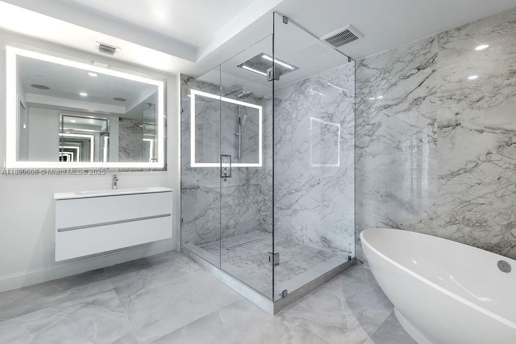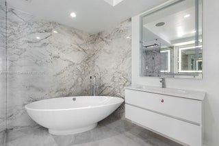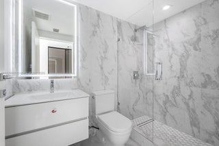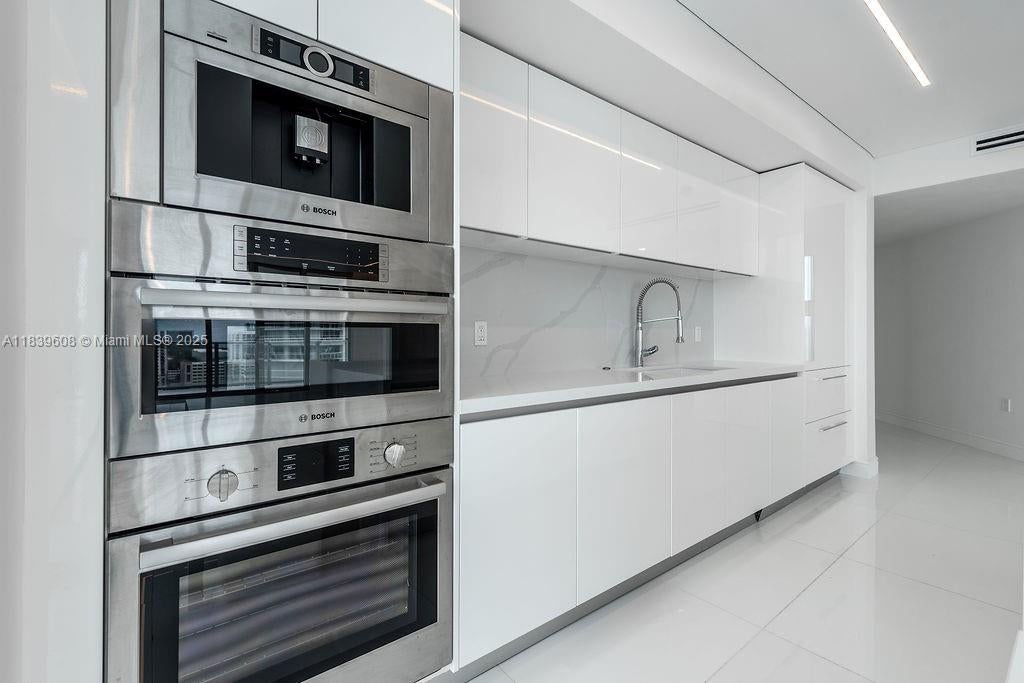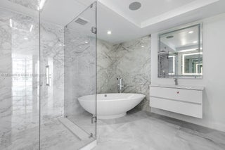 Luxury 3/3 Apartment with Exclusive Finishes This high-end apartment features glass-ceramic flooring, used only in penthouses of the building, and a stunning Dekton Arga feature wall. The kitchen and island are finished in premium porcelain stoneware, complemented by a SUBZERO stove. Enjoy a sleek custom Velum ceiling system with built-in lighting, and Italian designer doors and glass partitions by DoorArreda throughout. The master bathroom boasts a wellness shower and floor-mounted tub filler by Aquabrass, luxurious Dekton finishes, and a Villeroy & Boch vanity. Both master and guest bathrooms are equipped with TOTO smart toilets and have unique, upscale finishes not provided originally.A perfect blend of innovation, elegance, and quality.