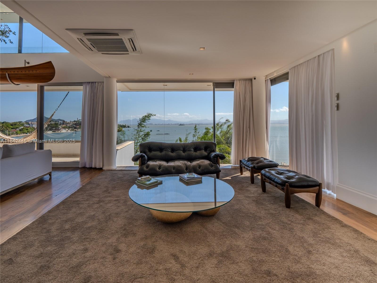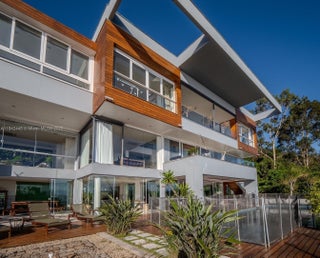 Wonderful luxury mansion in Brazil with three levels and permanent sea view, in a gated community in Cacupé, Florianópolis. Modern architectural design with spacious rooms, 6 suites, club area with barbecue, heated infinity pool, spa, sauna, panoramic elevator, two gyms and exclusive finishing items. Condominium with nautical club with fixed pier with floating deck, helipad, camera monitoring and 24-hour armed concierge, tennis court, forest, trails, gazebo and orchid garden
