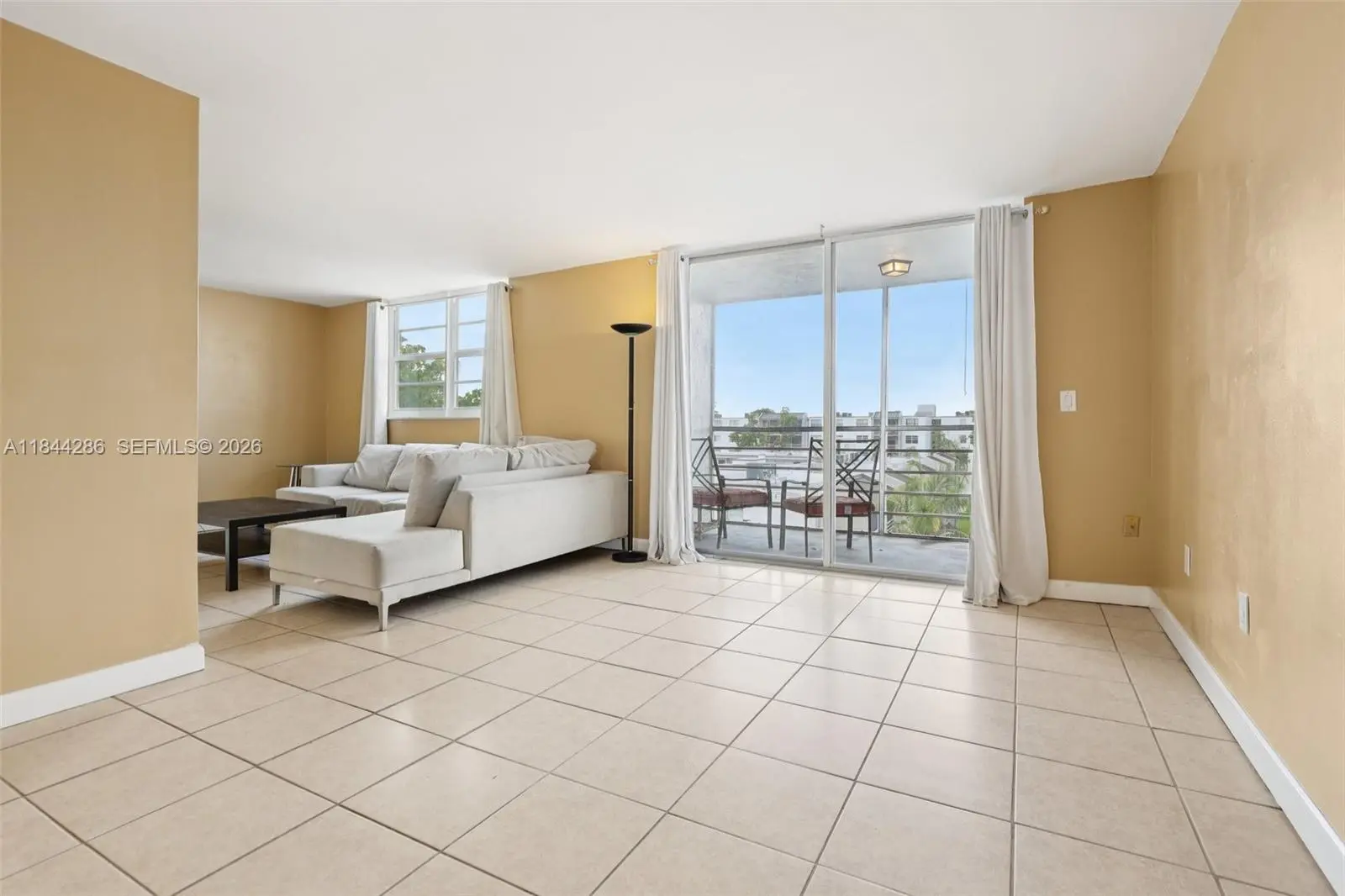 HOA WITH RESERVES!!! 40 years certification completed. Corner largest layout in the building with no neighbors on one side or upstairs. Spacious and bright unit in the heart of Kendall! Featuring 2 bedrooms, 2 bathrooms, walk-in closets, and a flex space with potential for a 3rd bedroom. Less than 1 year old stainless steel kitchen appliances. Partially impact windows. Abundant natural light throughout. The unit offers a private balcony and is steps away from resort-style amenities, including a clubhouse, tennis and basketball court, two pools, a gym, and a playground. Elevator available. It features 1 assigned parking space and 1 decal for an extra car, plenty of visitor parking spaces. Unbeatable location near the Turnpike, top-rated schools, and shopping. Vacant now. Easy to show.