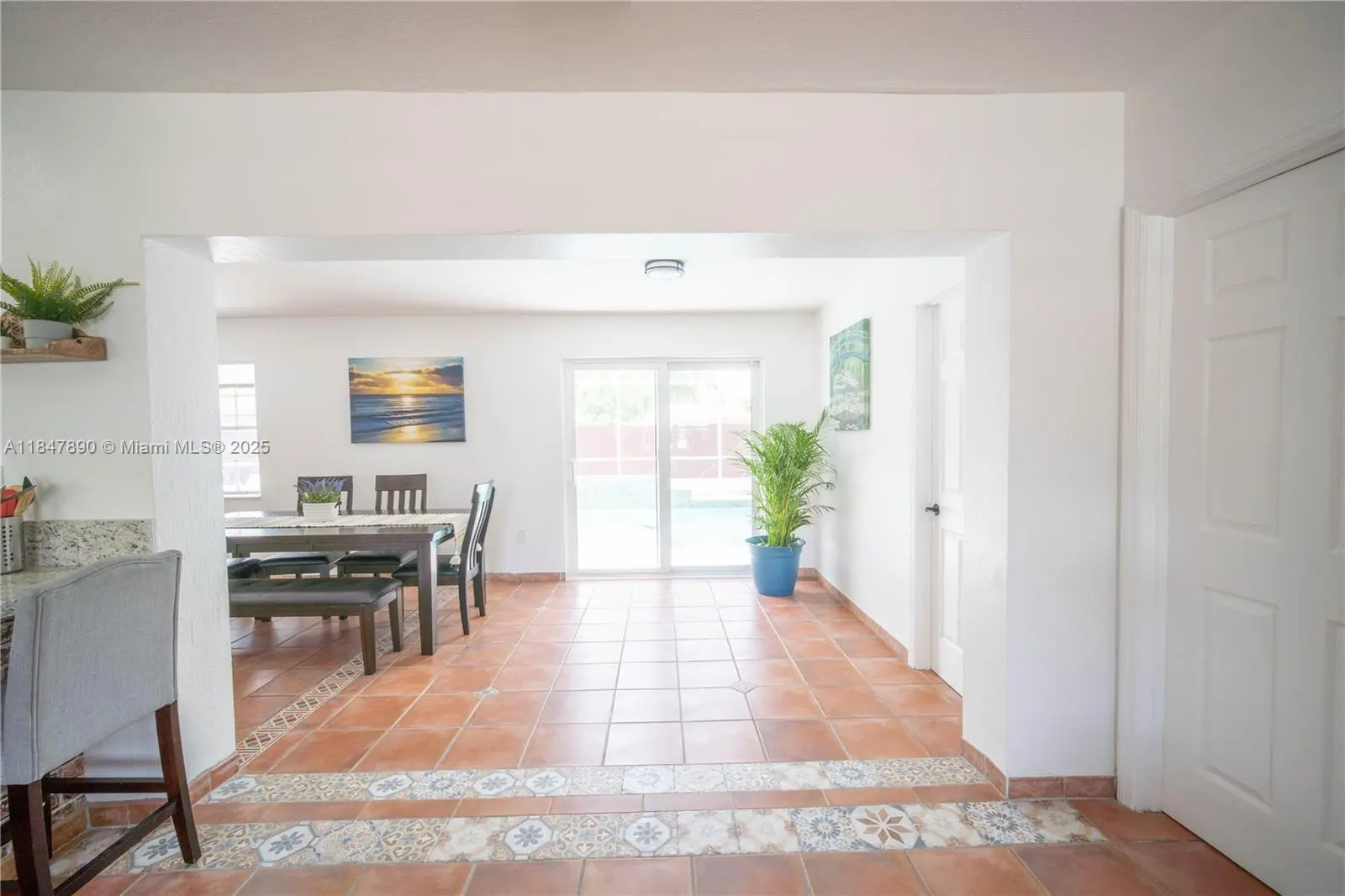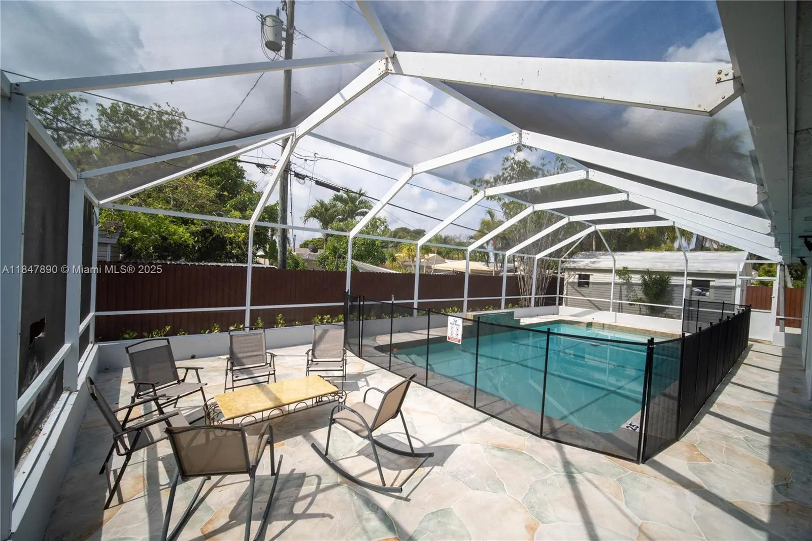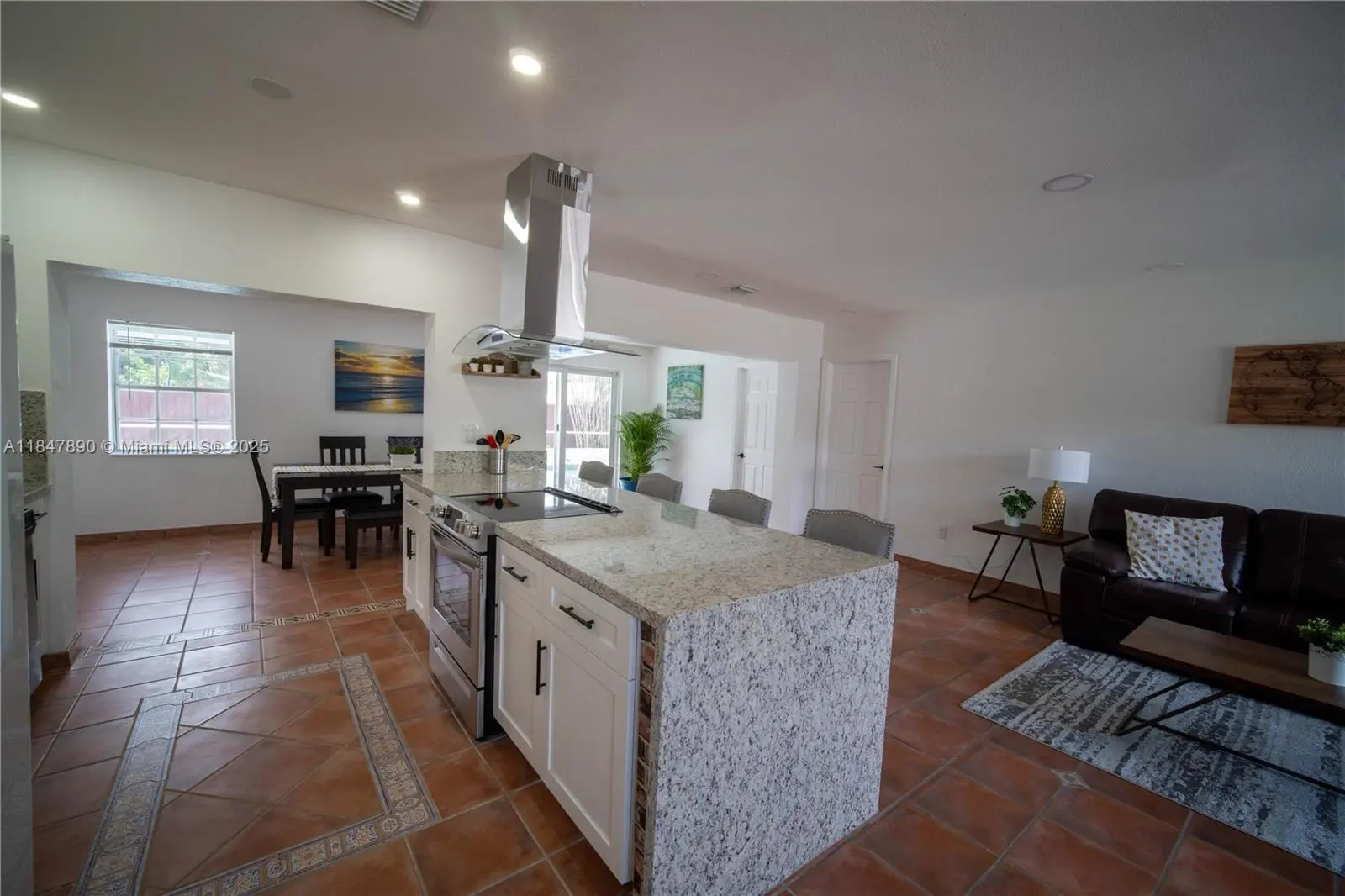 Cutler Bay Pool home. Over 2000 square feet featuring 4 generously sized bedrooms and 2 full bathrooms, split plan. Fully tiled. Partial impact windows and doors. Includes open floor plan, remodeled eat in kitchen with granite waterfall counter top and stainless steel appliances, large famiy room, dining area, living room and laundry. Property is fenced and child gate around pool. Large yard and ample parking space. Side area with concrete ready for small boat, RV, trailer. No Hoa. Close to Old Cutler Road. Minutes from Black Point Marina, local shops, schools, parks and restaurants. Golf cart town.