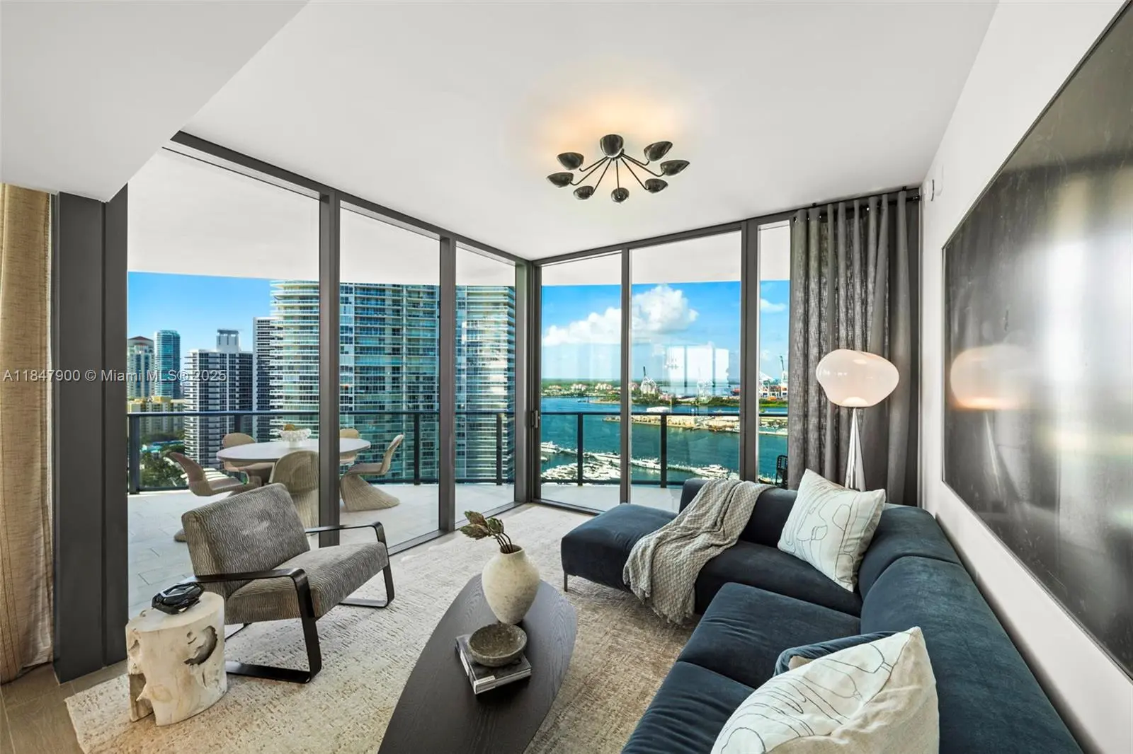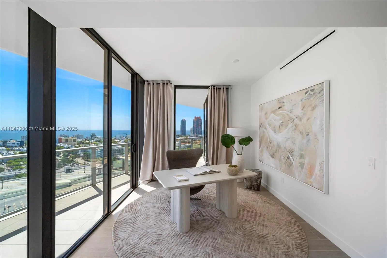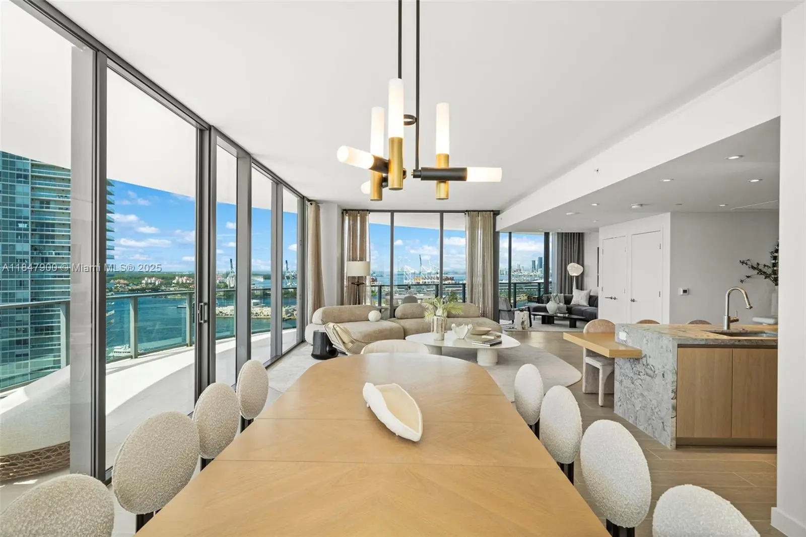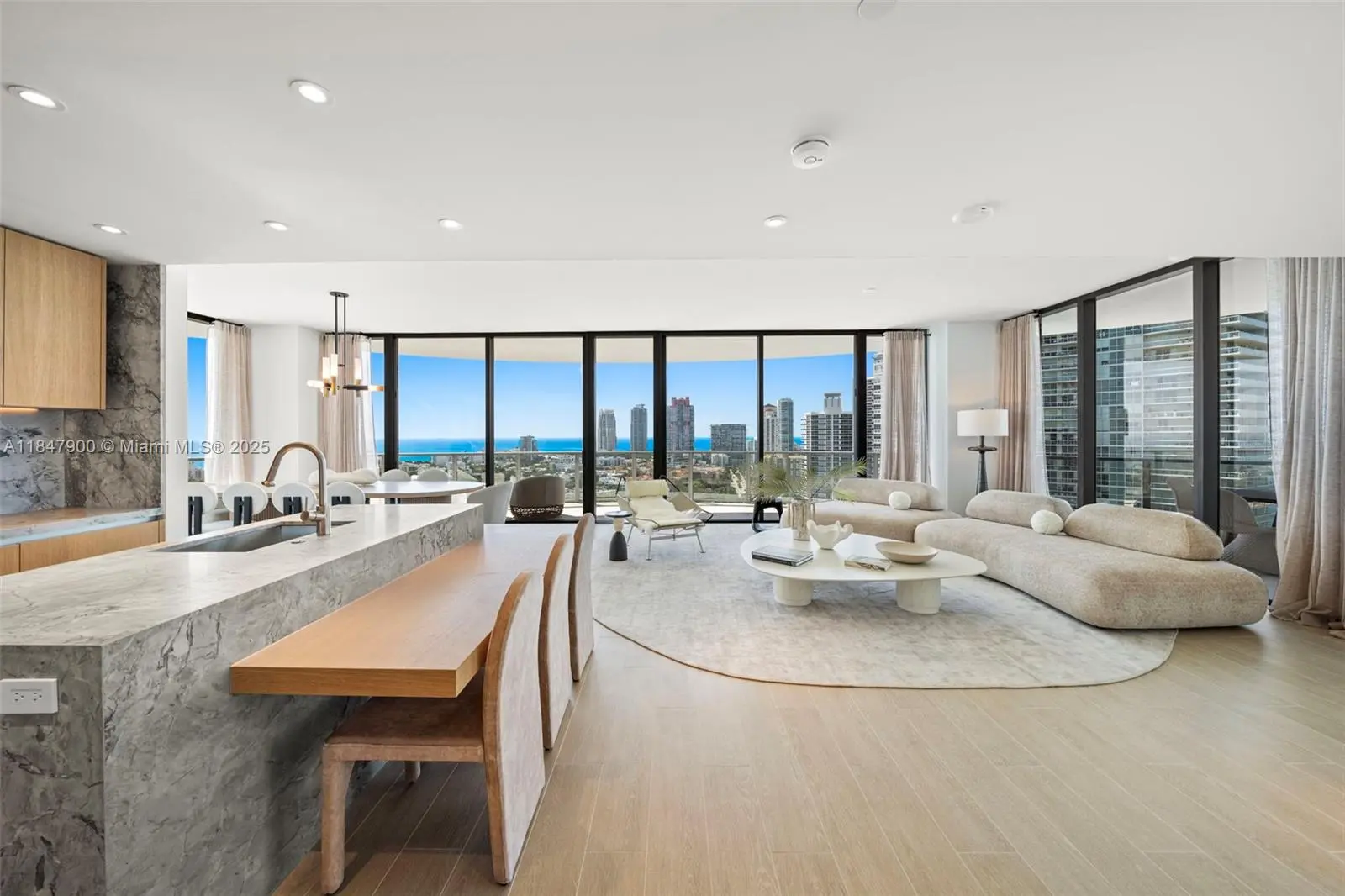 Expansive 4-bed, 5-bath residence offers 3,521 sq ft of interior space and sweeping South /East /West exposures for all-day sunlight and panoramic views of the Ocean, city skyline, and Bay. Floor-to-ceiling windows open onto 1,183 sq ft of wraparound terrace perfect for outdoor entertaining or quiet reflection above South Beach. The open-concept living spaces flow seamlessly into a kitchen equipped with Gaggenau appliances, white oak cabinetry and quartzite countertops. The primary suite is a serene retreat with its own sitting area, walk-in closets, and marble bath. Five Park is the newest addition to the Miami Beach luxury condo offering. Its residents enjoy access to world-class services and amenities, including two pools, a state of the art gym and spa, and a private beach club.