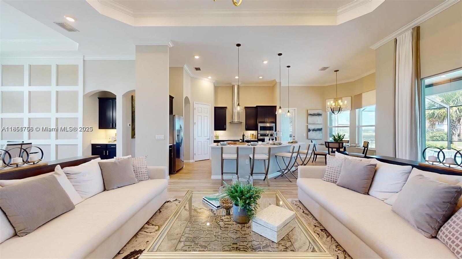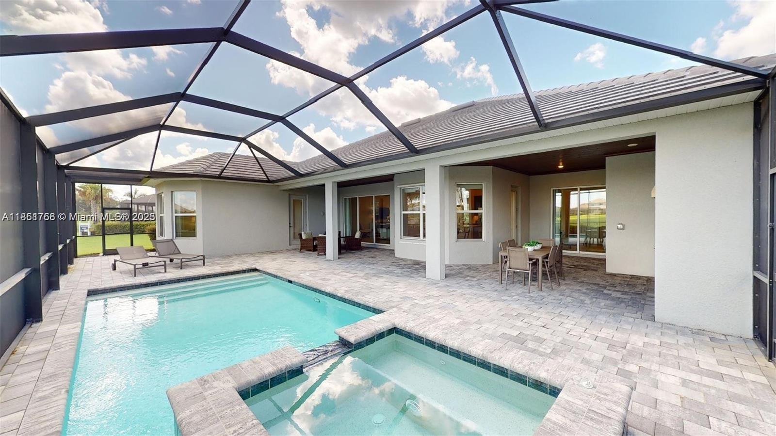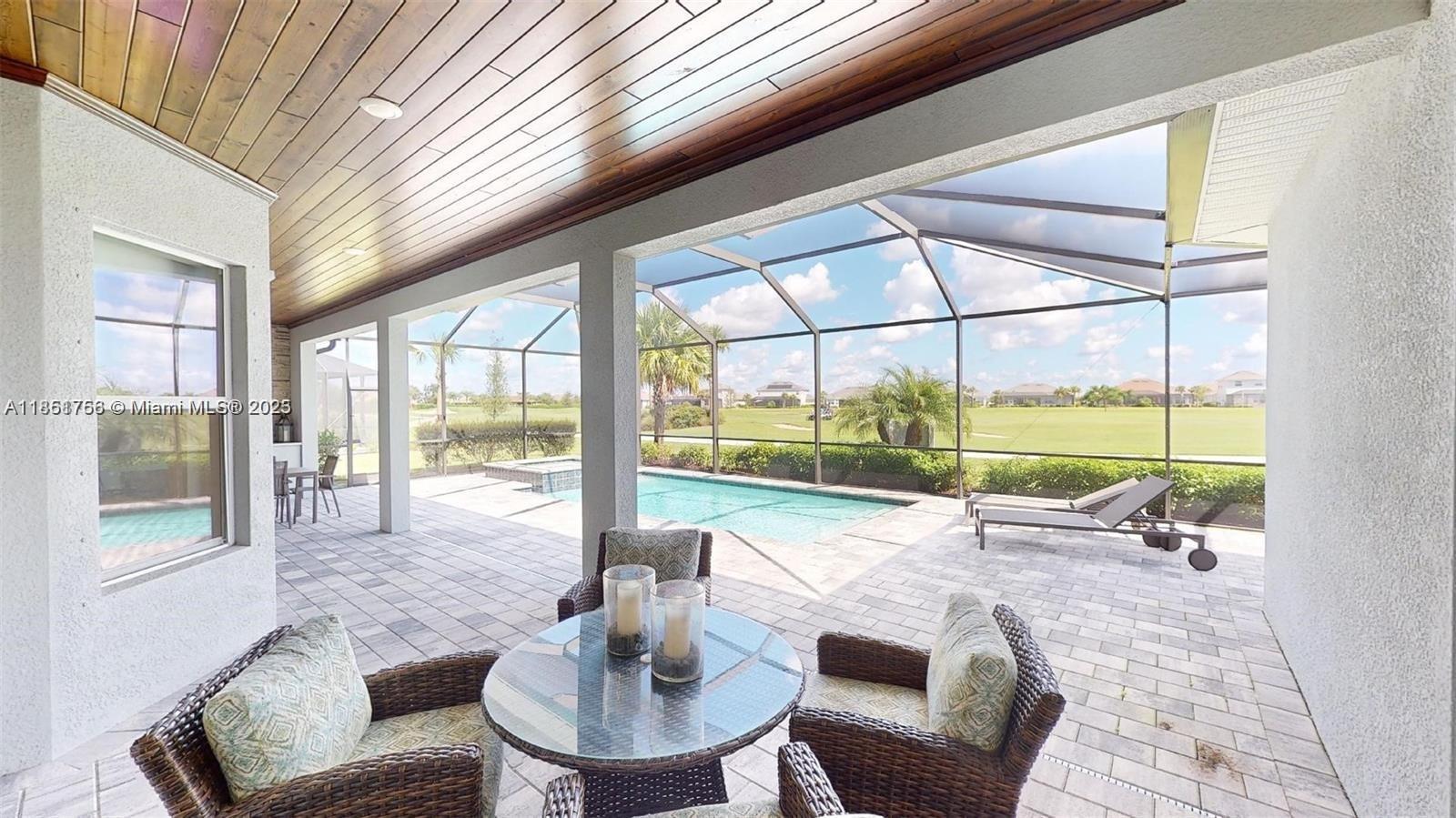 This stunning home boasts panoramic views of the lake and golf course. The meticulously maintained property offers 3 spacious bedrooms + study, and 3 full bathrooms. Step outside onto the covered terrace and enjoy ample space, a private pool with a Jacuzzi, and a custom-built grill. This home includes a social membership to the clubhouse, a resort-style pool, a fitness center, restaurants, and much more. Located in the vibrant and growing city of Ave Maria, just minutes from parks, schools, and shopping. Don't miss this opportunity to own a move-in ready home in one of Southwest Florida's most coveted gated communities!