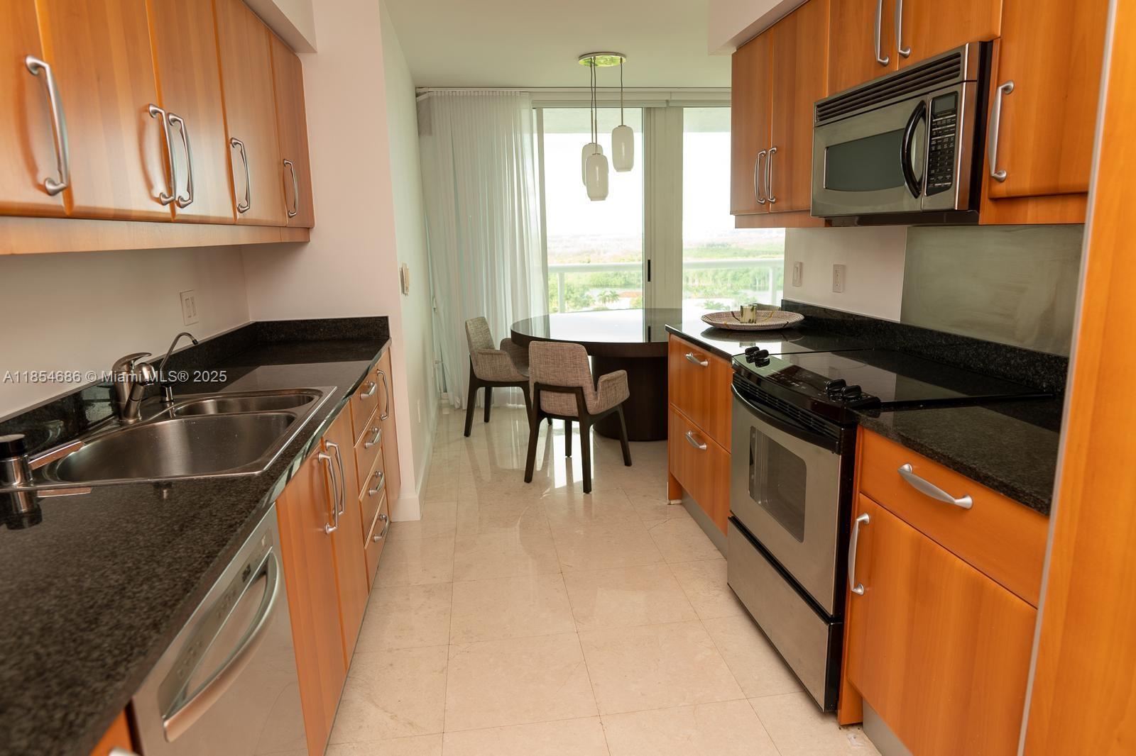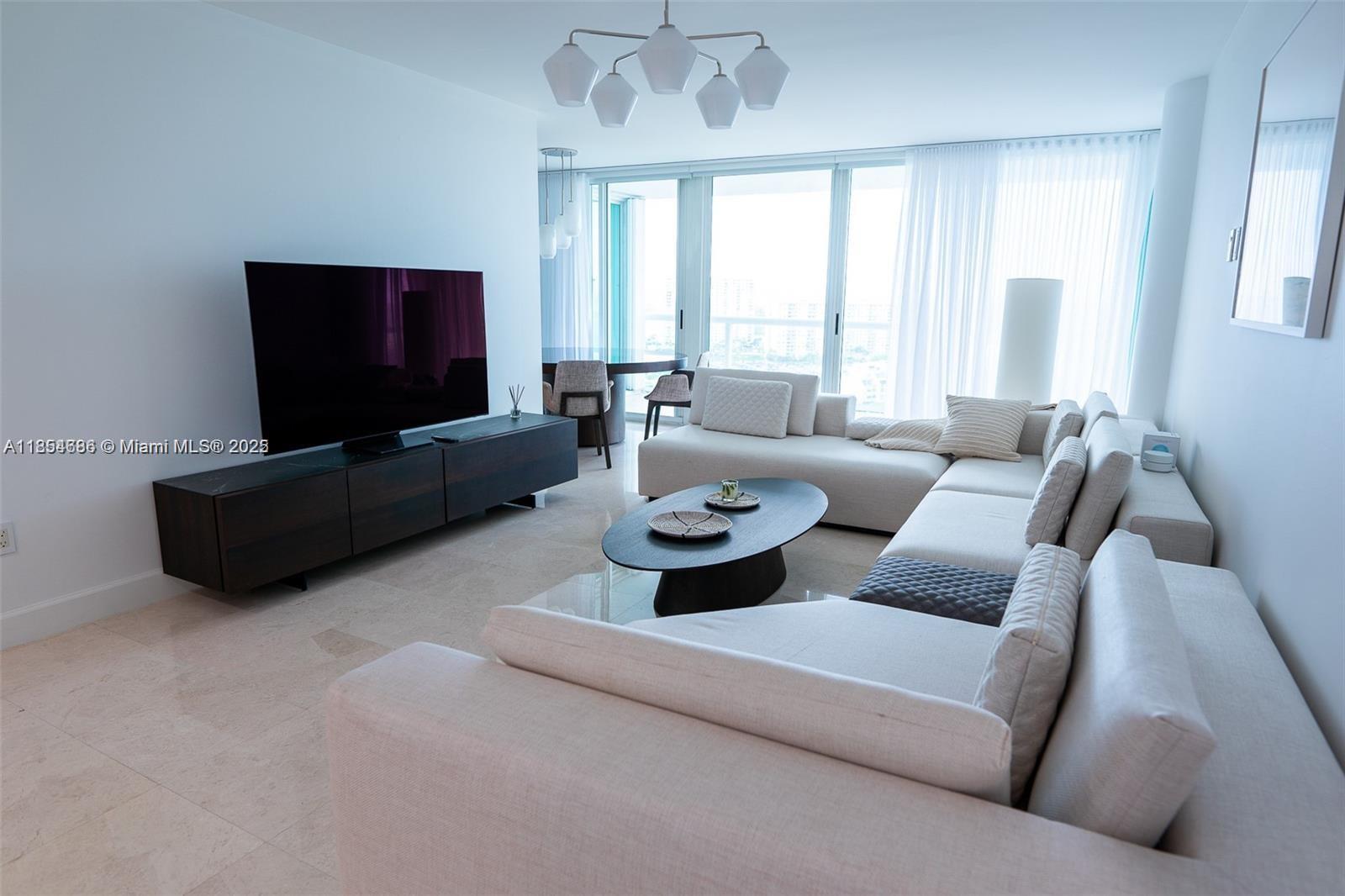 Beautiful high floor residence with outstanding panoramic views. Enjoy sunrise to sunset views from this exposure with a huge wrap around balcony - see the Ocean, intracoastal, Downtown Miami. Residence features freshly painted wall, polished marble floor, granite countertops with stainless steel, breakfast room, guest room with white built in beds and modern closet. Large living room, walk-in closets, marble bath & laundry room. Situated on a private island which offers the convenience of urban seaside living, quick access to Ball Harbour Shops & the Aventura Mall plus access to Sunny Isles & Haulover Beach. Residents enjoy the privileges of the Oceania club with dining, beach service, gym, fitness, spa, tennis and much more. APARTMENT RENTED TILL JULY 31,2026 RENT $4.800 A MONTH