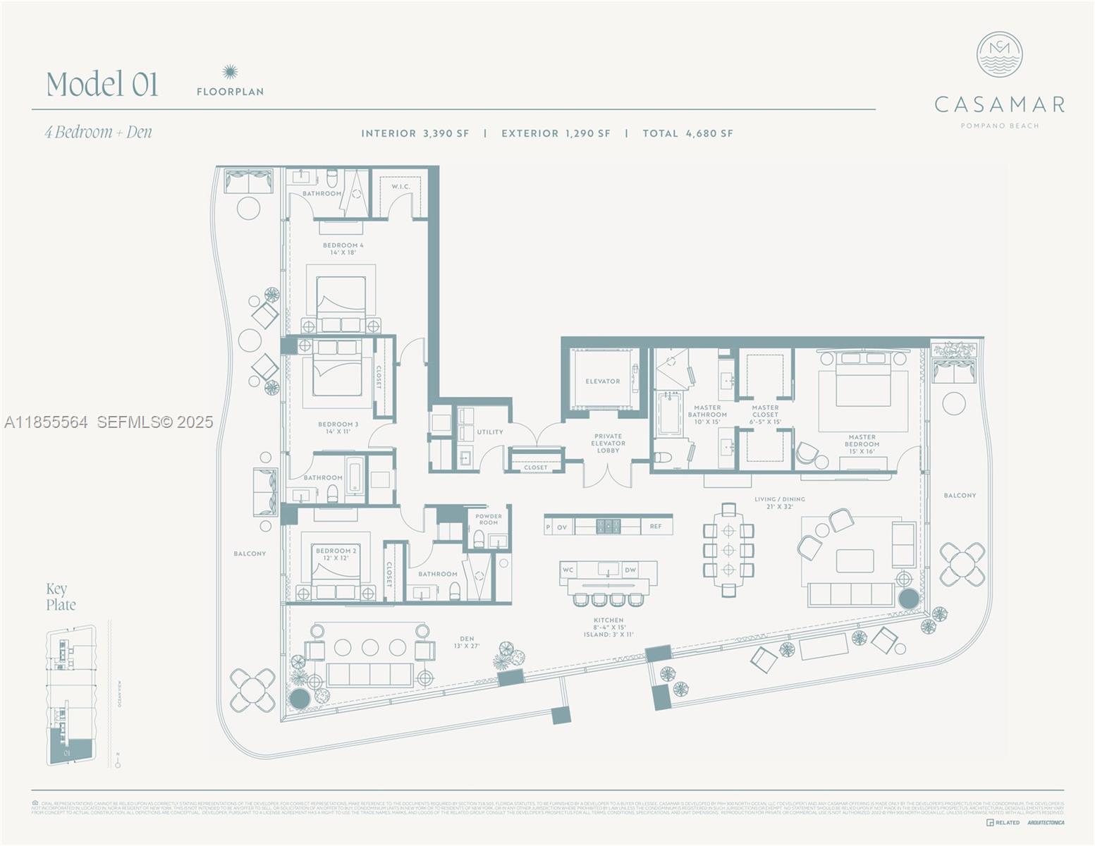 Introducing a truly exceptional 4-bedroom, 4.5-bathroom southeast corner unit on the 8th floor at Casamar, Pompano Beach's newest luxury residence. This remarkable home offers almost 4300 total sqft of sophisticated living space, including nearly 1300 sqft of exterior balcony space, designed for those who seek both elegance and comfort. From the moment you enter, be captivated by the panoramic ocean views through floor-to-ceiling glass. The seamless indoor-outdoor living experience extends to the spacious balconies, perfect for enjoying stunning sunrises and sunsets. Additionally, a west-facing den offers a versatile space bathed in the warm glow of afternoon light. The unit is equipped with two parking spaces, including 1 self-park and boasts 2 storage units for your convenience.