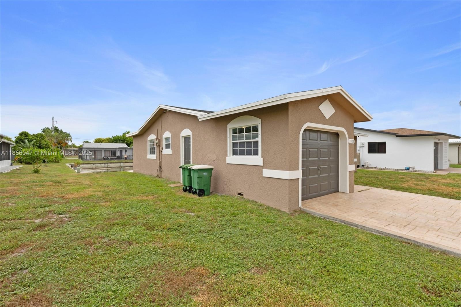 Welcome to a charming 2-bedroom, 2-bathroom home nestled in the vibrant Mainlands of Tamarac. This beautifully maintained residence features a spacious open floor plan with great finishes, including elegant wood-style flooring and a bright, updated kitchen with stainless steel appliances, granite countertops, and ample cabinetry. The inviting living area flows seamlessly into a cozy dining space, perfect for entertaining. Step outside to with a paved driveway and garage, ideal for relaxation or outdoor activities.