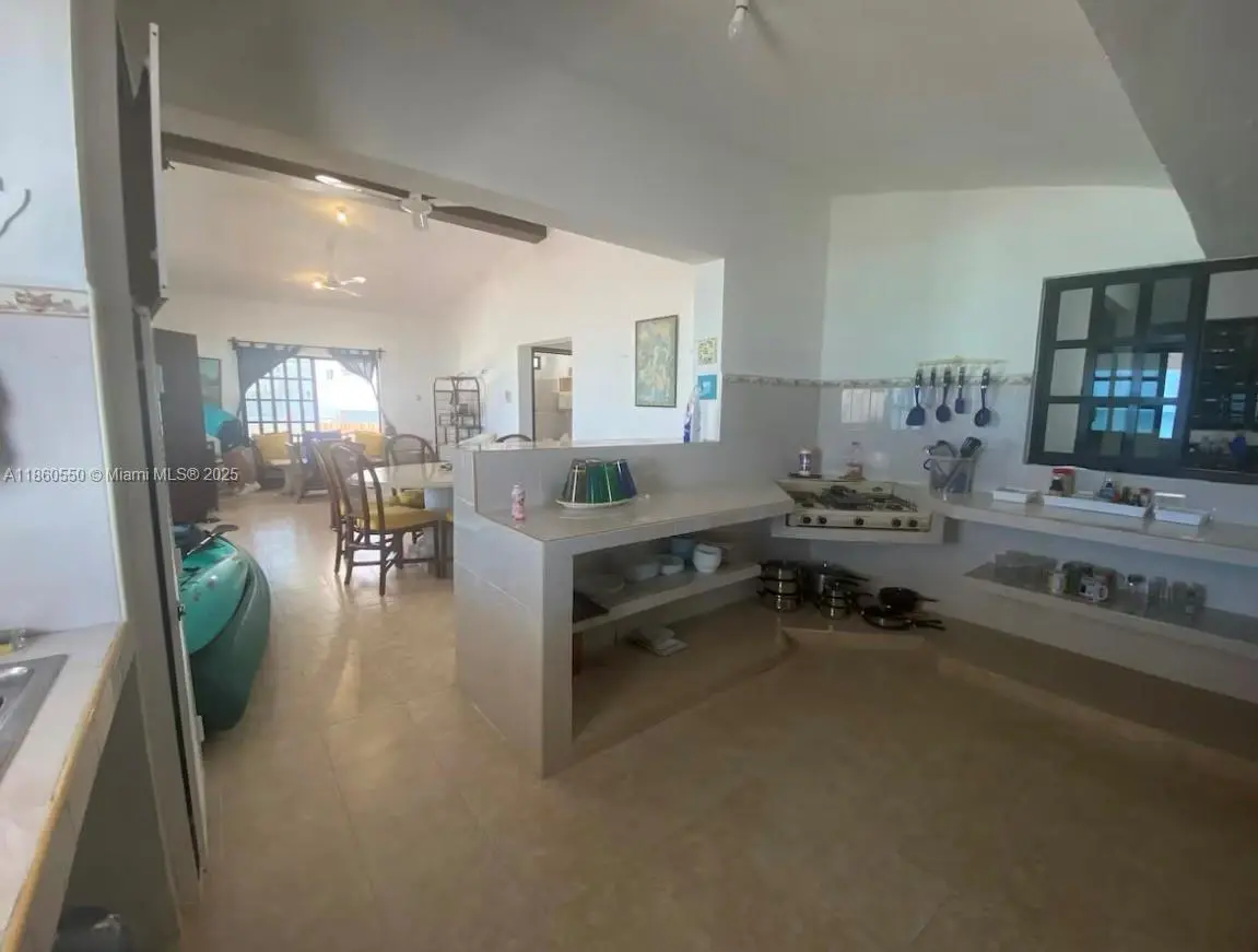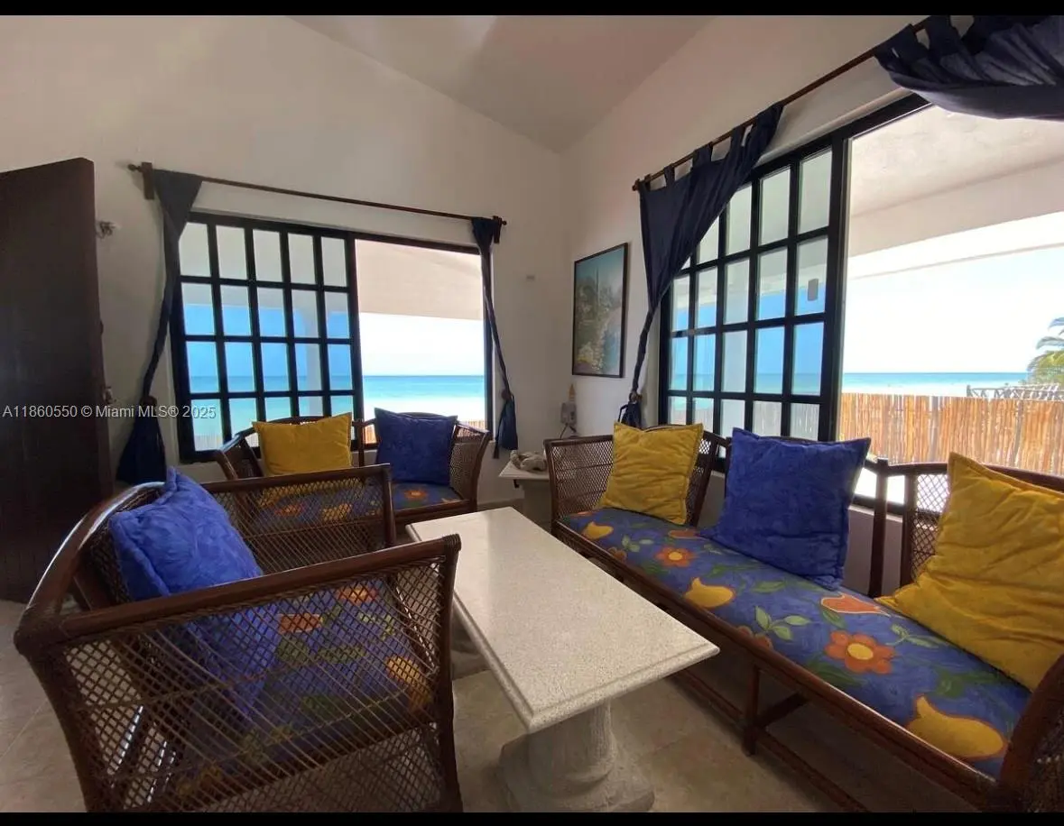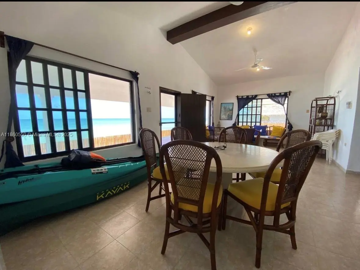 Beautiful ocean front property with stunning ocean views in sought after Telchak in Merida, Mexico. The main level features 3 bedrooms (2 with double beds, 1 with two twin beds), all with A/C, fans, and hammock hooks. The master has an en-suite bath. Spacious living/dining areas, fully equipped kitchen, internet, and large wraparound terrace with pool. You can hear the sound of the ocean from all rooms! Garage for 2 cars plus outdoor parking, outdoor shower, and laundry area. Upstairs is a private apartment with independent entrance, 2 bedrooms with A/C and ocean views, kitchen, and open living/dining space. Home includes kayaks with life vests. Perfect as a family residence or rental investment.
