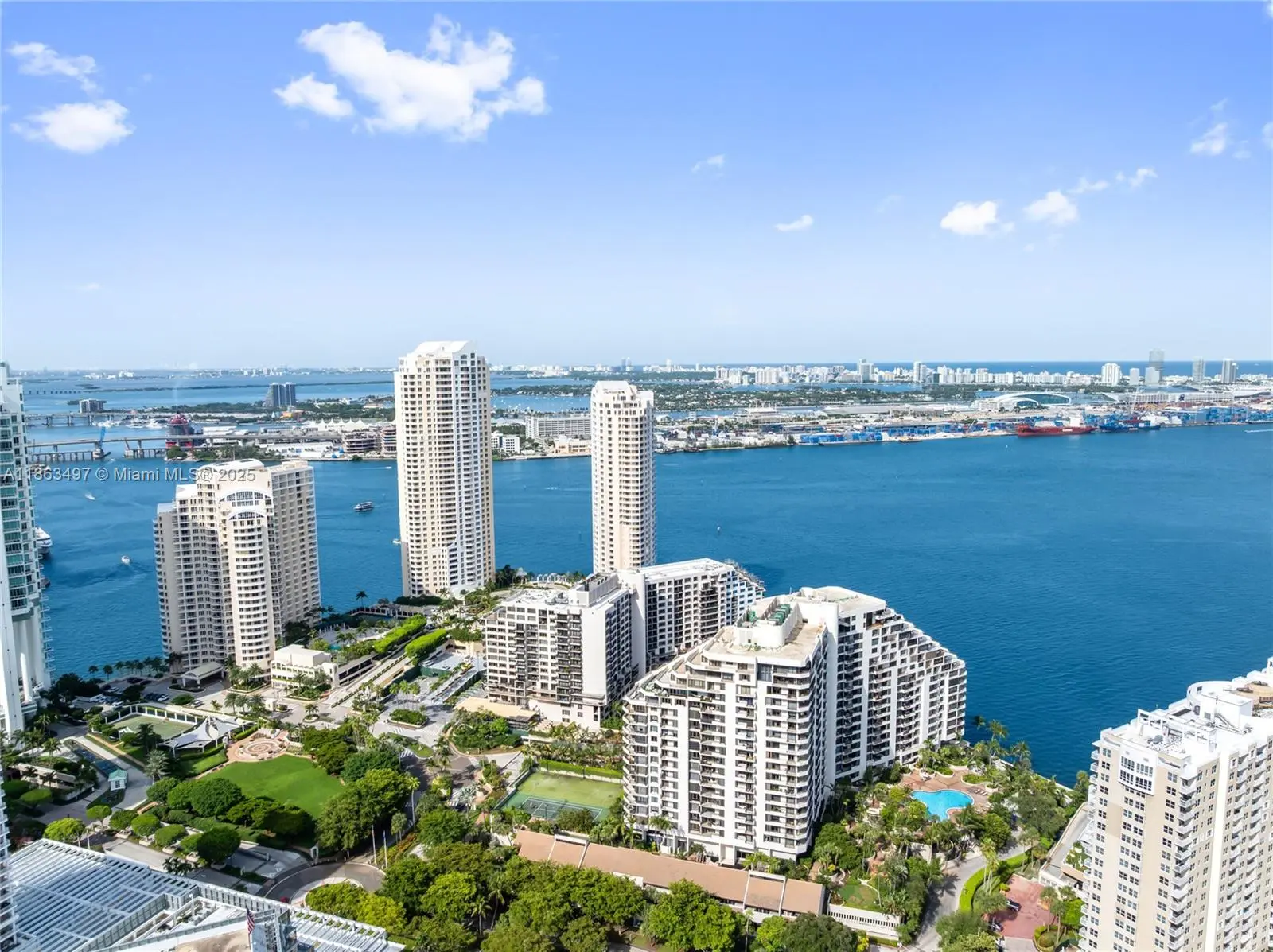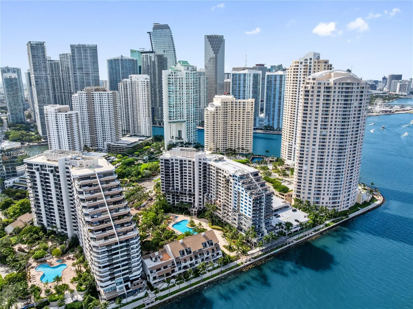 Experience luxury living in this beautifully renovated corner residence at Brickell Key Two, one of Miami’s most sought-after addresses. Spanning approximately 1,200 sq. ft., this light-filled home showcases stunning city and water views from every angle. The interiors feature a designer remodel with wood cabinetry, granite countertops, stainless steel appliances, and a combination of marble and wood flooring. Residents enjoy resort-style amenities and a recently redesigned lobby, all just steps—or a quick trolley ride—from Brickell’s premier shopping and dining destinations. This residence also includes two assigned covered parking spaces. A truly exceptional opportunity in the heart of Brickell Key.