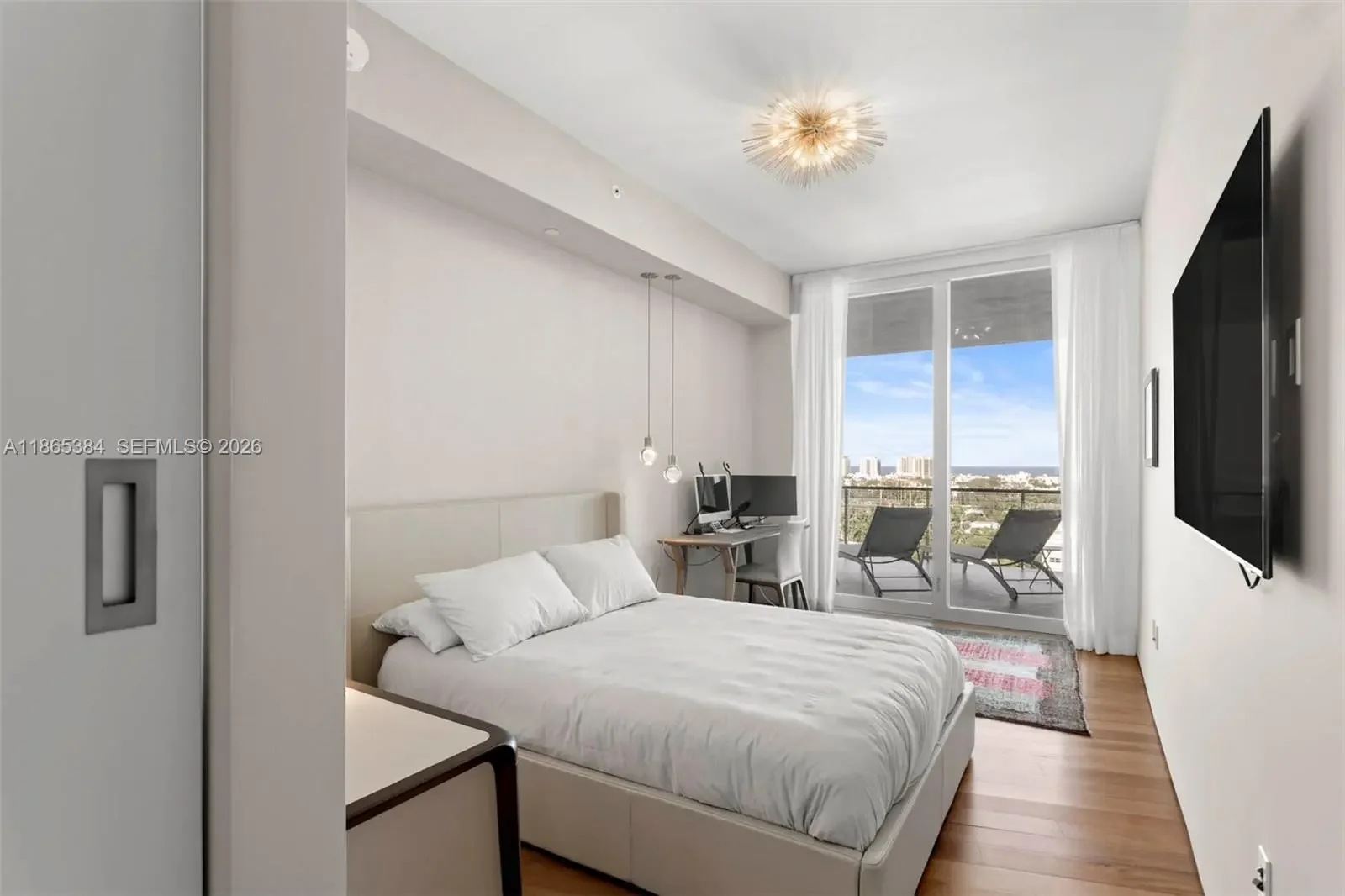 Discover refined living at Monad Terrace, a design-forward building envisioned by acclaimed architect Jean Nouvel. With only 59 residences, this boutique waterfront development offers unmatched privacy, security, and prestige in the heart of South Beach's residential West Avenue enclave. This flow-through 2 bedroom, 2.5 bath residence features two expansive terraces, capturing stunning sunrises over the Atlantic Ocean and breathtaking sunset views across the Miami skyline. The seamless indoor-outdoor layout offers a connection to nature without sacrificing views. Finished with elegant materials, the home includes a flex area, great for a home office. Two parking spaces included. Monad residents enjoy world-class amenities, privacy and service steps away from dining, shops and more.