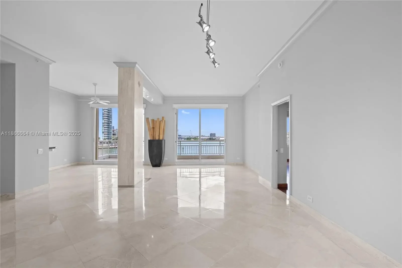 Enjoy a direct water view from this spacious 2-bedroom with a family/den space. Featuring high ceilings, marble floors throughout, and wood floors in the bedrooms. Conveniently, there are 2 parking spaces plus storage on the same floor level as the unit, eliminating the need for elevator use. Amenities abound, including a pool, barbeque area, gym, racquet and squash courts, valet parking, concierge, and 24-hour security.