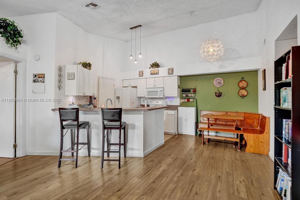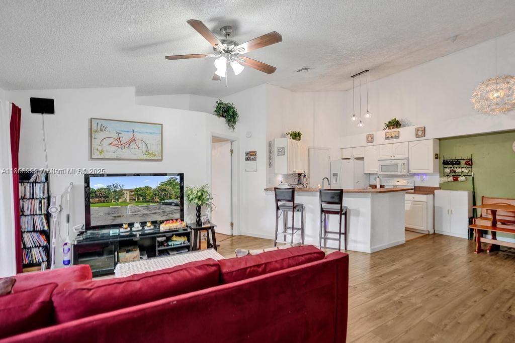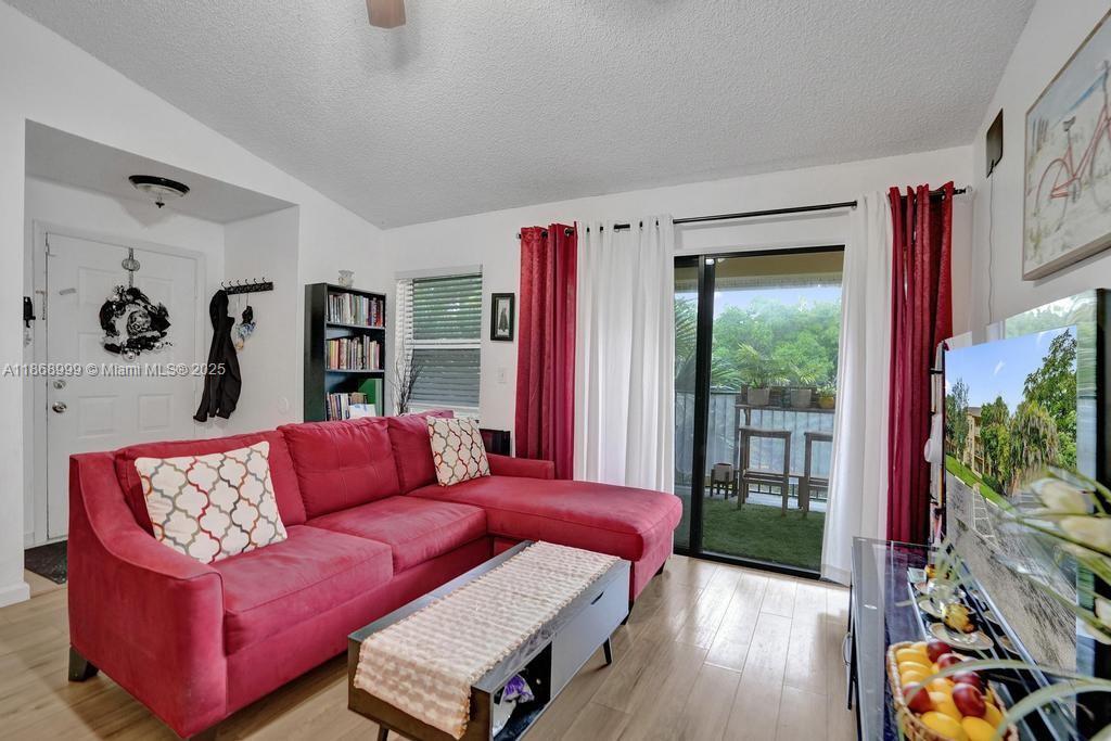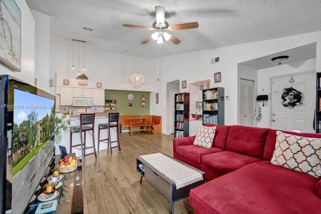 Welcome to this charming 2-bedroom, 2-bathroom condo in the desirable Summerbreeze community, offering a spacious 1,024 sq. ft. of living space. Situated on the THIRD floor, this condo features vaulted ceilings, laminate flooring, and an open floor plan, making it feel bright and airy. The kitchen is equipped with modern appliances including a dishwasher, microwave, refrigerator, and a washer/dryer combo for added convenience. Enjoy the outdoors on your private balcony or take advantage of the community amenities such as a clubhouse, fitness center, pool, and sauna. With low monthly maintenance fees covering building exterior, common areas, landscaping, pool service, and more, this condo is perfect for easy living.
