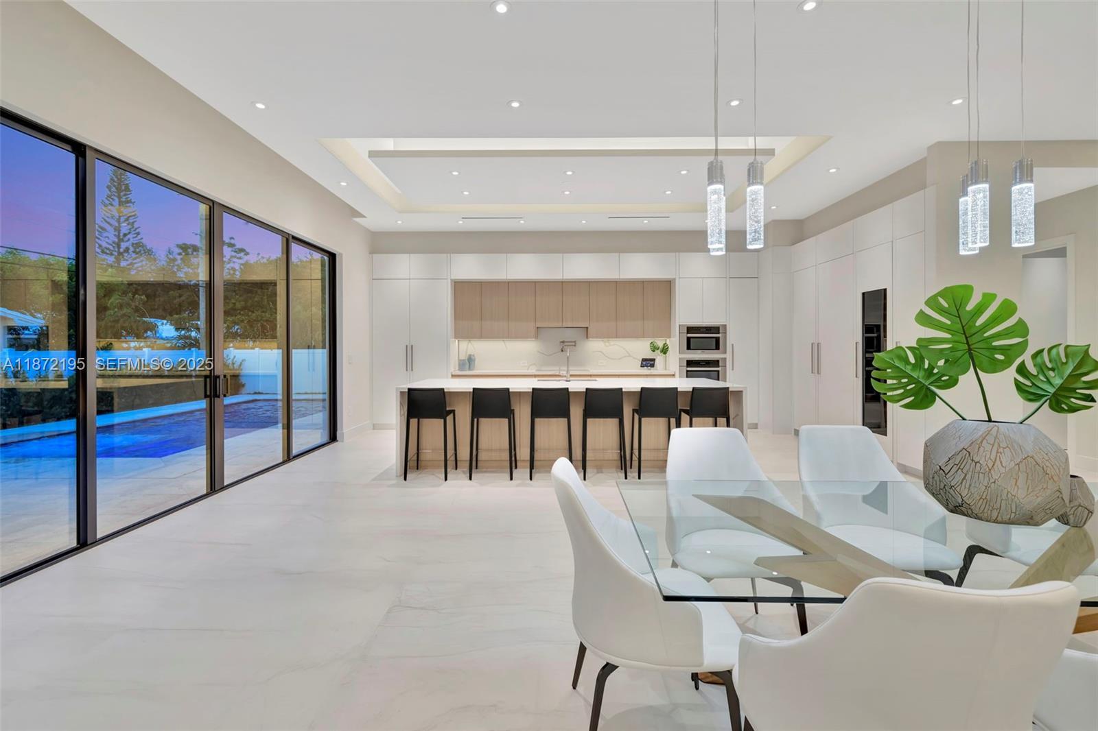 Discover a newly completed furnished custom estate in Coral Ridge Country Club Estates, masterfully designed for both elegance & ease of living. Soaring 12’ ceilings & walls of glass flood the home with natural light, while an 11’ Golden Belly quartz island anchors a chef’s kitchen with Miele Kitchen Suite appliances. Two 16’ sliding glass doors dissolve the boundary between indoors & outdoors, leading to a resort-style pool, jacuzzi, cabana bath & summer kitchen for al fresco dining. The spa-inspired primary suite features a wet room with soaking tub & shower, while three additional suites ensure privacy for guests. 3-car garage with lift potential & a total smart home system complete this rare opportunity to own a true modern masterpiece in one of Ft Lauderdale’s most prestigious neighborhoods.