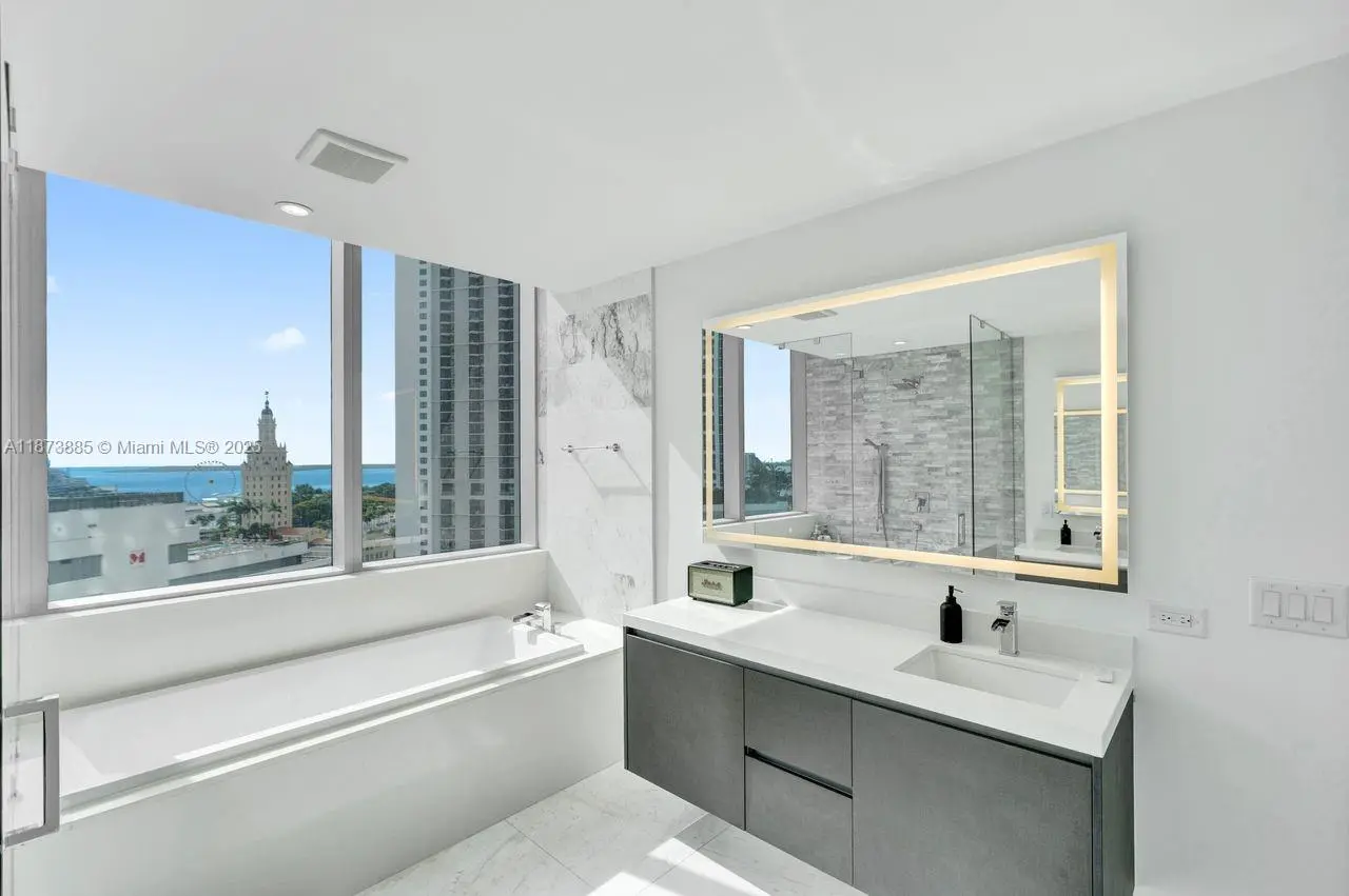 Welcome to the absolute best deal for a 3bed/4bath plus fully enclosed den corner unit with partial water views, private foyer and elevator at Paramount Miami World Center. Features include: electric blinds throughout the unit, 10 ft high ceilings, Italian kitchen w/Sub Zero & Bosch appliances, Marble kitchen backsplash, white porcelain tile floors, floor to ceiling windows, fully enclosed den into a 4th bedroom, recessed lighting, upgraded TV wall & light fixtures, large terrace space,, spacious master bedroom with water view, huge upgraded closets, spa like master bath with dual vanities with views of the water, spacious 2nd & third bedrooms with water views. Have access to resort like amenities including: 5 pools, gym, tennis, boxing as well as world class restaurants & shopping.