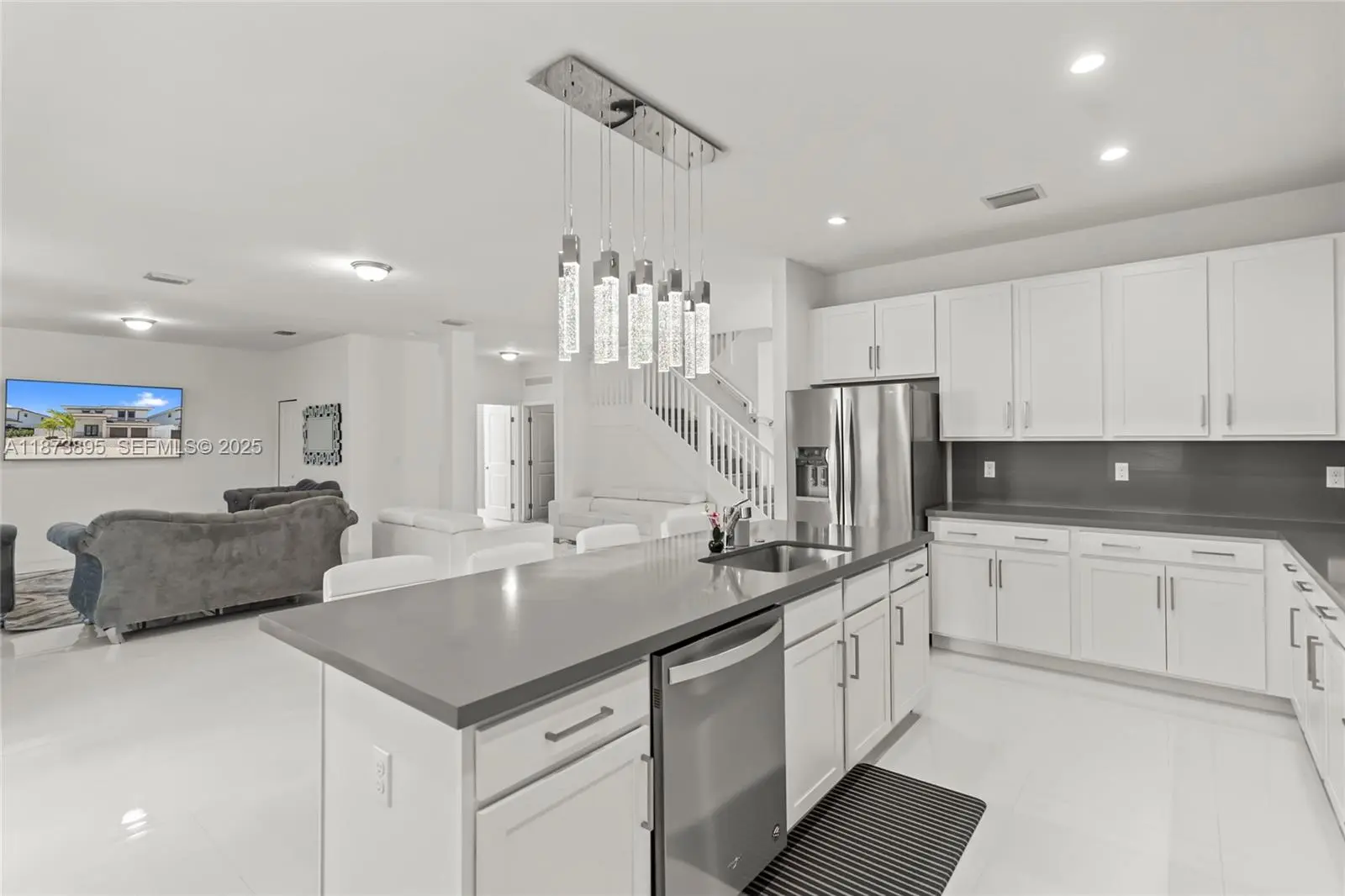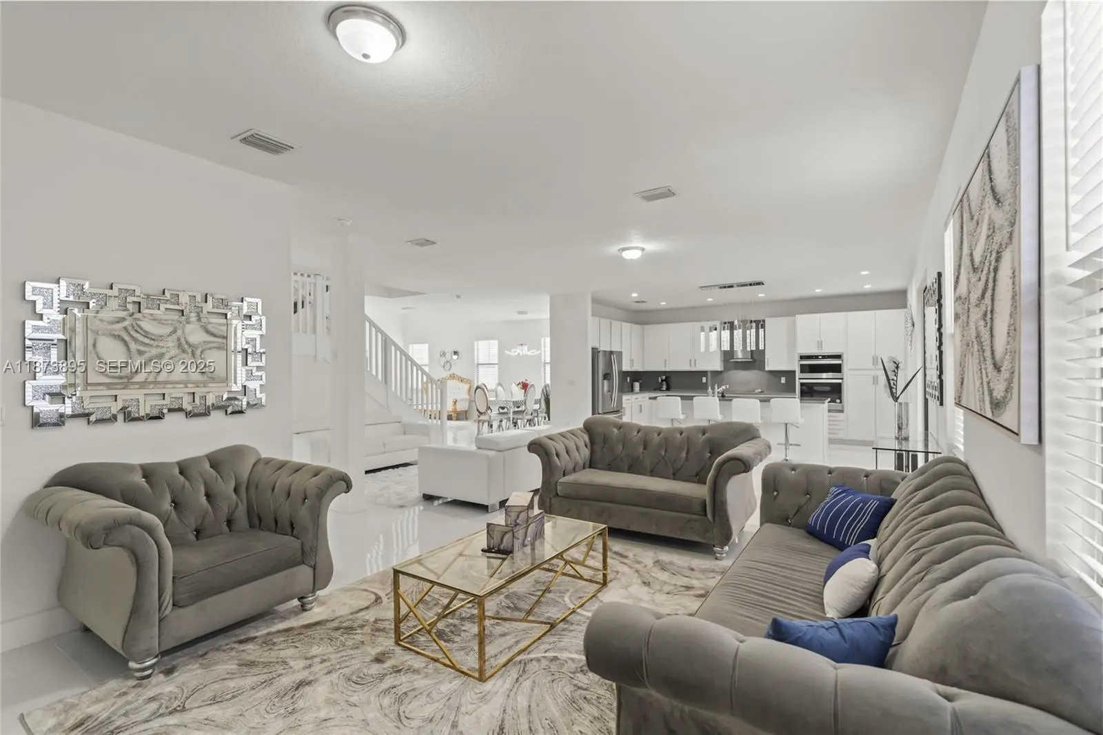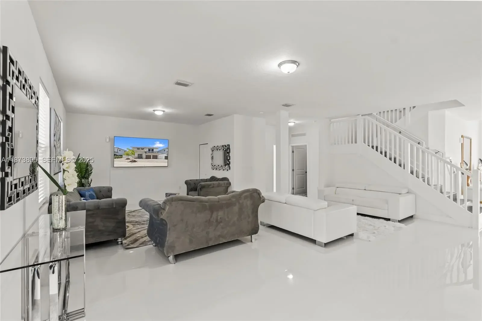 Recently built! Gorgeous home with a modern open floor plan boasting 3,499 sq ft of living area completely upgraded with beautiful porcelain floors throughout, impact doors and windows, stainless whirlpool top of the line appliances, kitchen island, quartz counter tops, plenty of windows for natural light and ambiance, as per owner there is room for L shaped pool, covered terrace area, and more! With 4 spacious bedrooms and its 4 beautiful bathrooms (5th room was downstair but was opened for added family room space, can be converted) This home is perfect for a family looking for the tranquility of an excellent neighborhood and access to everything! DO NOT miss this opportunity.