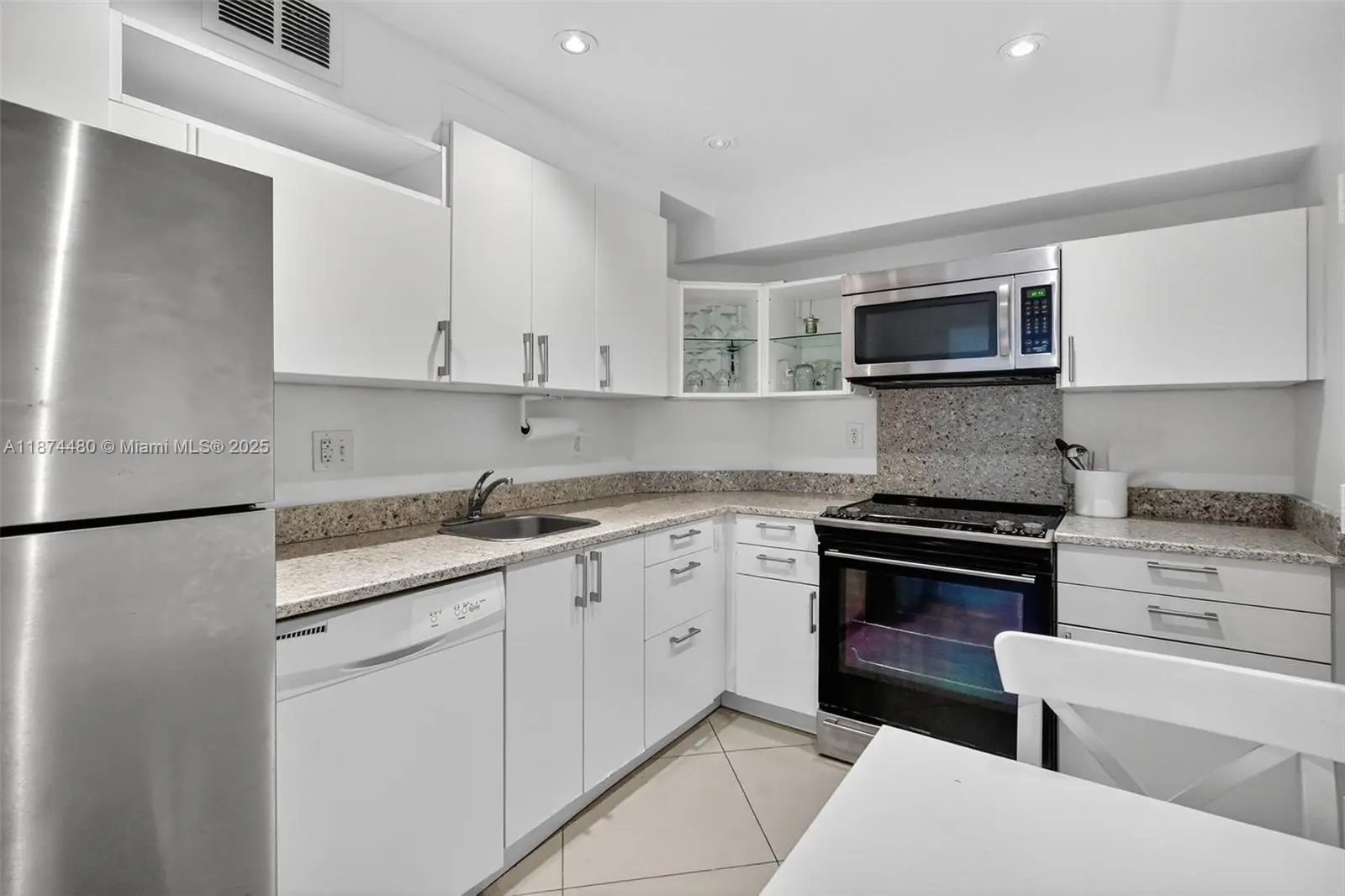 Beautifully remodeled condo located in prime location in Sunny Isles Beach, enjoy breathtaking canal and ocean views from your oversized balcony. This unit features 1 bed/2 full size baths, 18'x18' ceramic tile flooring throughout, 2023 AC; the kitchen has granite countertops, modern cabinets, ss appliances, new electrical panel, LED lighting, both bathrooms have been completely updated with permits, all new closet doors and plenty of storage space. Arlen house offers 5 Star Amenities including 24-hour security, doorman, valet service, new fitness center, resort-style pool, an on-site restaurant overlooking the bay, beauty salon and more. Just minutes from the beach and located in a top-rated school district. Ideal for year-round living or a vacation retreat in Sunny Isles Beach.