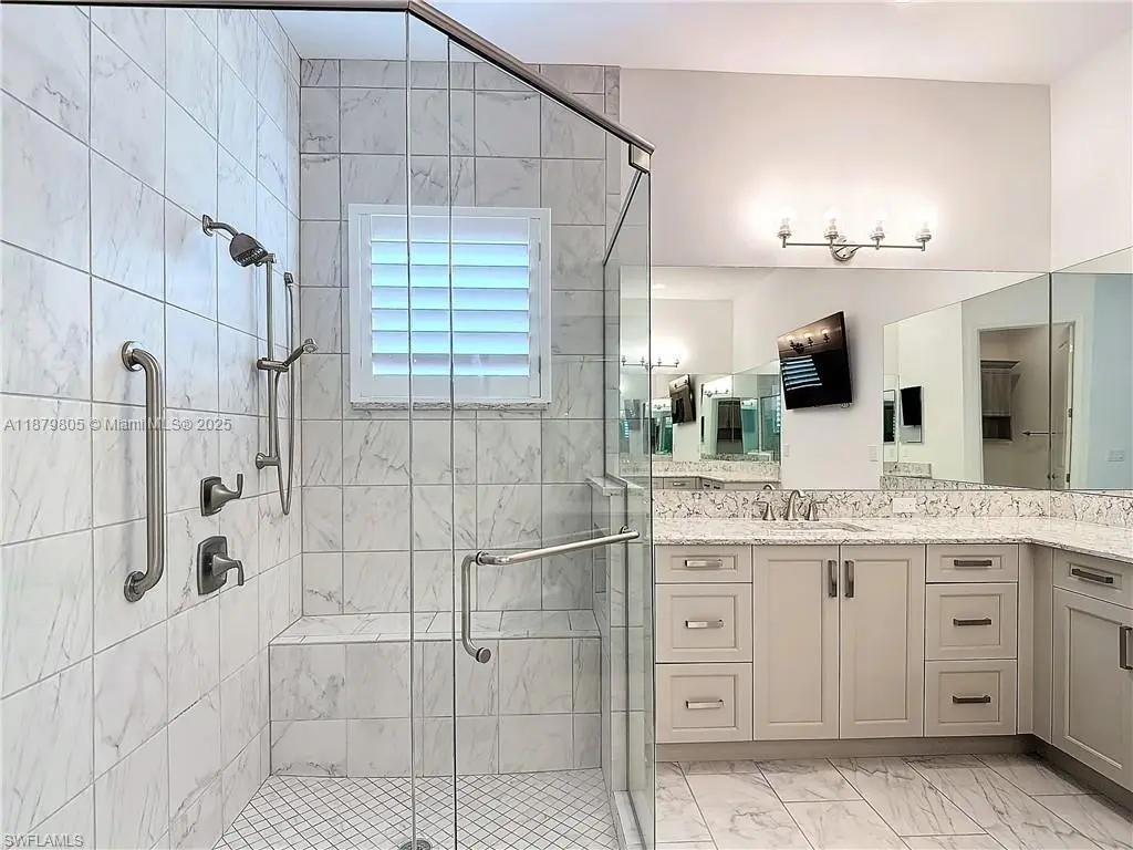 This Charleston Grande has 3354 SF under air and a total of 5785 SF. 3 Bedrooms, A Club/Den Room and 4 FULL BATHS! The Saltwater pool is one of the largest pools in the community. Attached is a long list of extras. Some upgrades are a full outdoor Kitchen, Luxury Tile, 24K Whole house Generator system, Tankless HW, Custom Closets, Storage room with a 20amp circuit, UV Air Sanitizer and Purifier on high efficiency AC units, Culligan whole home water treatment system, Plantation Shutters and MORE!! Enjoy the active 55 and older adult lifestyle in Valencia Bonita. Restaurant, spa, Fitness, several pools and more! A short drive to all kinds of shopping and minutes to Naples and the beaches! Make your appointment now to see this one-of-a-kind property!